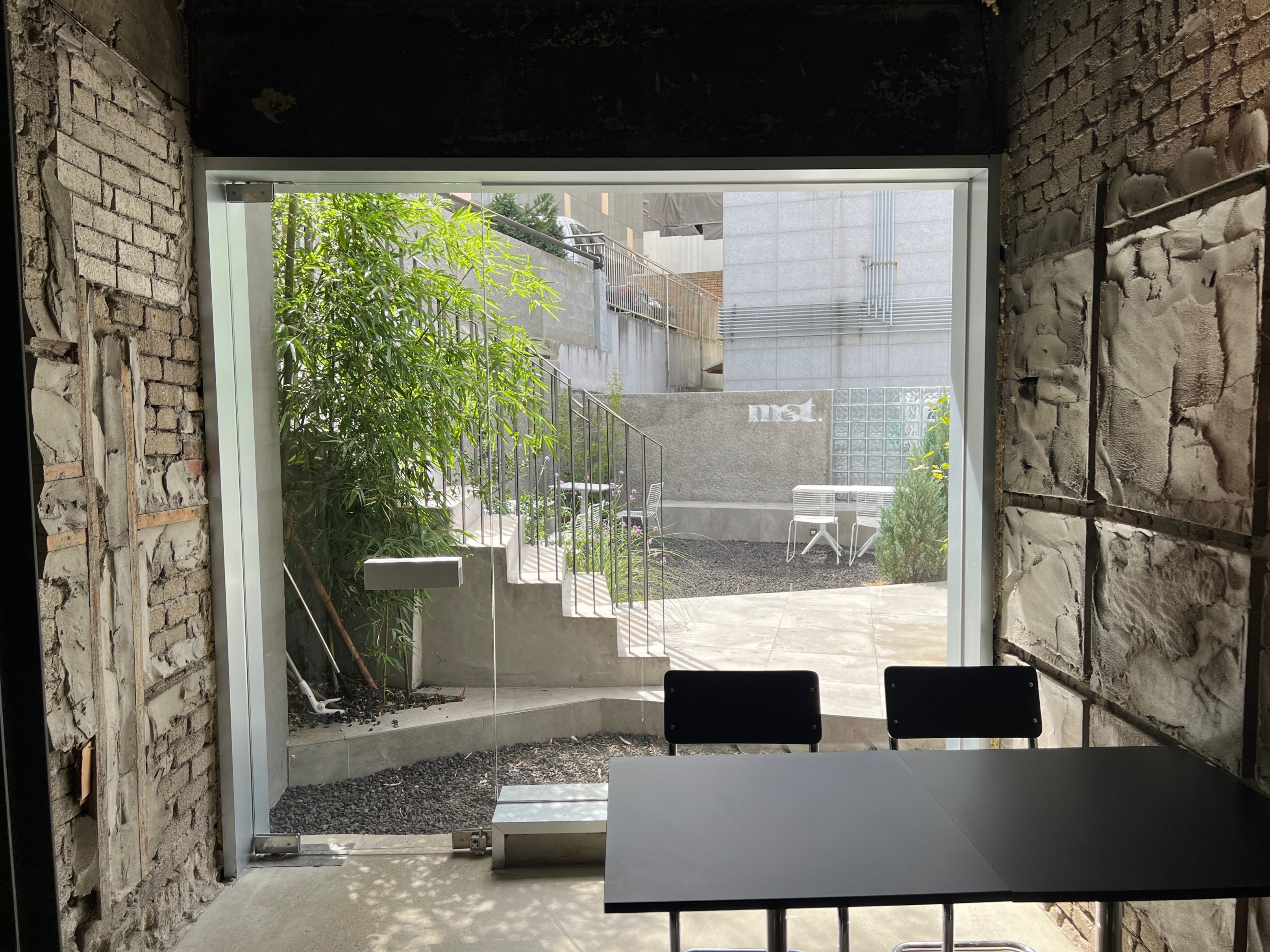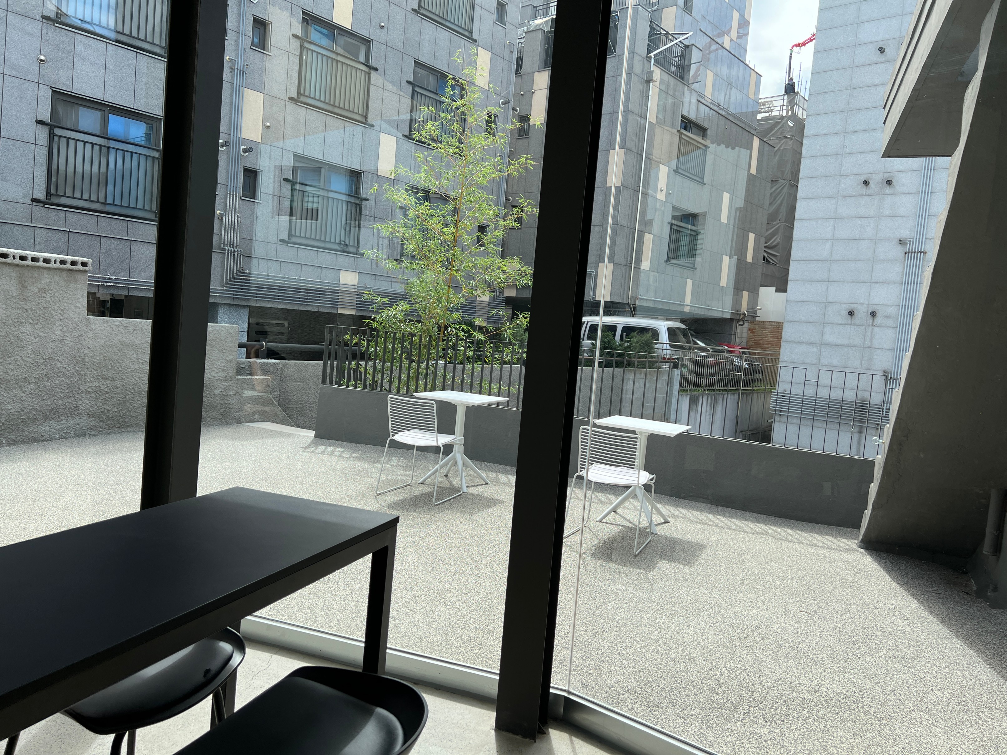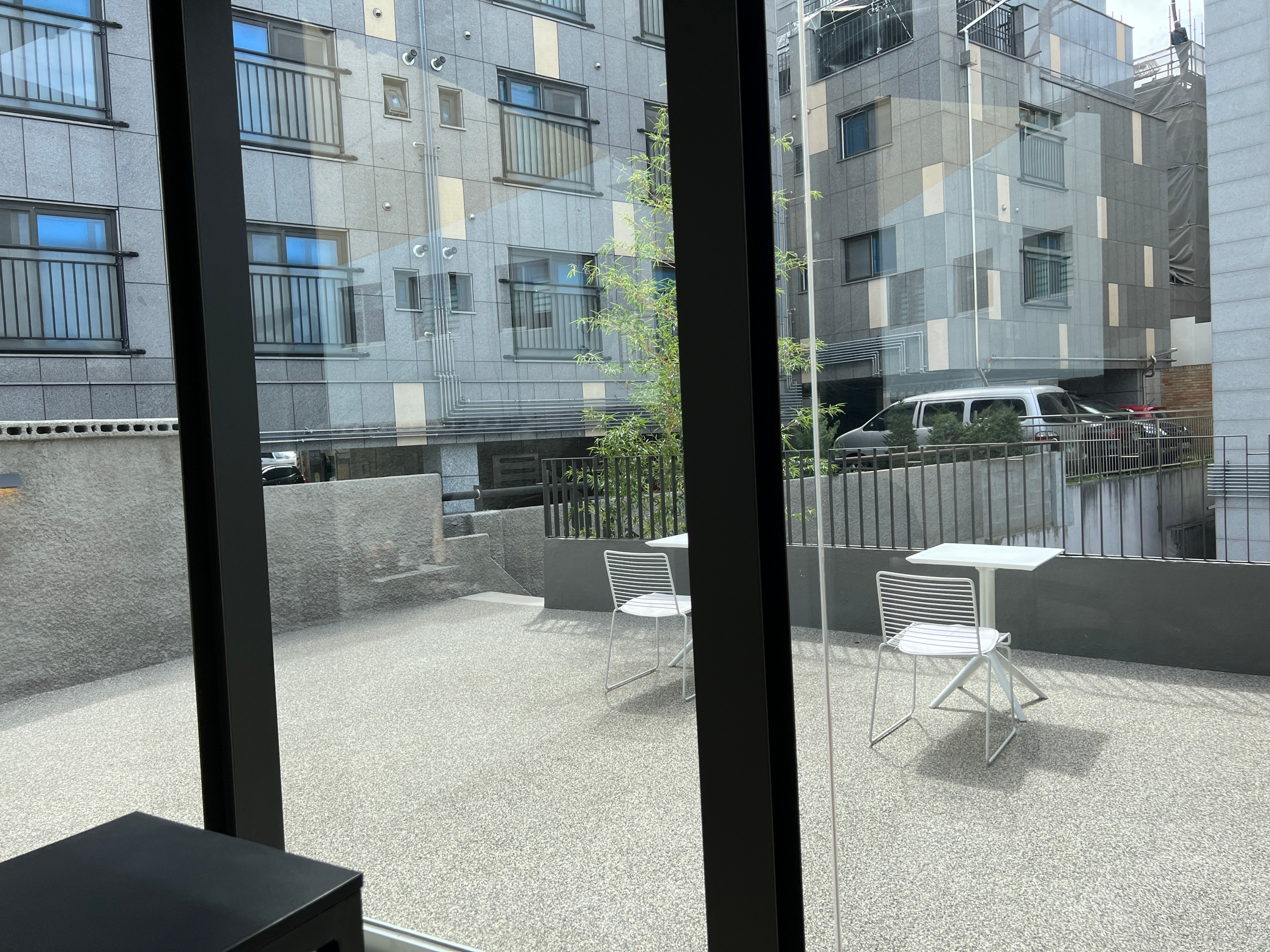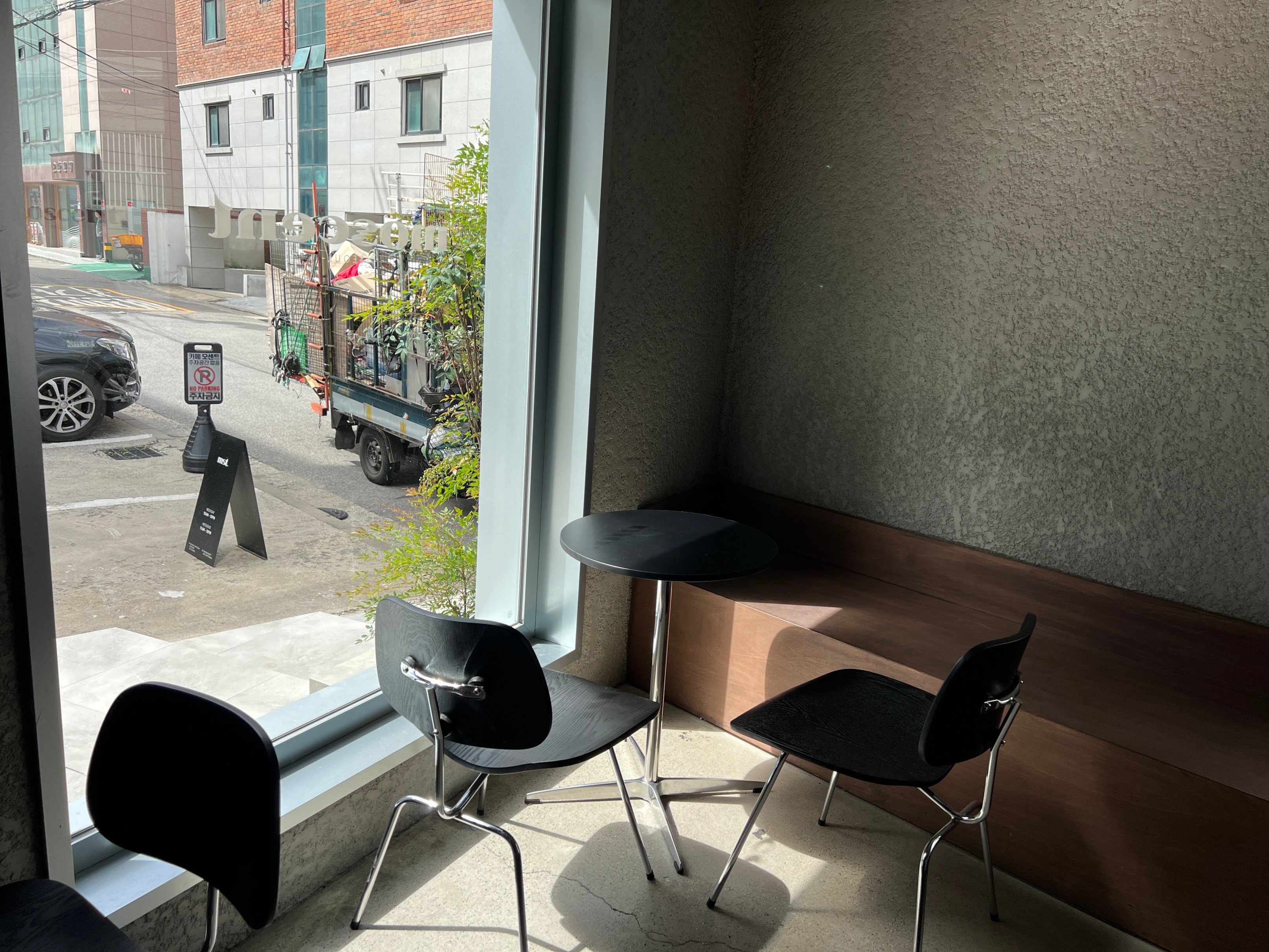바깥에는 이렇게 테라스 자리도 있기는 한데, 이날 날이 워낙에 덥기도 했고 굳이 바깥에 있는 것보다는 안에서 바깥을 바라보는 뷰가 더 이쁜 것 같아서 그냥 실내에 자리를 잡았다.