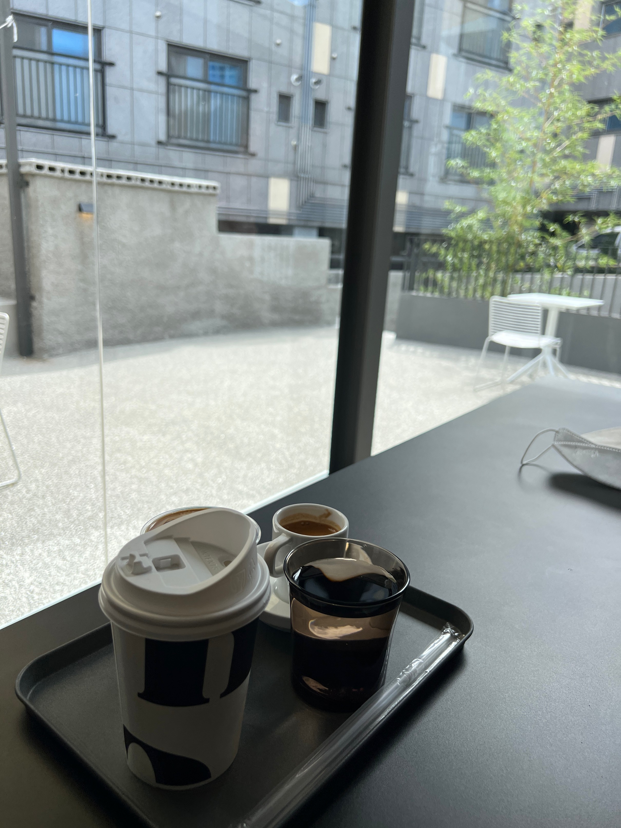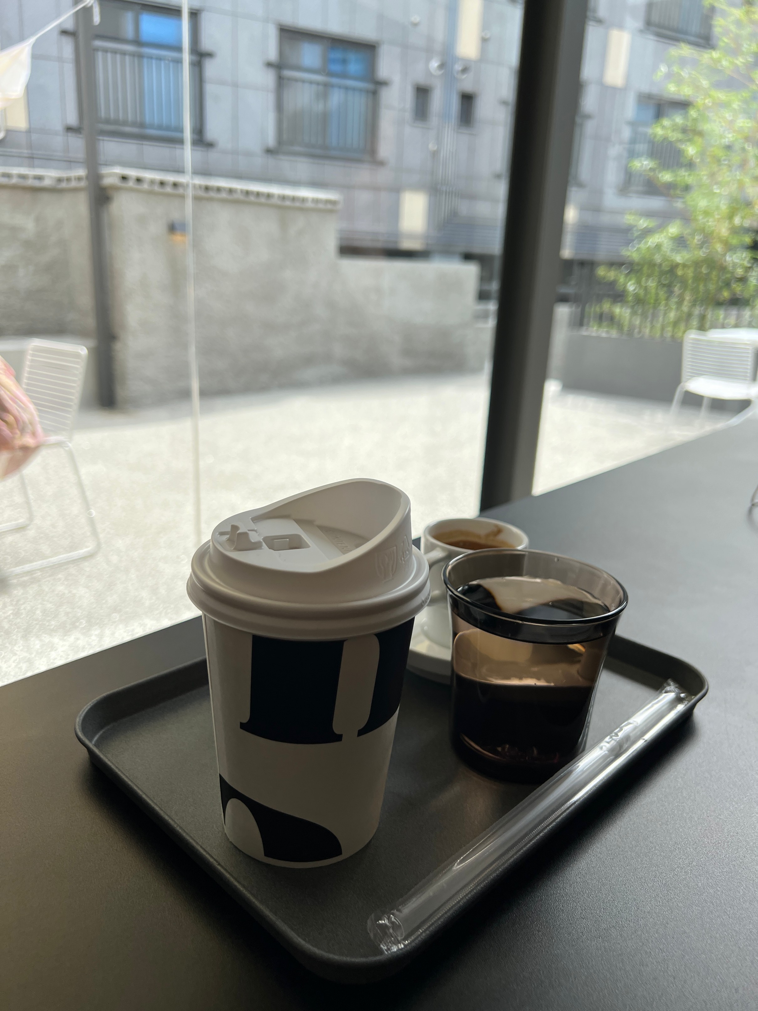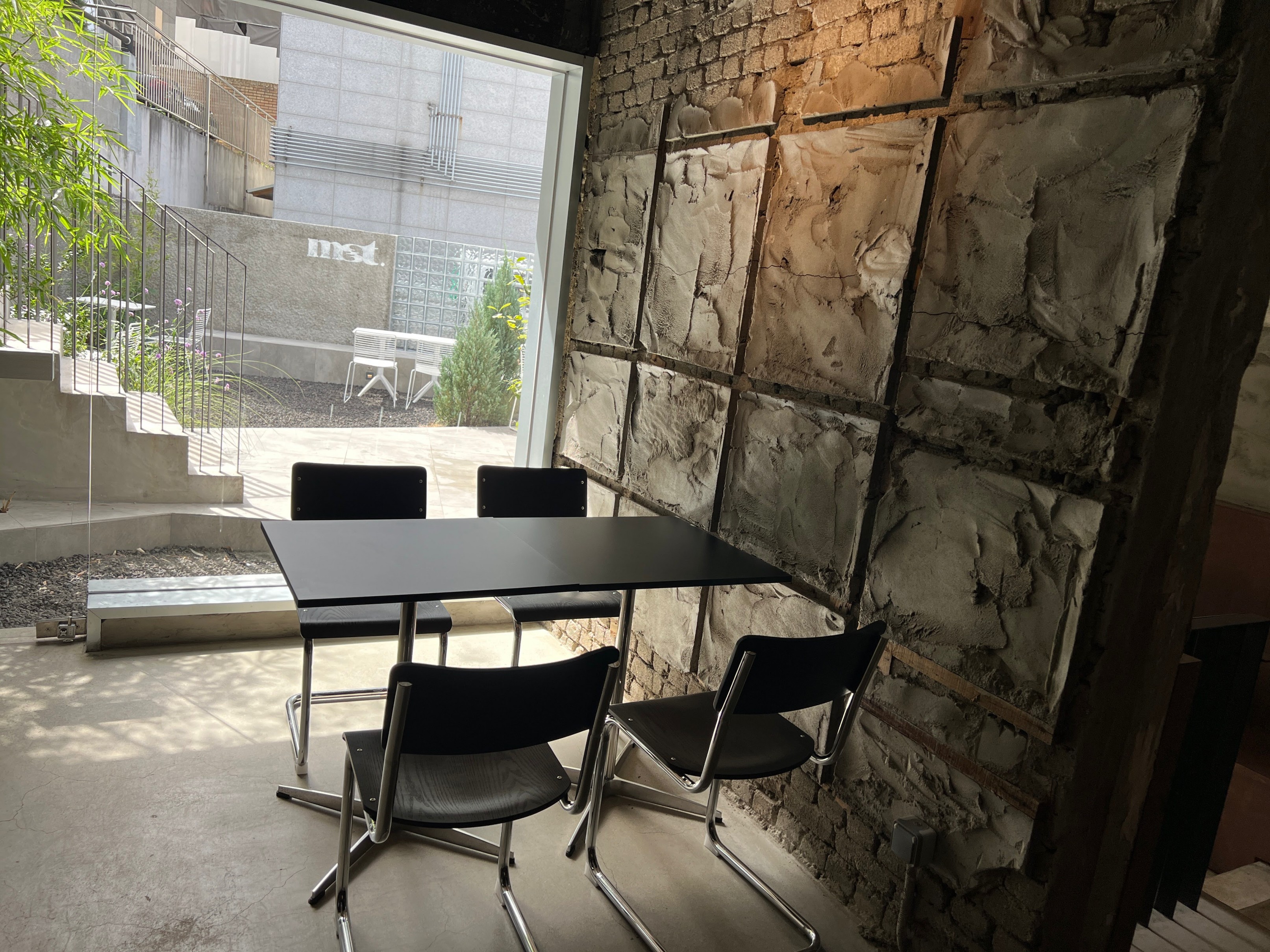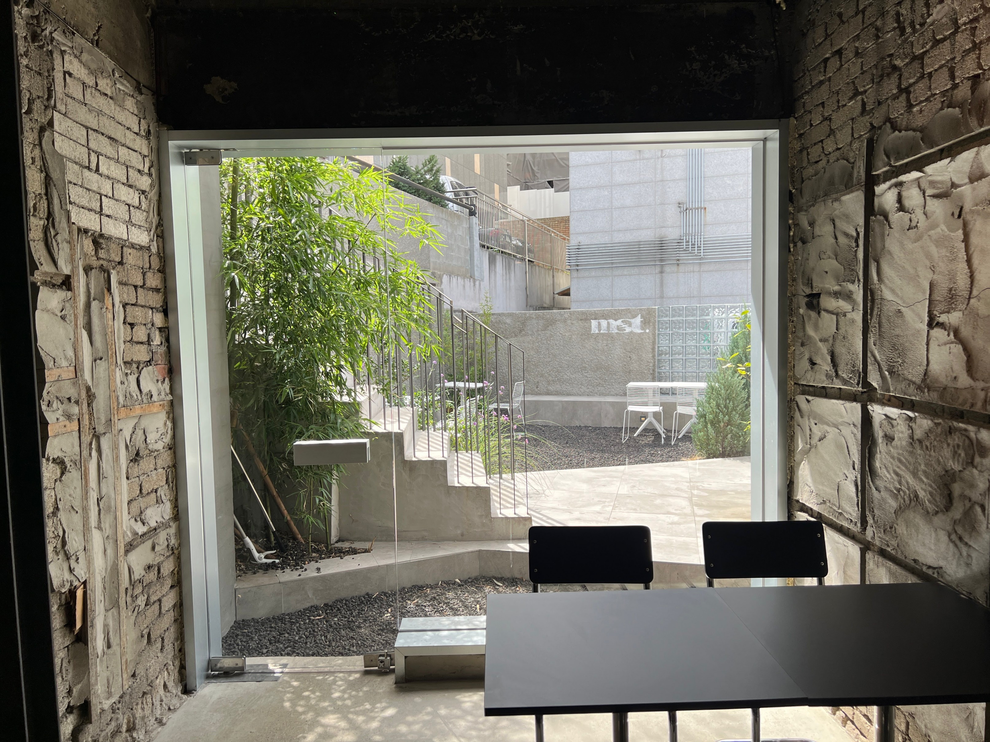 바깥에는 이렇게 테라스 자리도 있기는 한데, 이날 날이 워낙에 덥기도 했고 굳이 바깥에 있는 것보다는 안에서 바깥을 바라보는 뷰가 더 이쁜 것 같아서 그냥 실내에 자리를 잡았다.