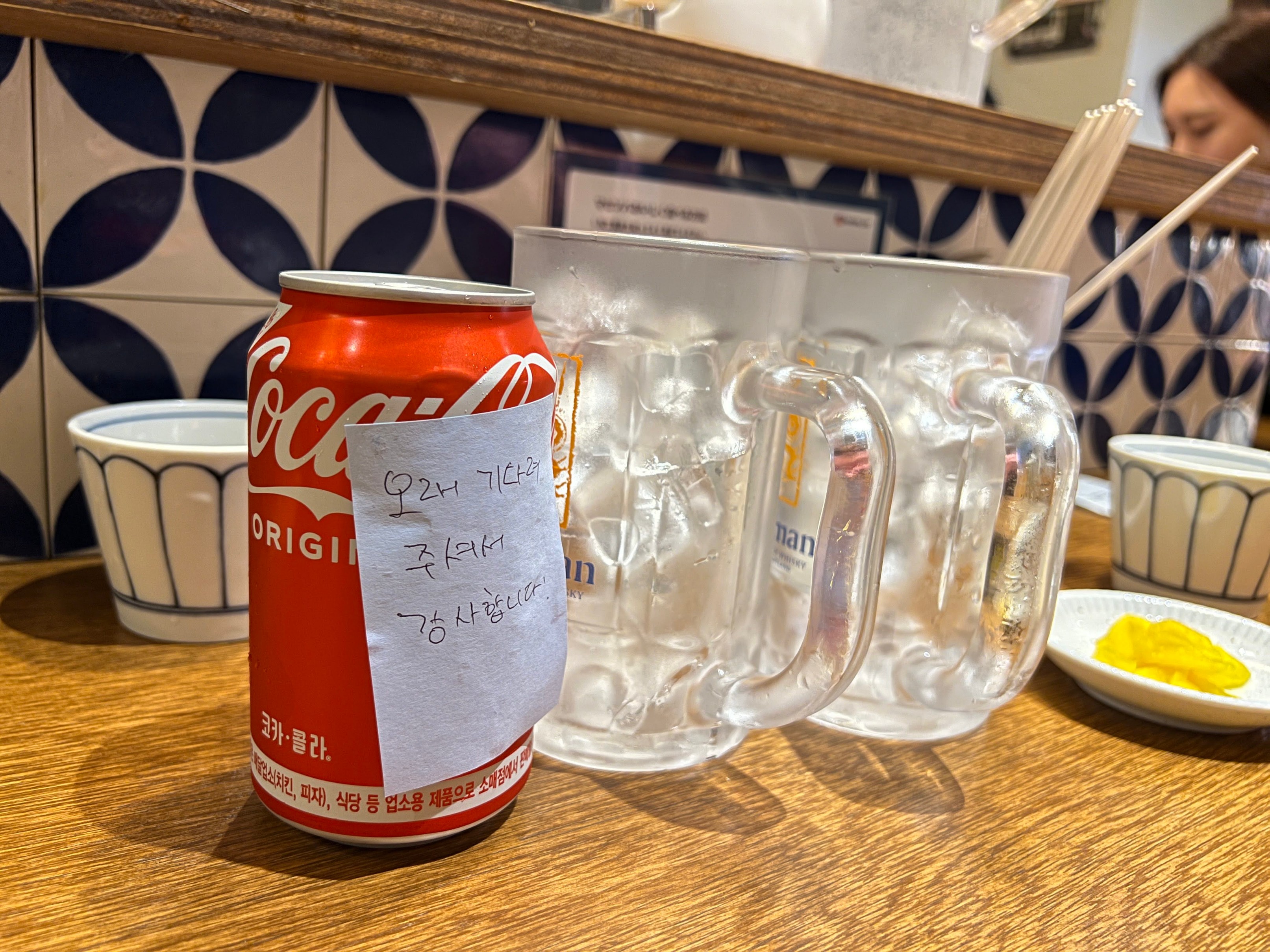 그래도 30분 이상 오래 기다렸다며 음료수를 공짜로 주셨다.