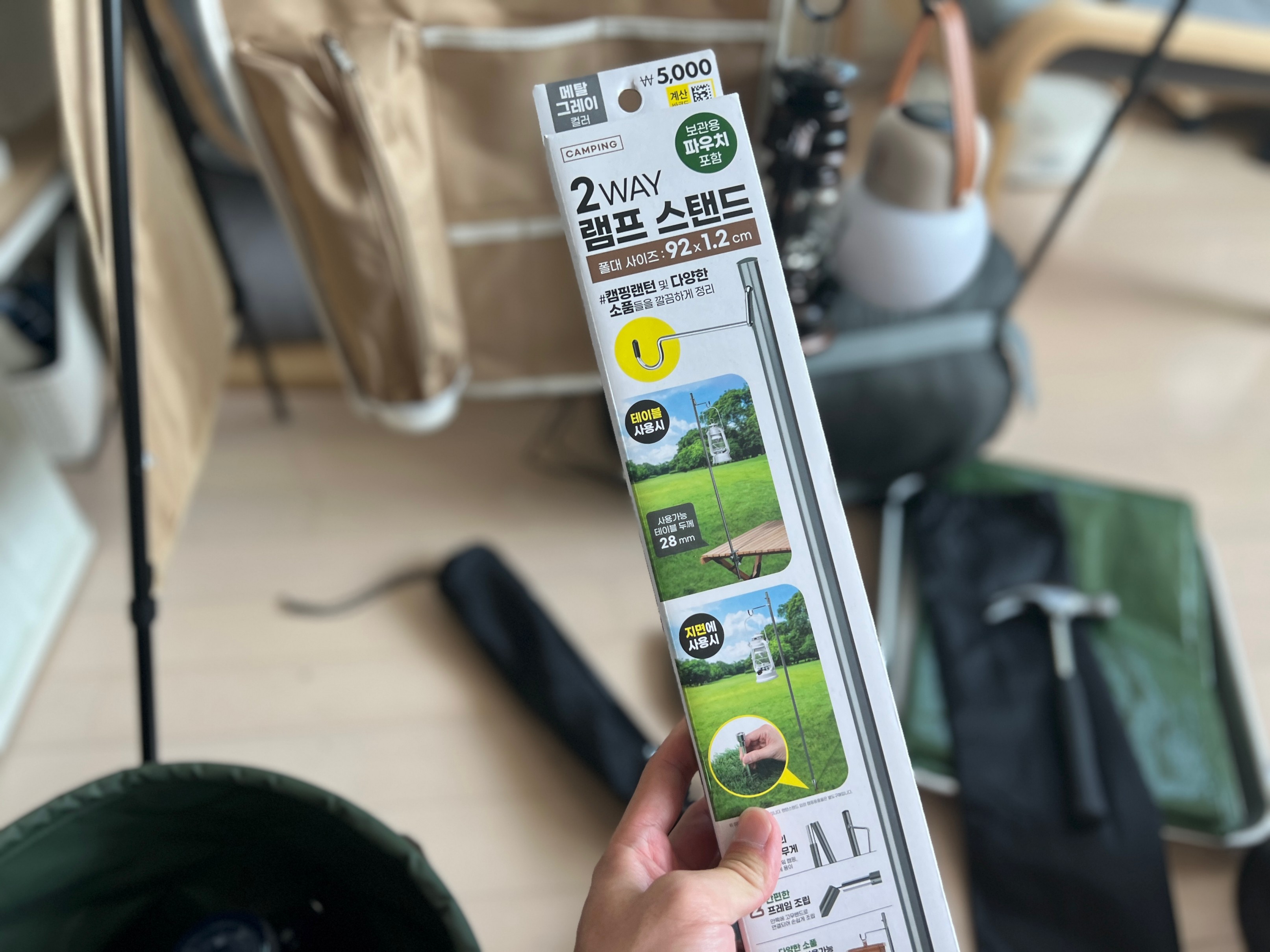 그리고 제가 이번 다이소 캠핑 용품 중에 가장 마음에 드는 건 바로 이 램프 스탠드입니다