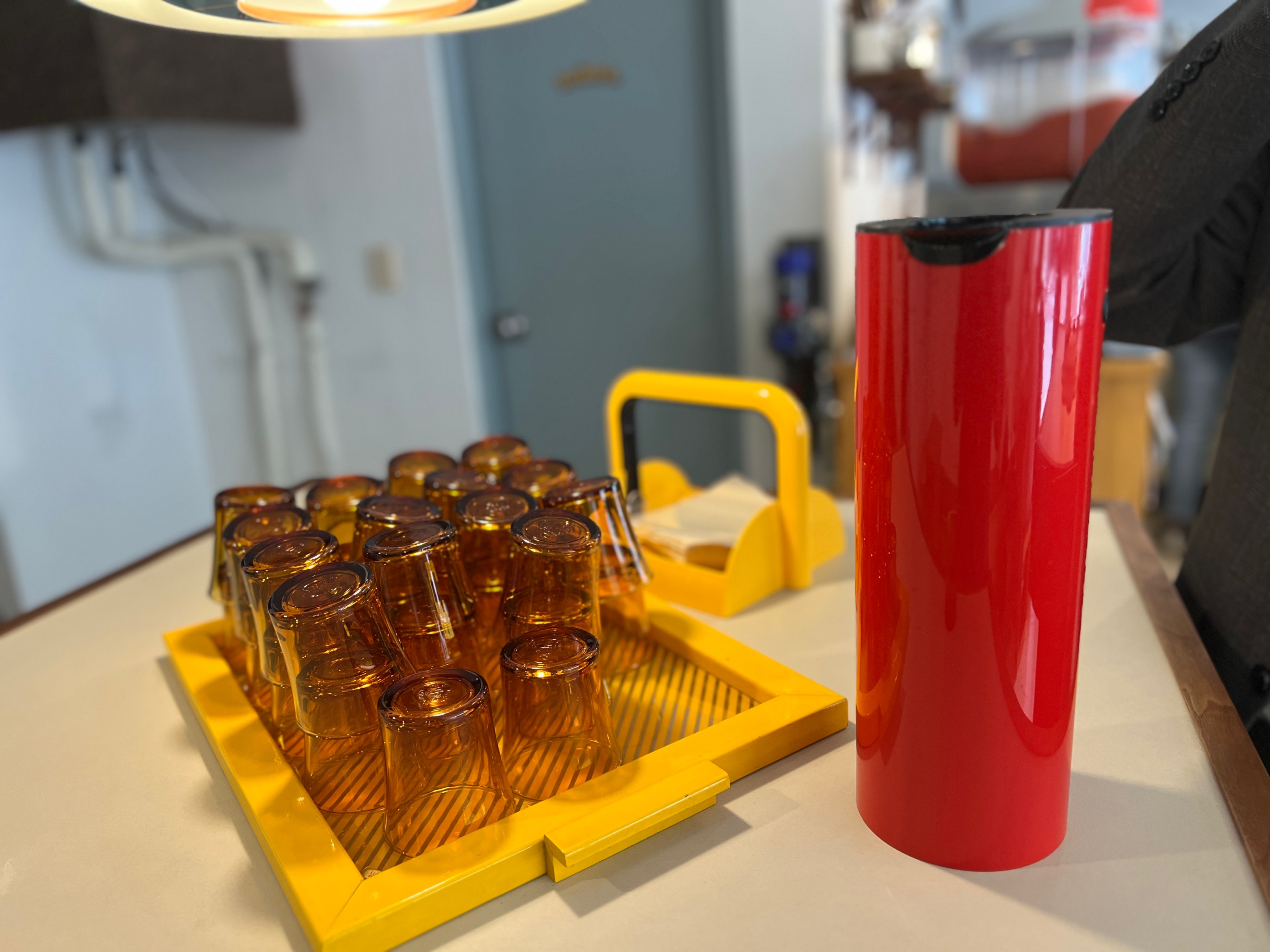 가운데 저렇게 물컵이 있는데 물컵에서 자유롭게 물을 따라 마시면 된다
