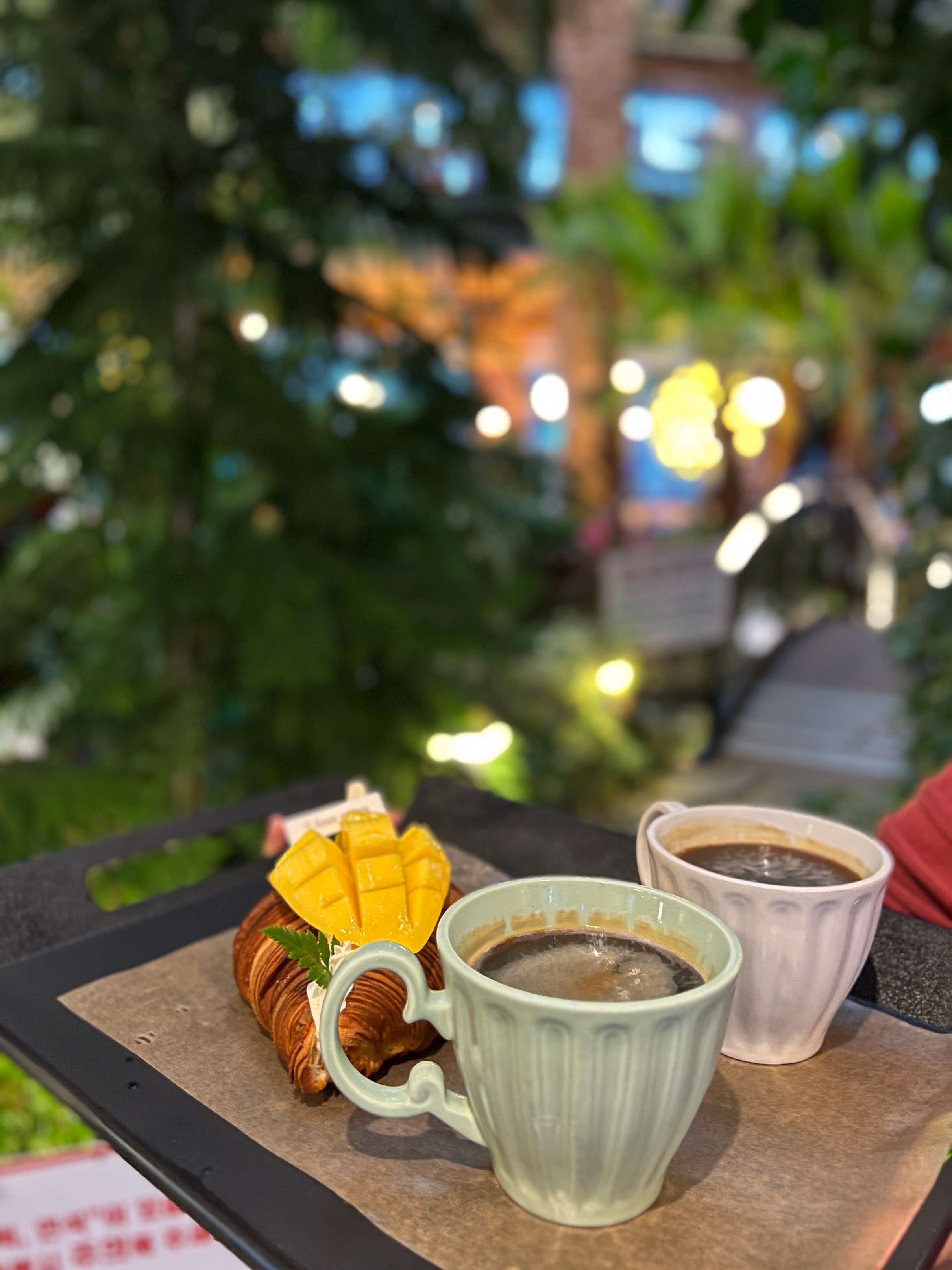 크로와상 위에 이렇게 망고가 올라가 있는데 이게 맛있어 보여서 하나 시켰습니다