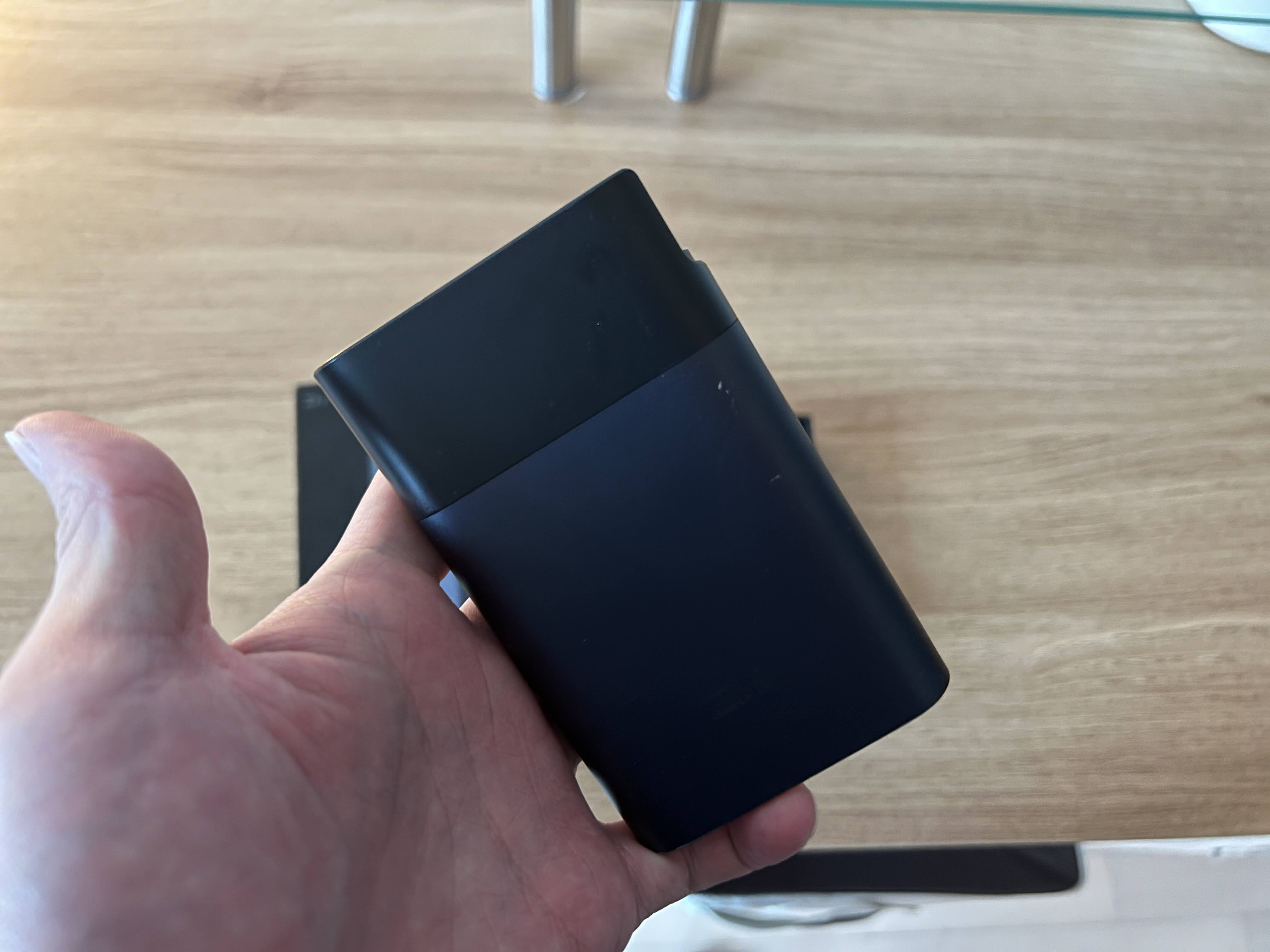 이런 식으로 바로 옆에 자그마한 케이블이 내장이 되어 있는데 저 내장된 케이블로 이 라우터를 충전할 수도 있고 라우터를 통해 전자기기를 충전할 수도 있다.