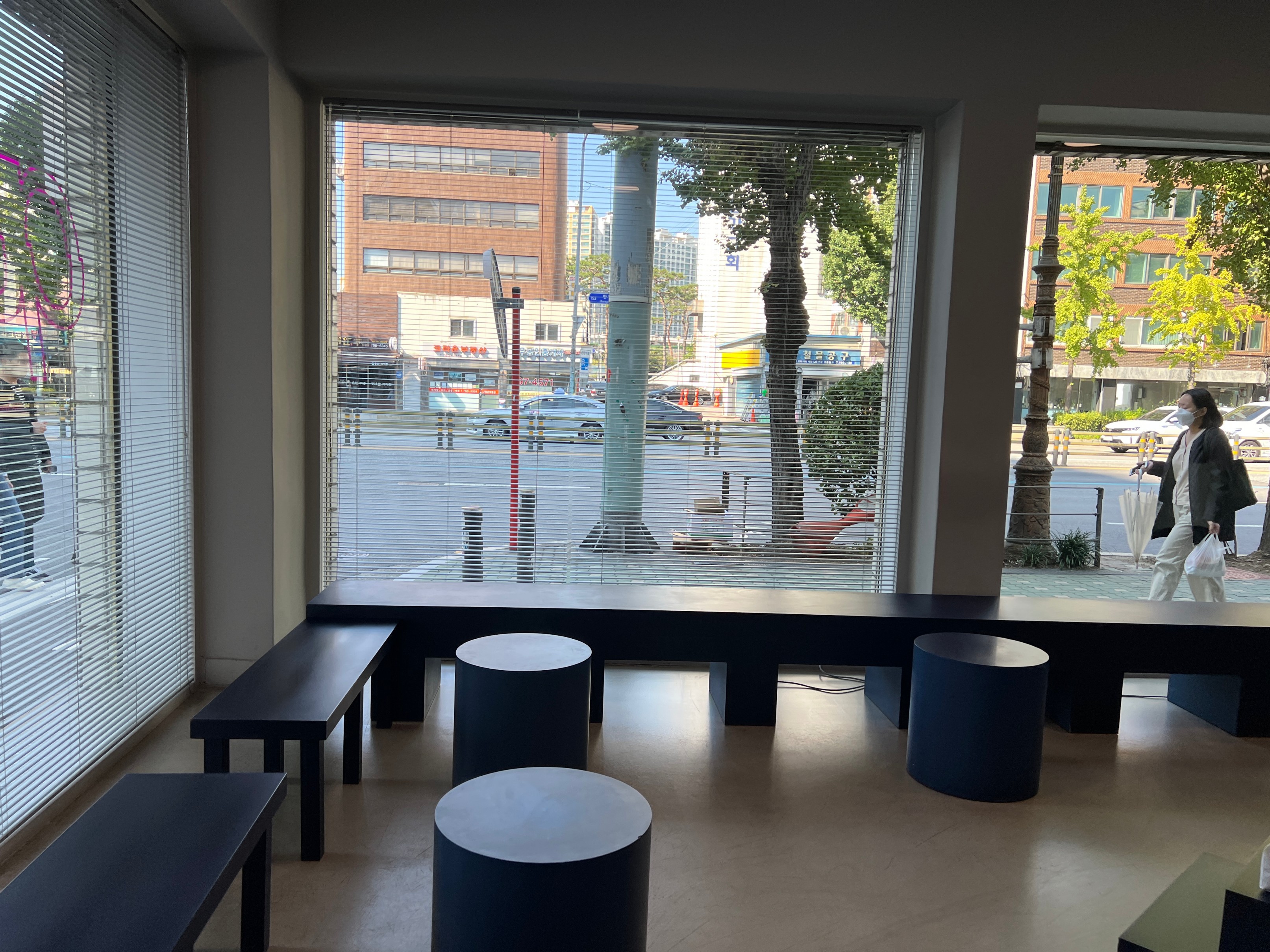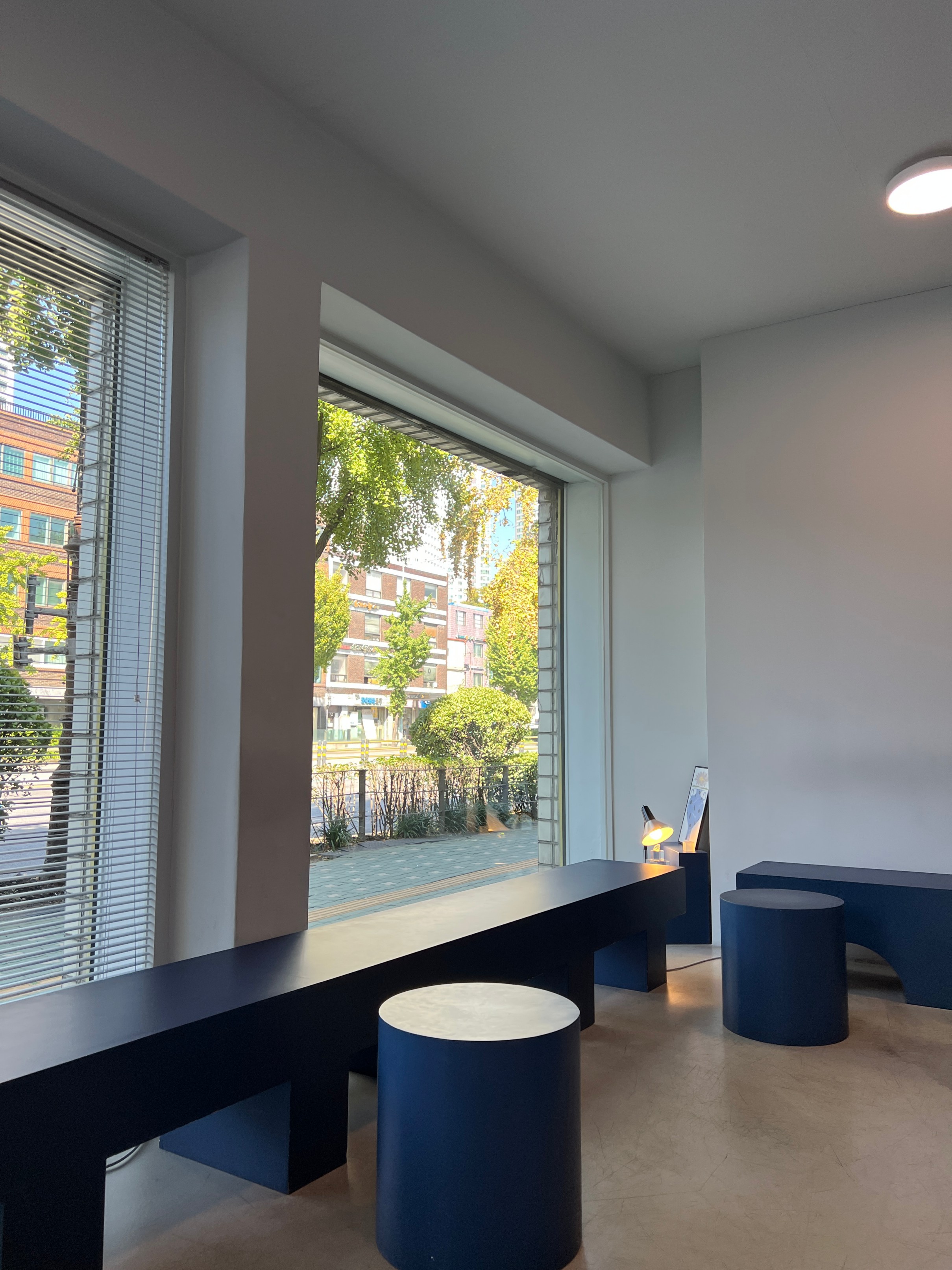 가게 가운데에는 이런 식으로 파란색 심플한 조형물과 함께 카페에서 판매하는 원두가 전시되어 있다.