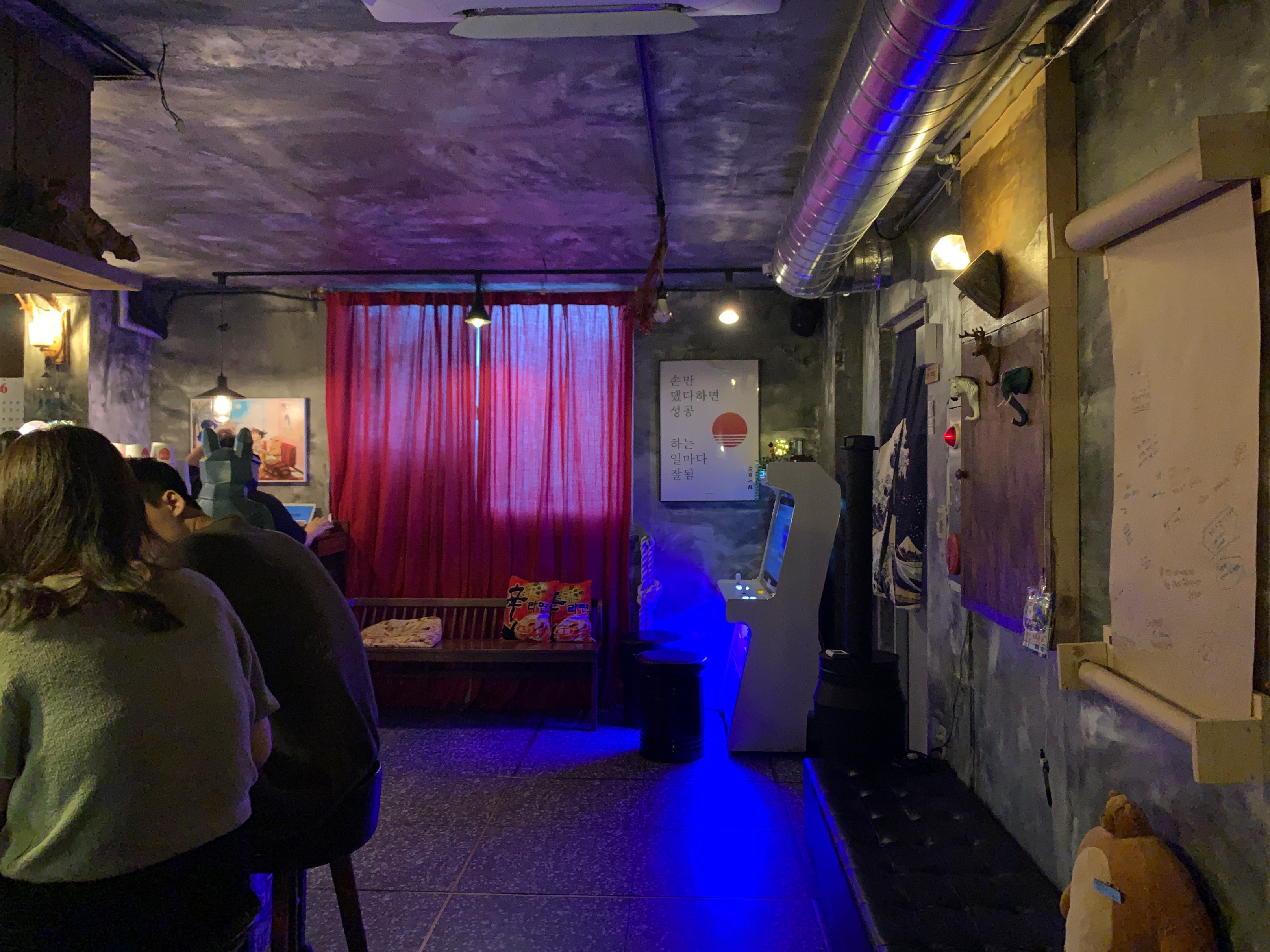 이런 식으로 기다리면서 할 수 있는 오락기도 있고, 혼자 왔을 때에는 저렇게 다찌 자리에 앉아서 먹을 수 있다.