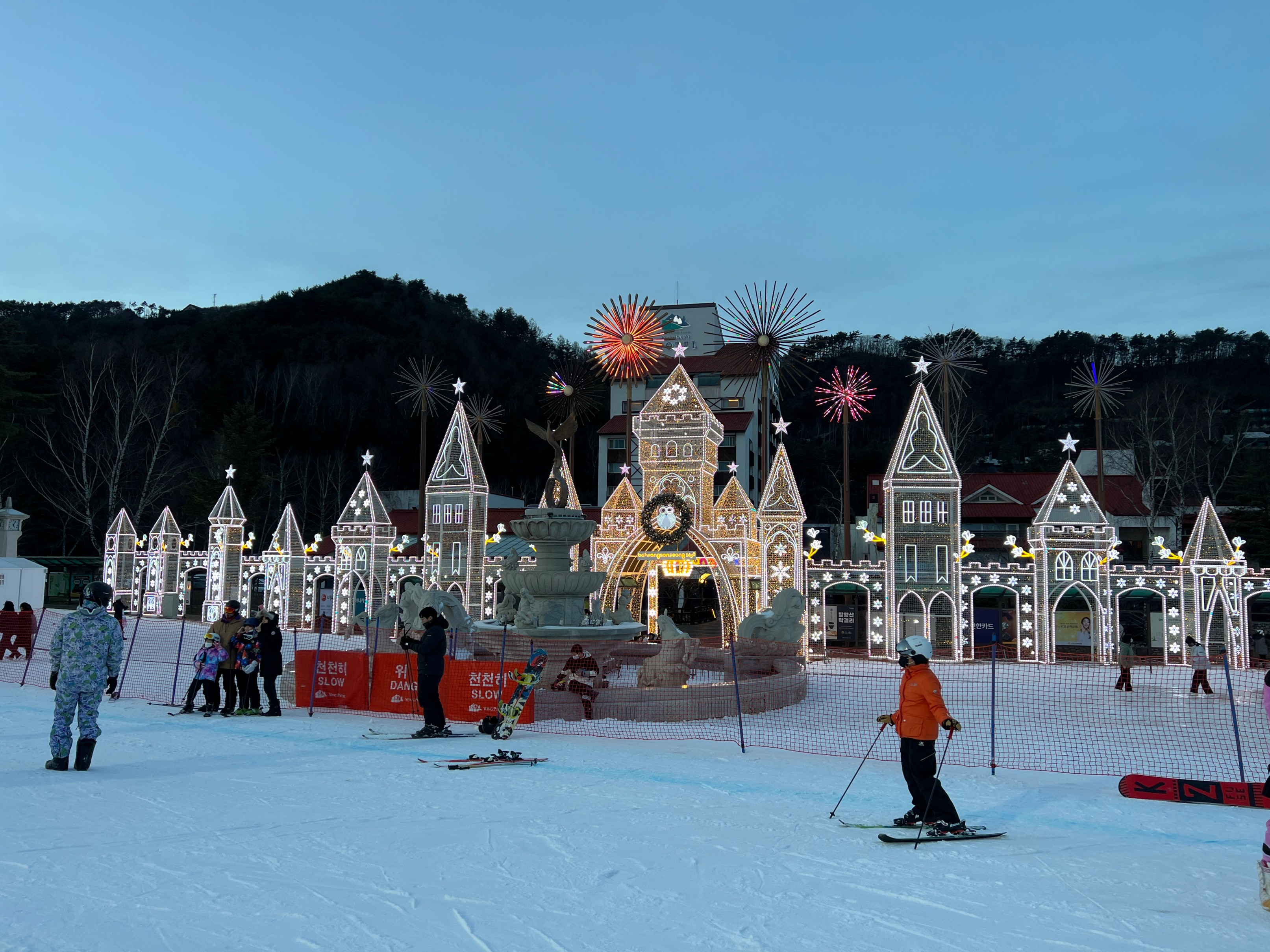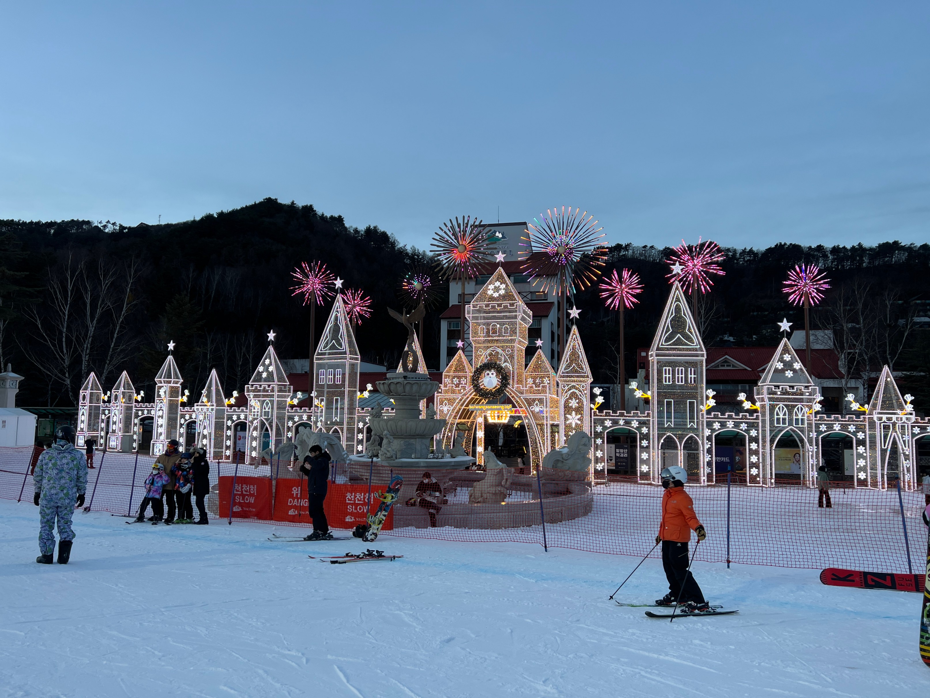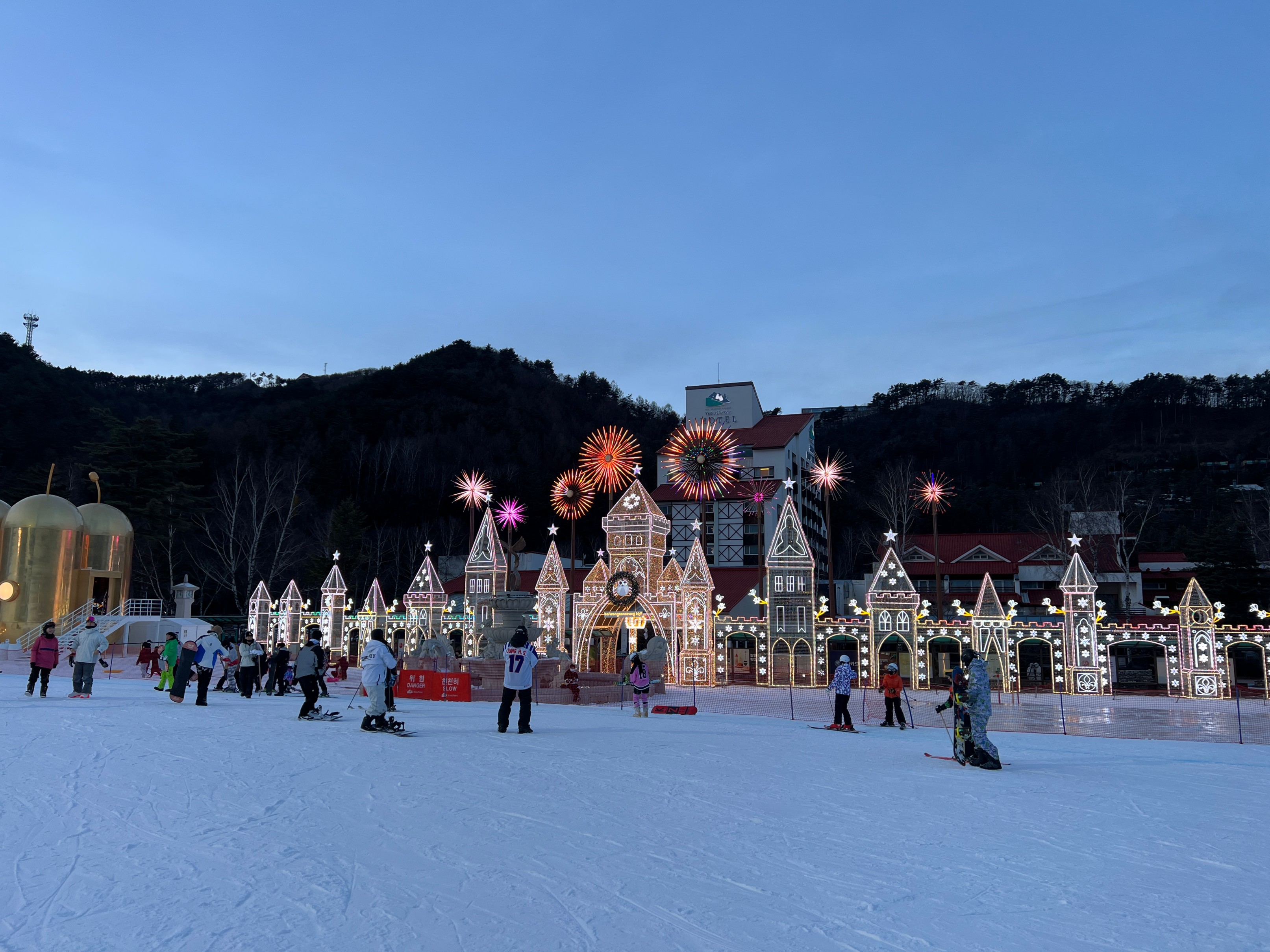 용평리조트의 특징 중에 하나가 저녁에 불 켜지는 저 조명인데