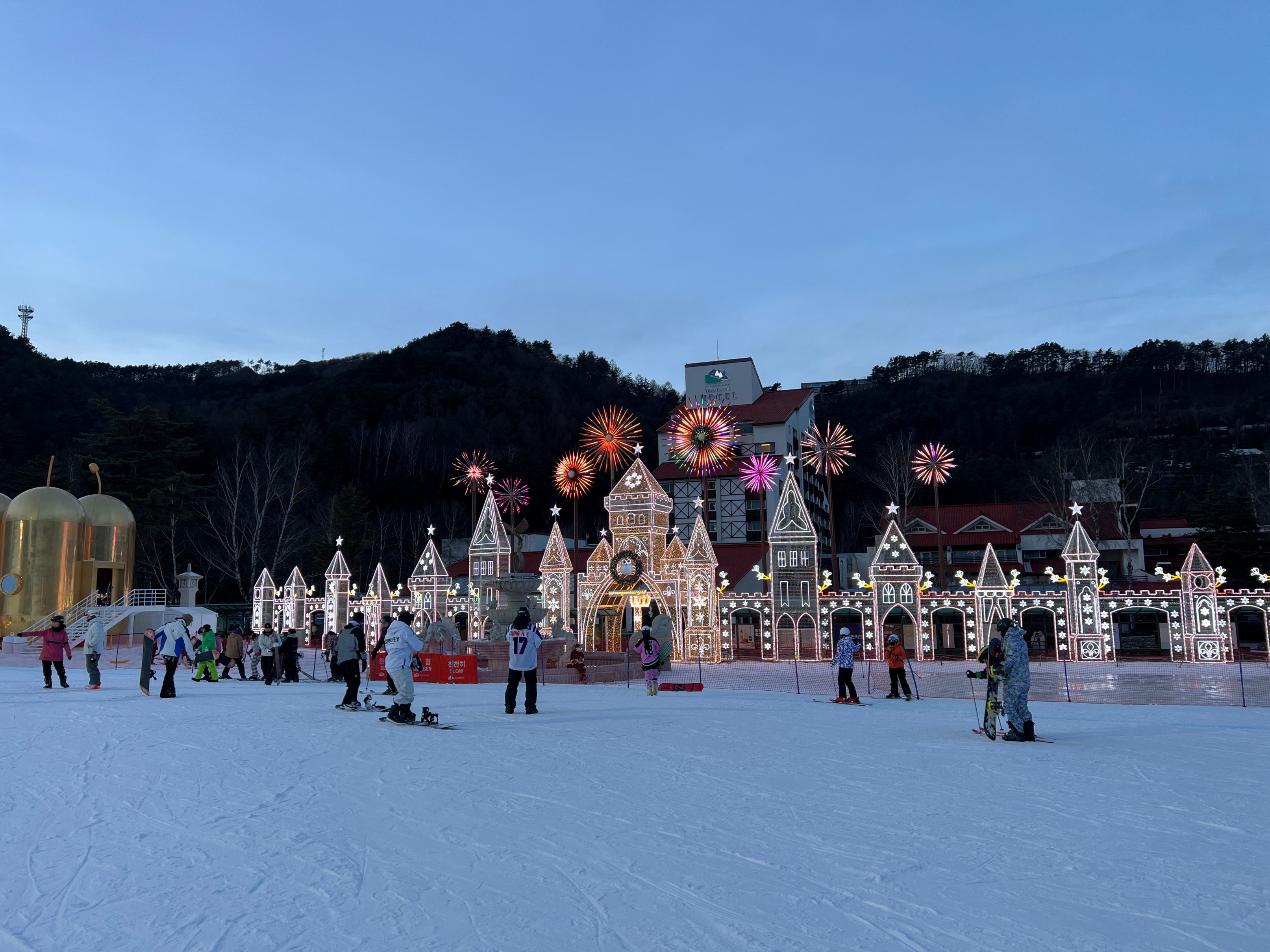 용평리조트의 특징 중에 하나가 저녁에 불 켜지는 저 조명인데