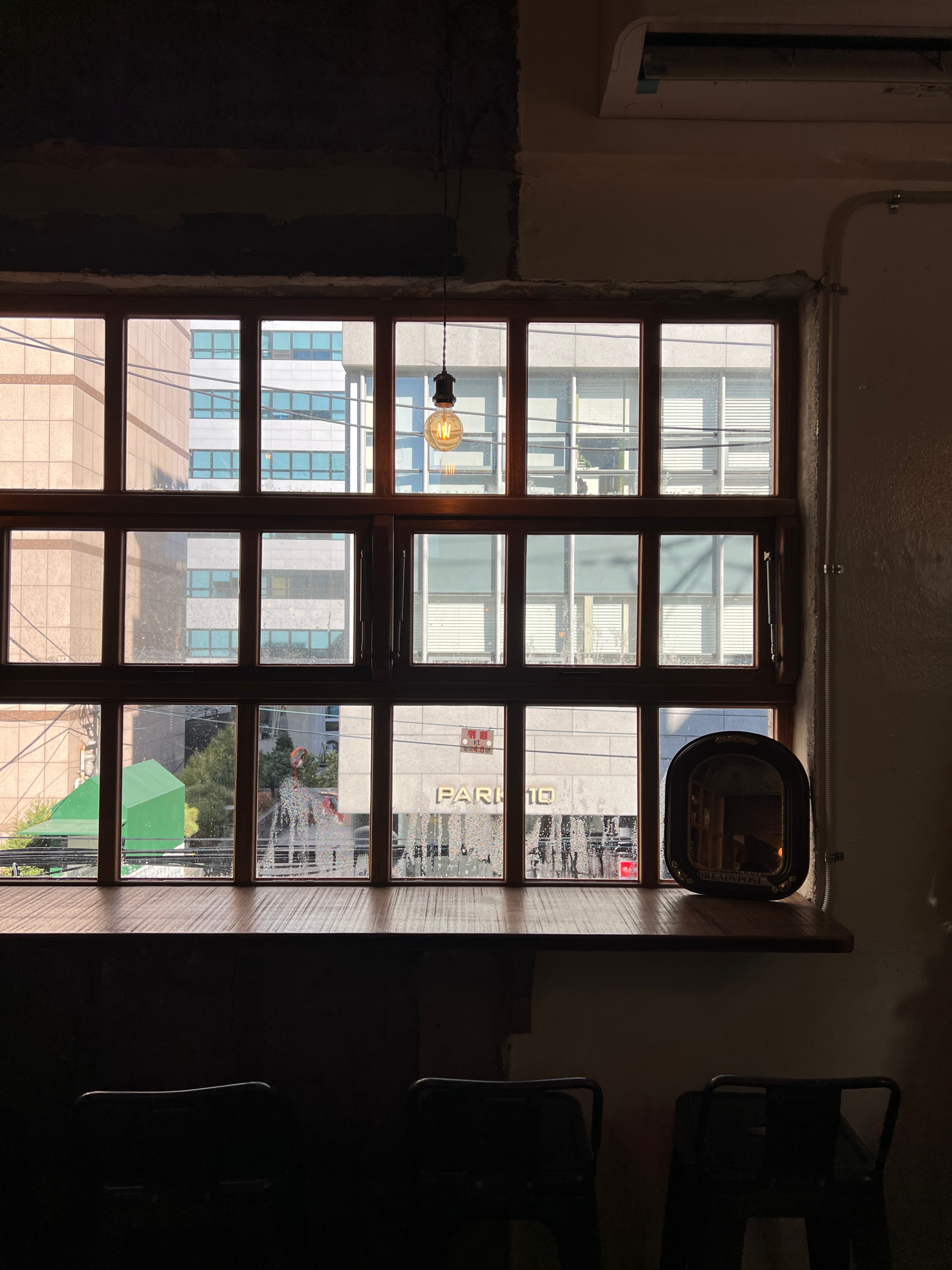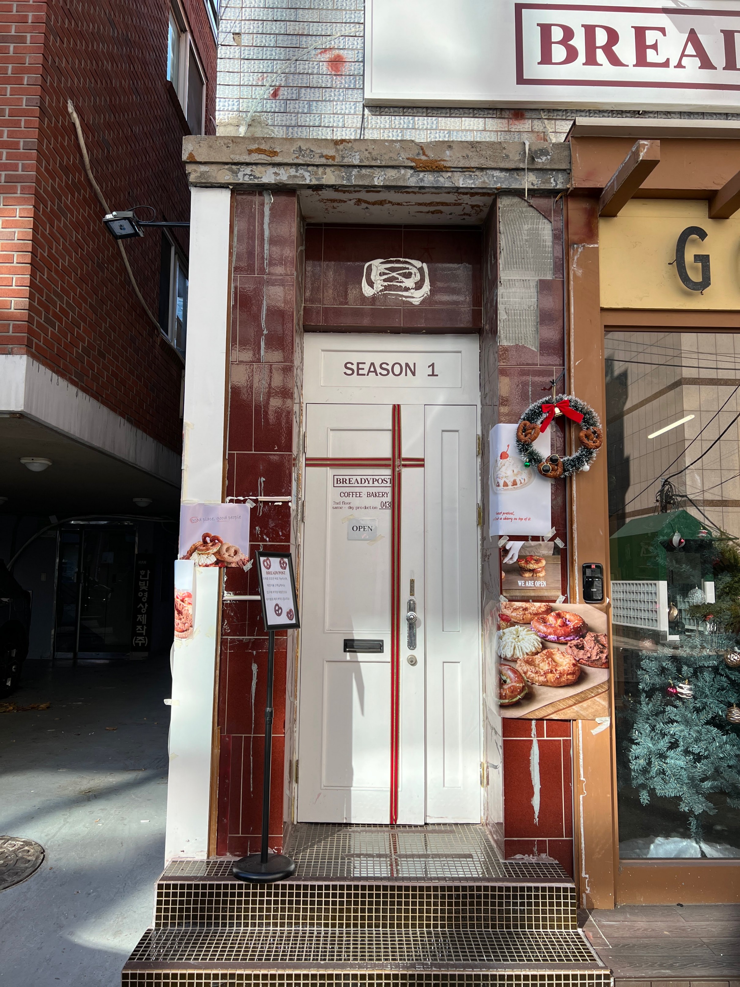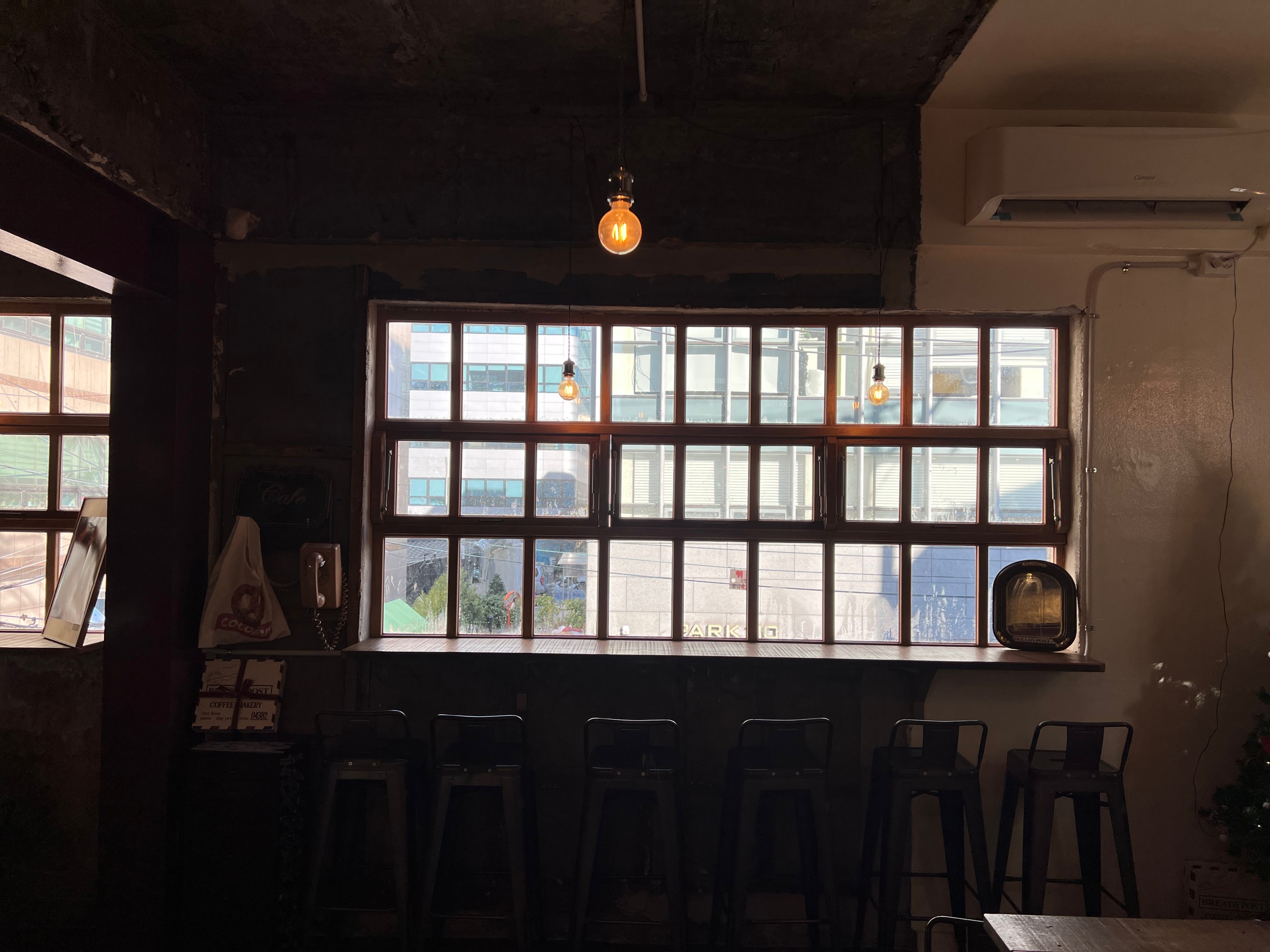 밖에 문은 이런 식으로 생겼는데 '포스트'라는 이름에 맞게 약간 유럽에 있는 우체국 같은 감성으로 만든 느낌.