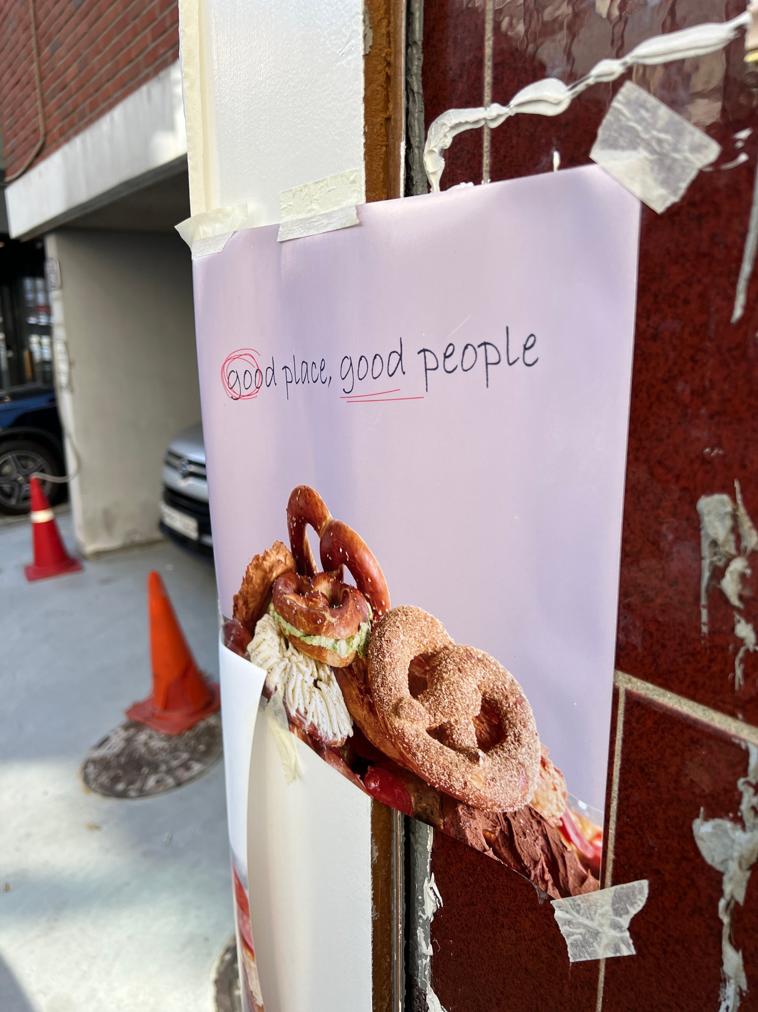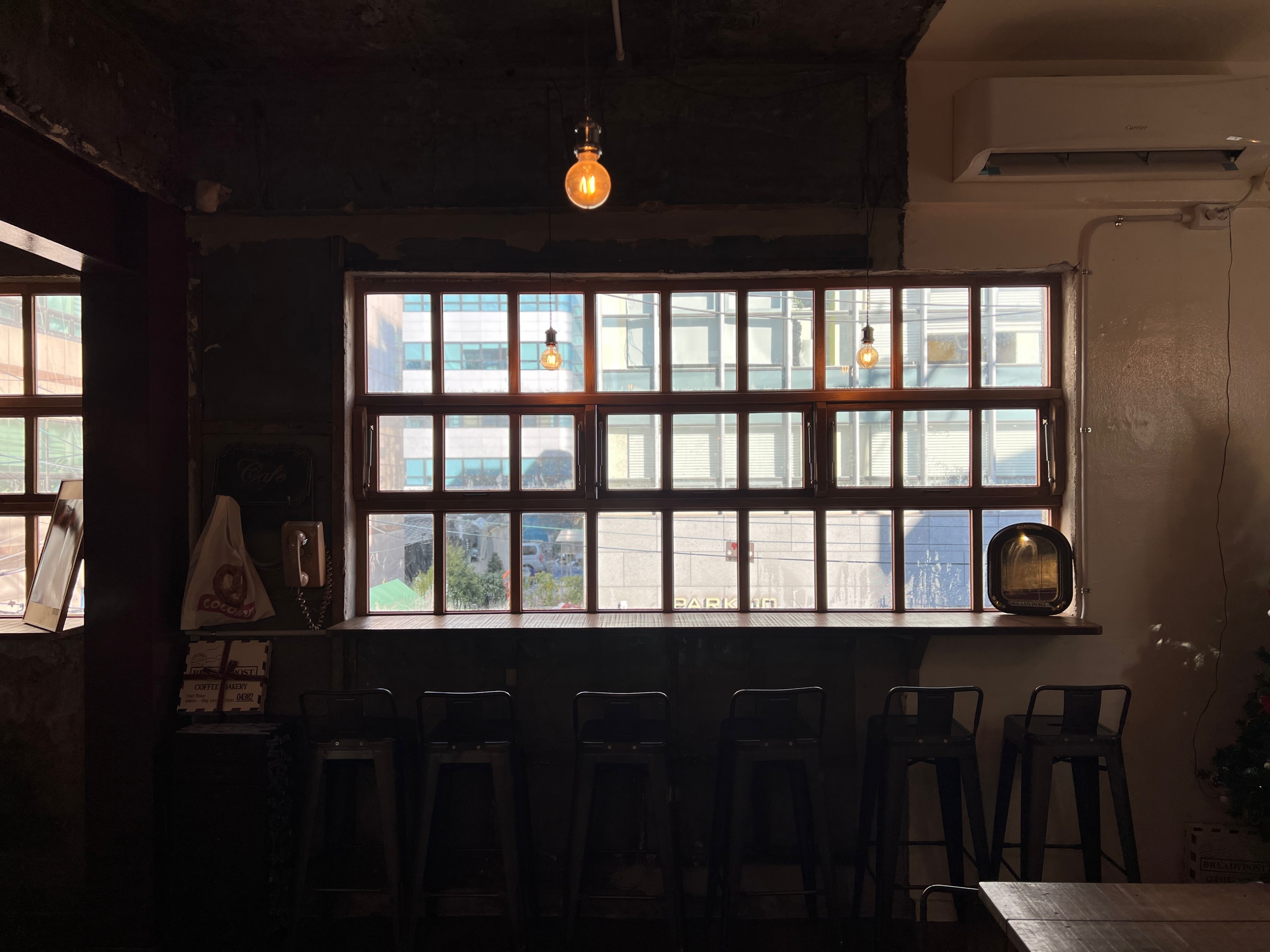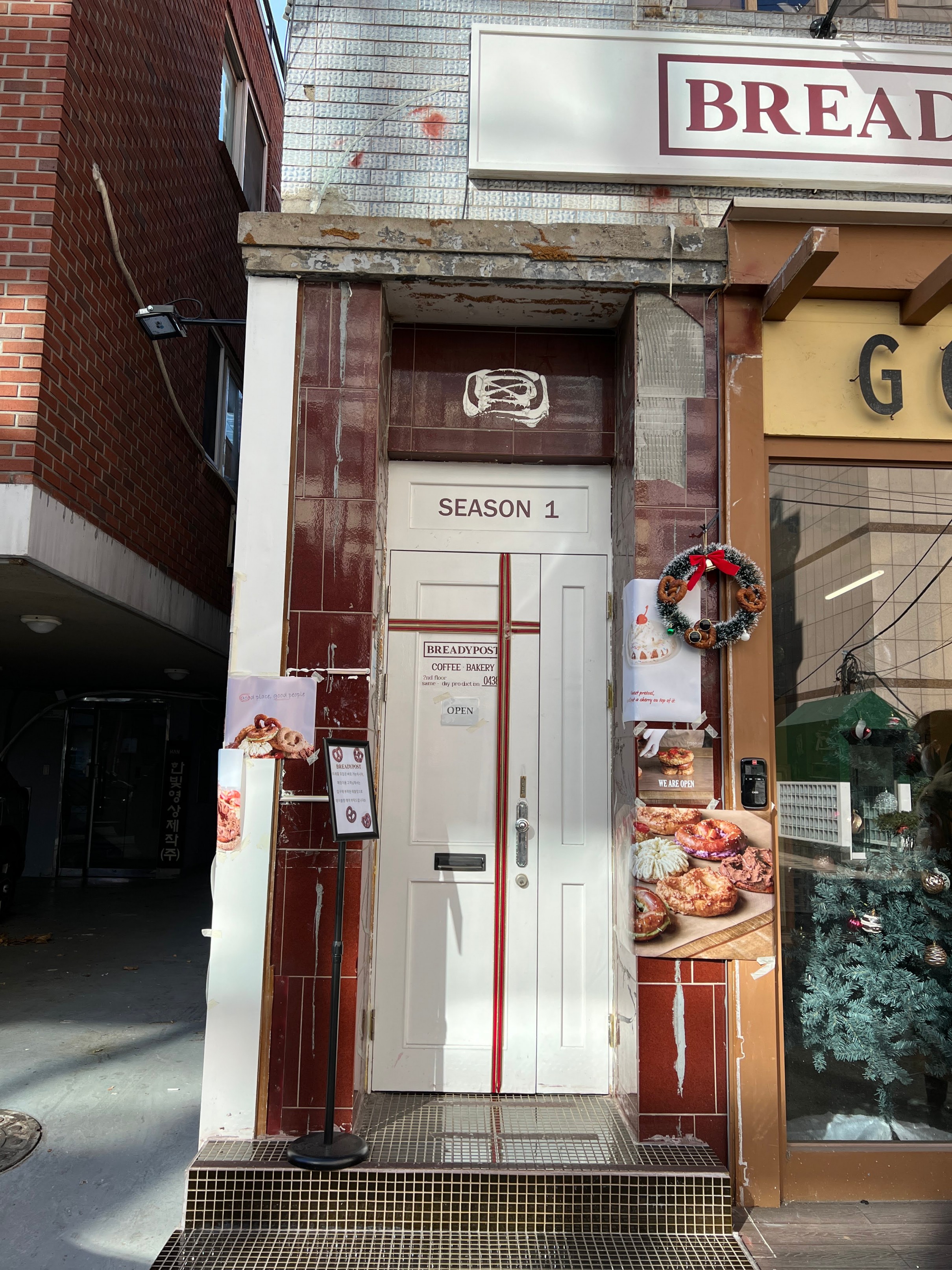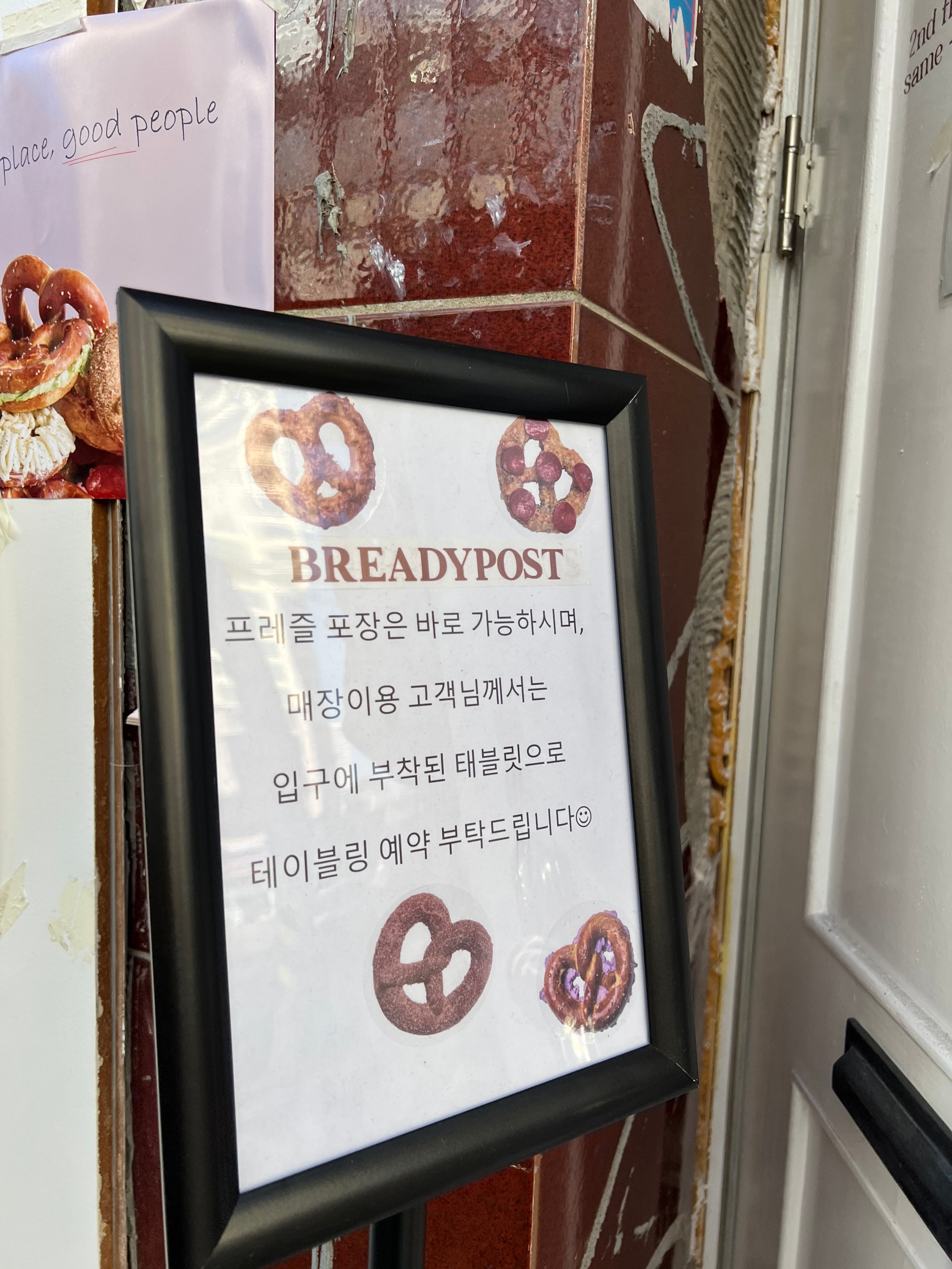 밖에 문은 이런 식으로 생겼는데 '포스트'라는 이름에 맞게 약간 유럽에 있는 우체국 같은 감성으로 만든 느낌.