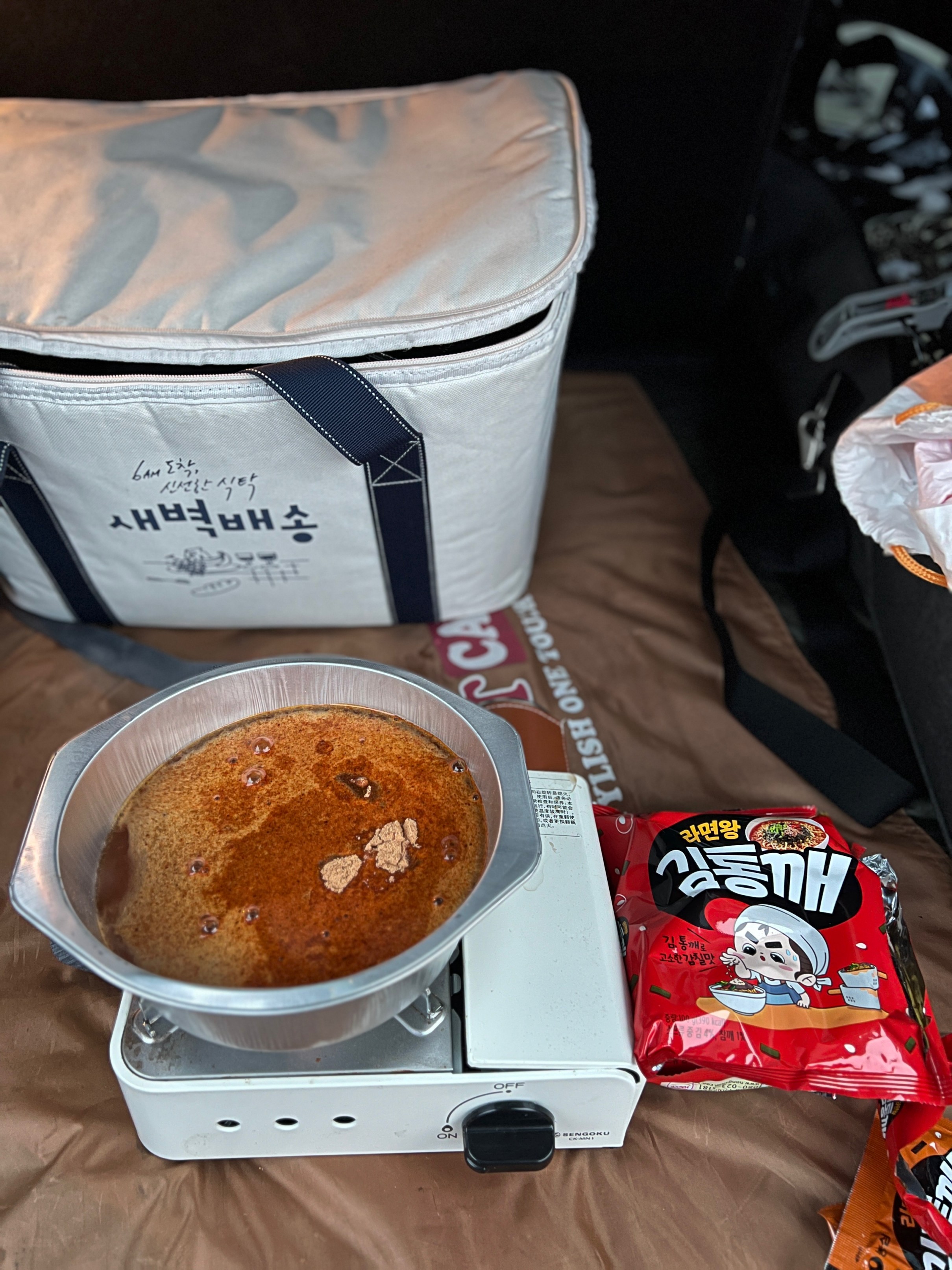 나는 캠핑용 버너를 들고 와서 라면을 끓여 먹었다 ㅋㅋㅋ