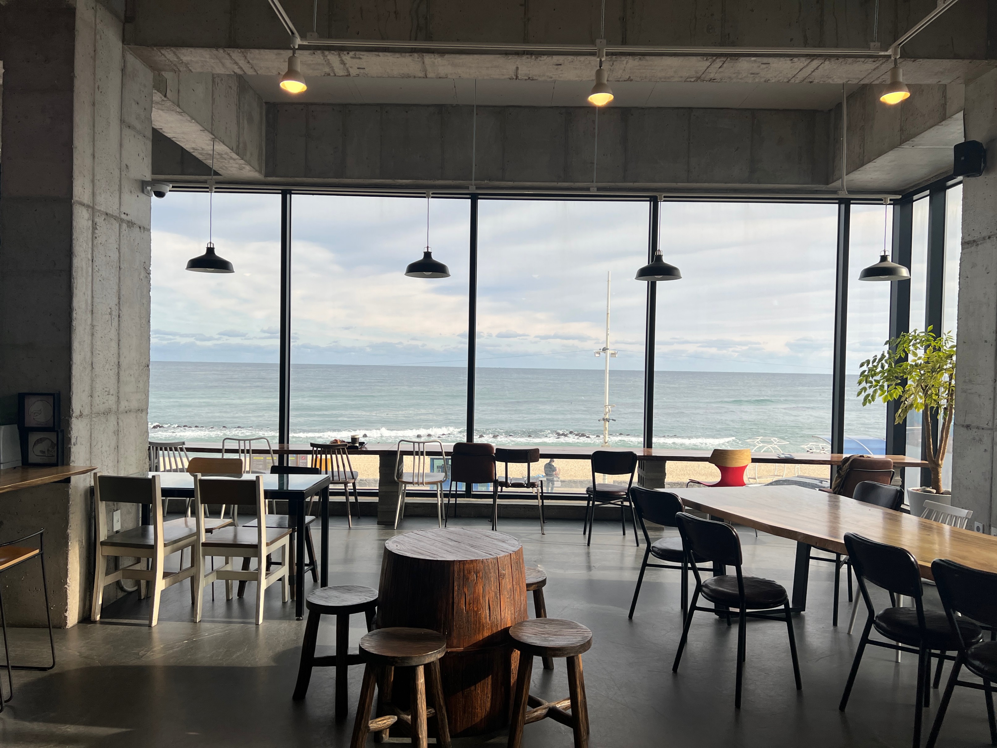 겨울바다는 사실 추워서 생각하는 것만큼의 낭만은 없는데, 이렇게 따뜻한 카페 안에서 커피 마시면서 바라보는 바다는 나름 감성 있다.