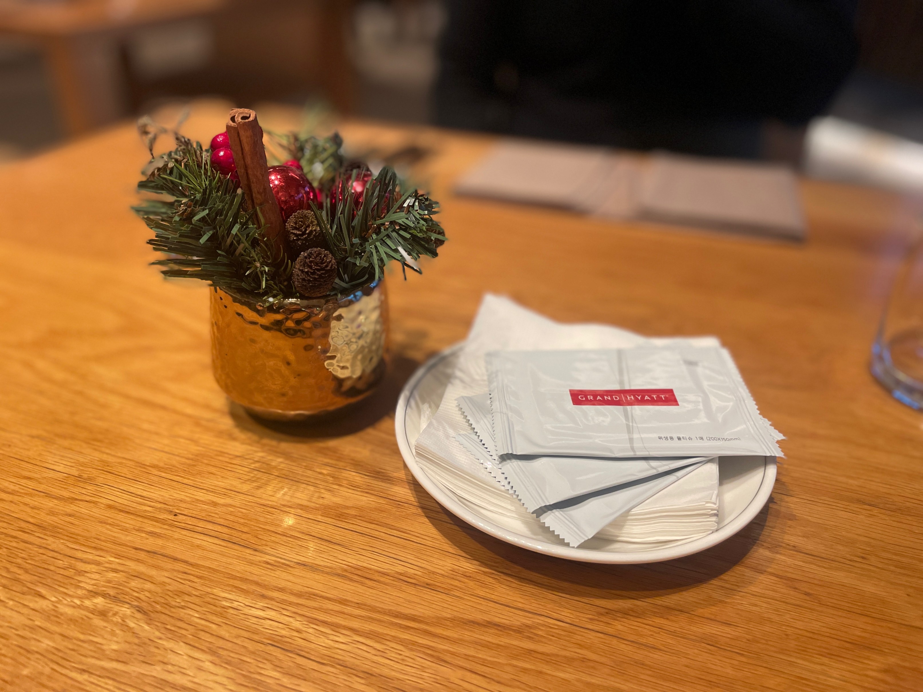 테이블에는 이렇게 크리스마스를 맞이에서 작은 장식도 있었습니다