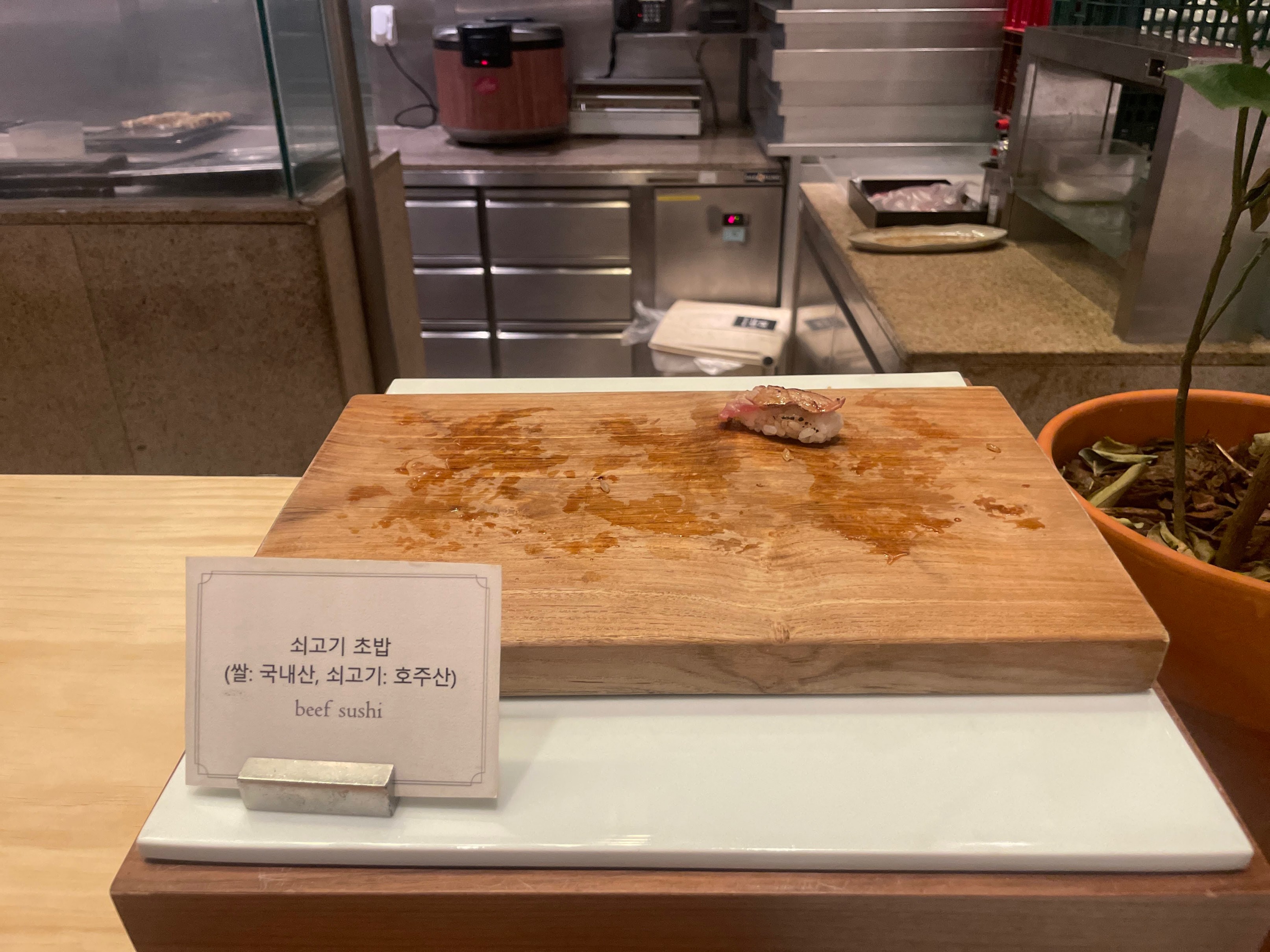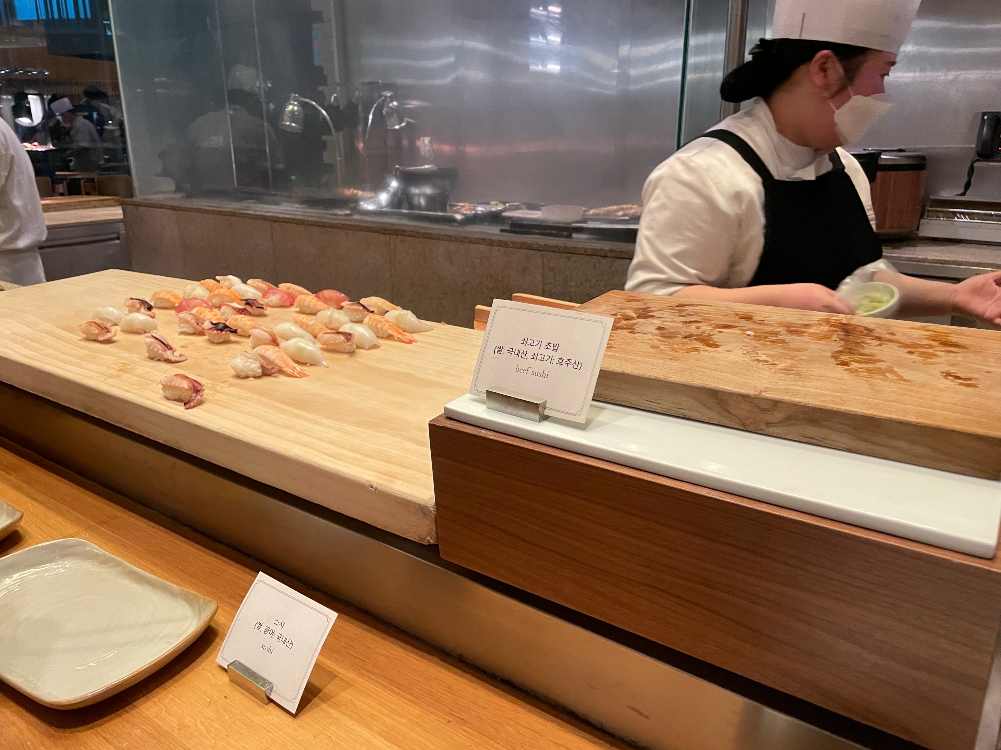 소고기초밥이 너무 인기가 많아서 갈 때마다 별로 없었어요 저도 겨우 한 조각 먹었답니다
