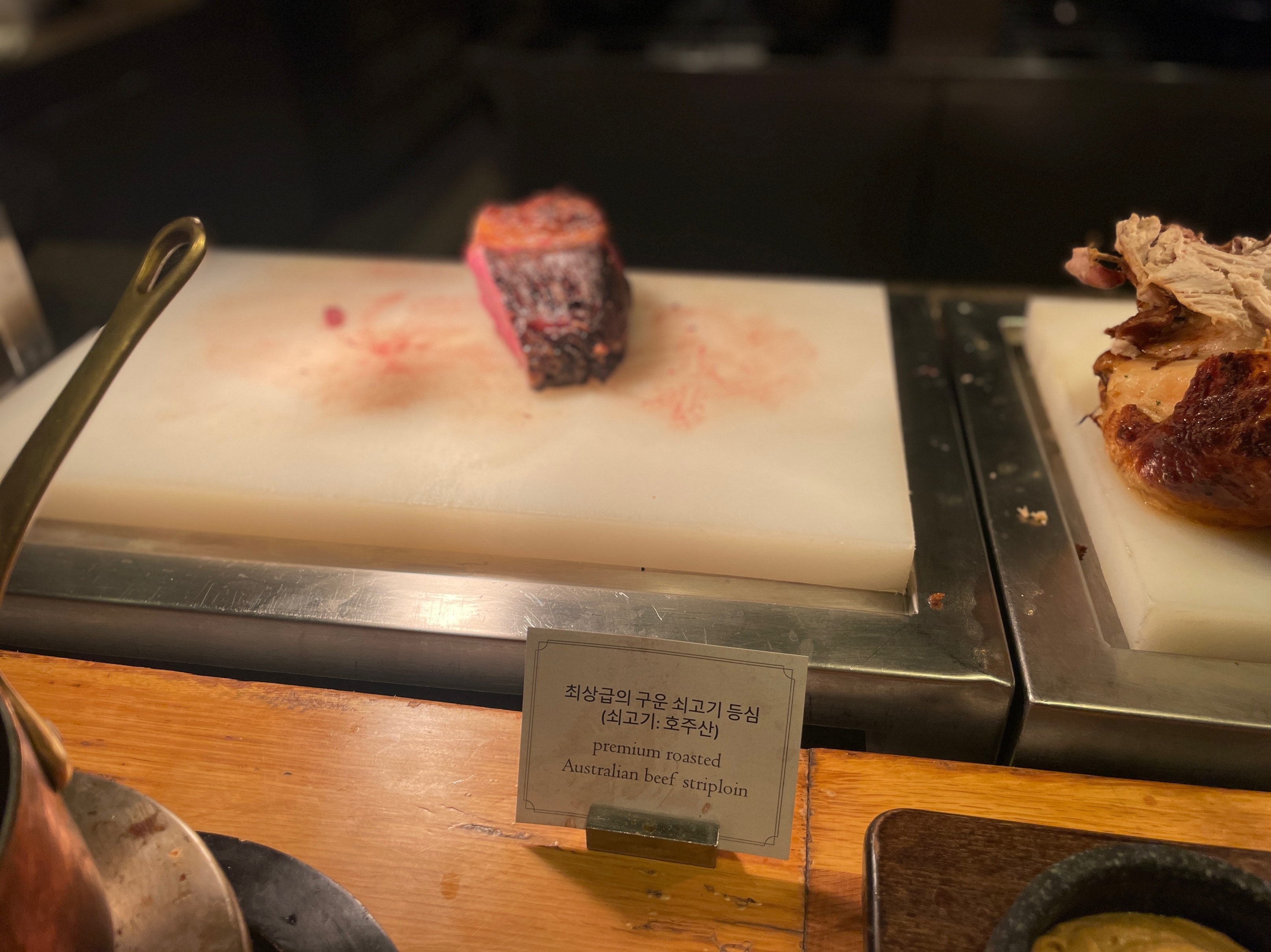 여기서 쉐프님이 잘라주시는 쇠고기 스테이크 그리고 칠면조 요리 맛있게 먹었어요