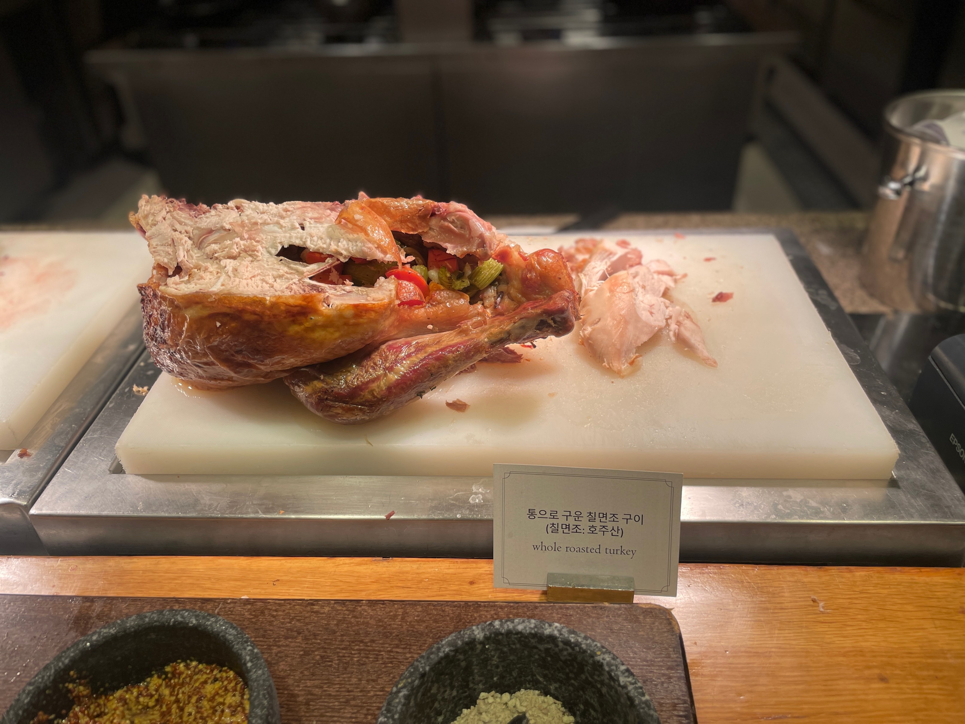 평소에 디너와 다른 점이 있었다면 Festive 뷔페에서는 칠면조 요리 등 평소에 제공 되지 않았던 메뉴가 제공된다고 하더라구요.
