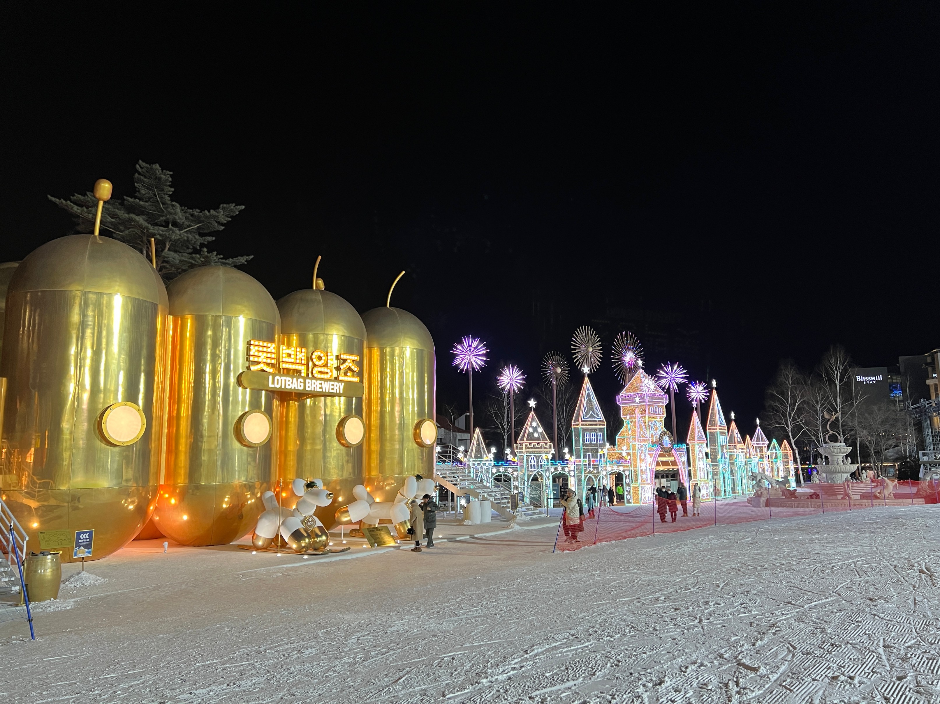 용평리조트는 아래에 이렇게 조명으로 이쁘게 꾸며놔서 사진 찍기에도 좋다.