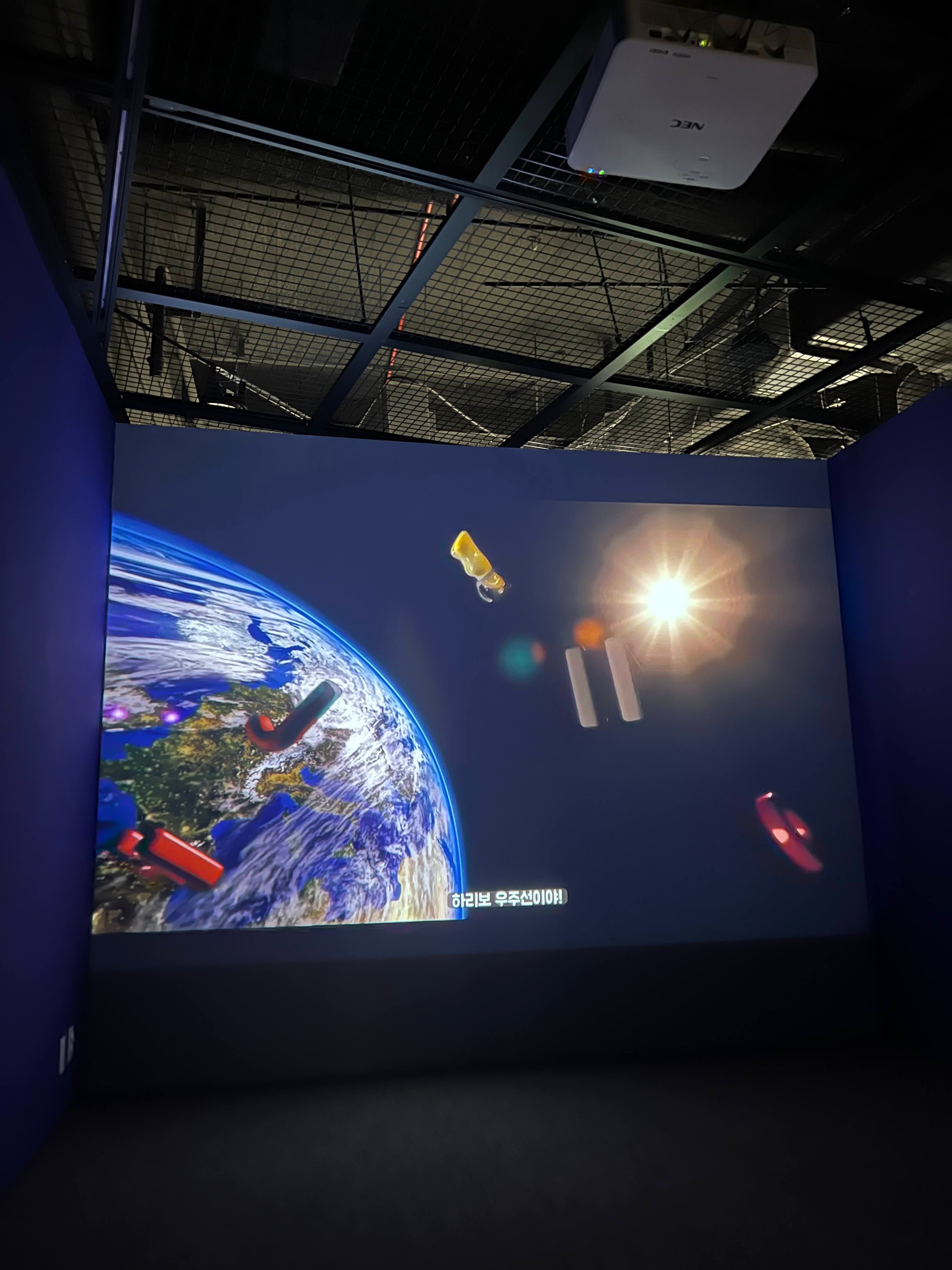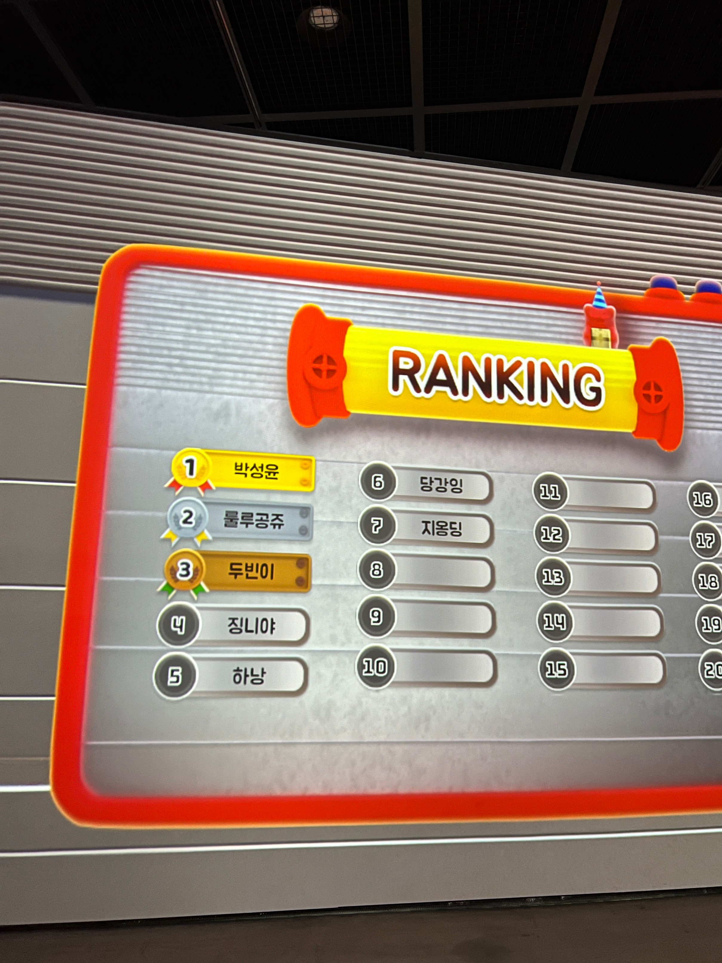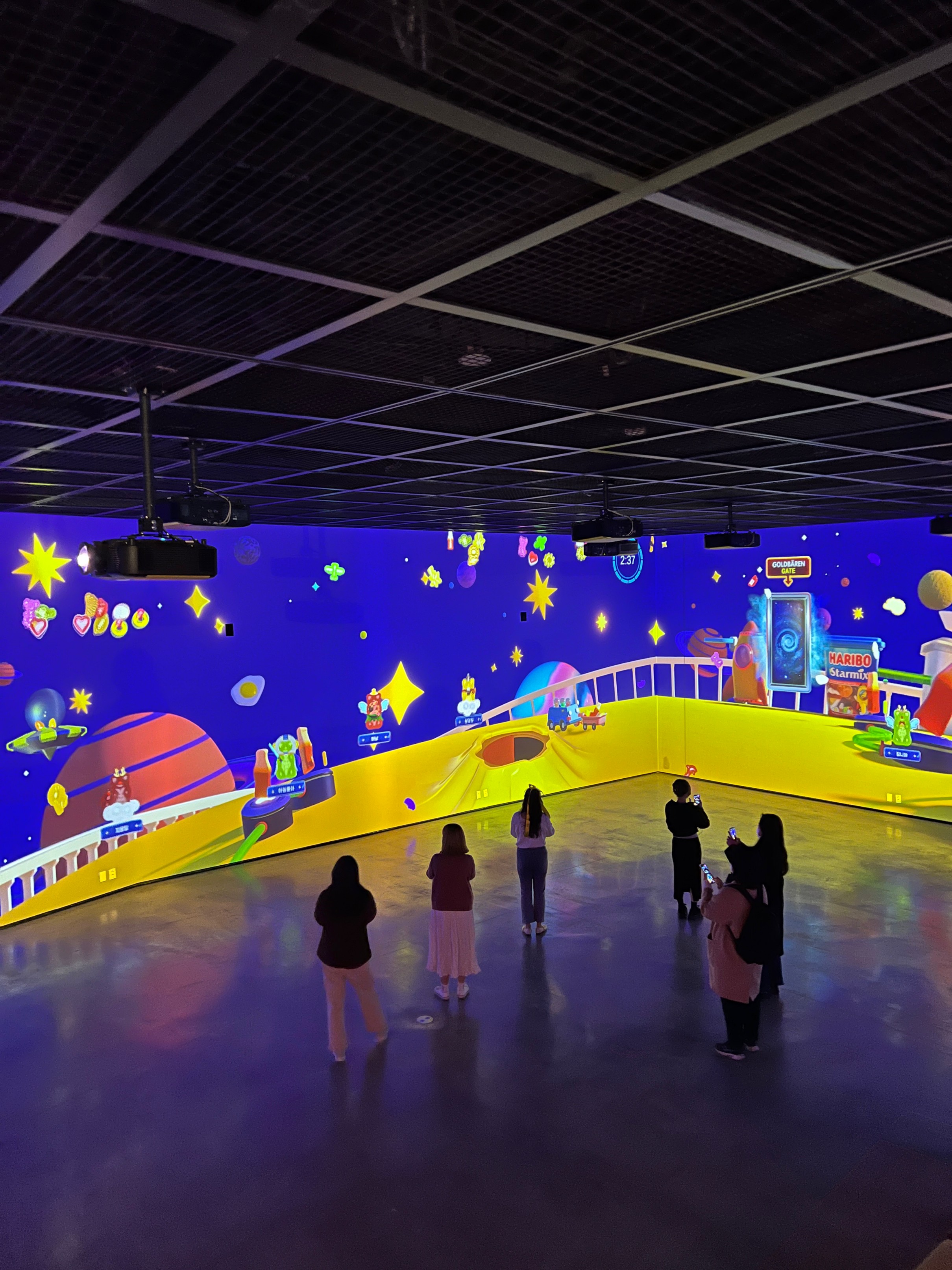 저 거대한 스크린 벽을 보면서 내 캐릭터를 조종해서 젤리를 먹으면 된다. 저런 식으로 여러 사람이 동시에 참여할 수도 있는데,