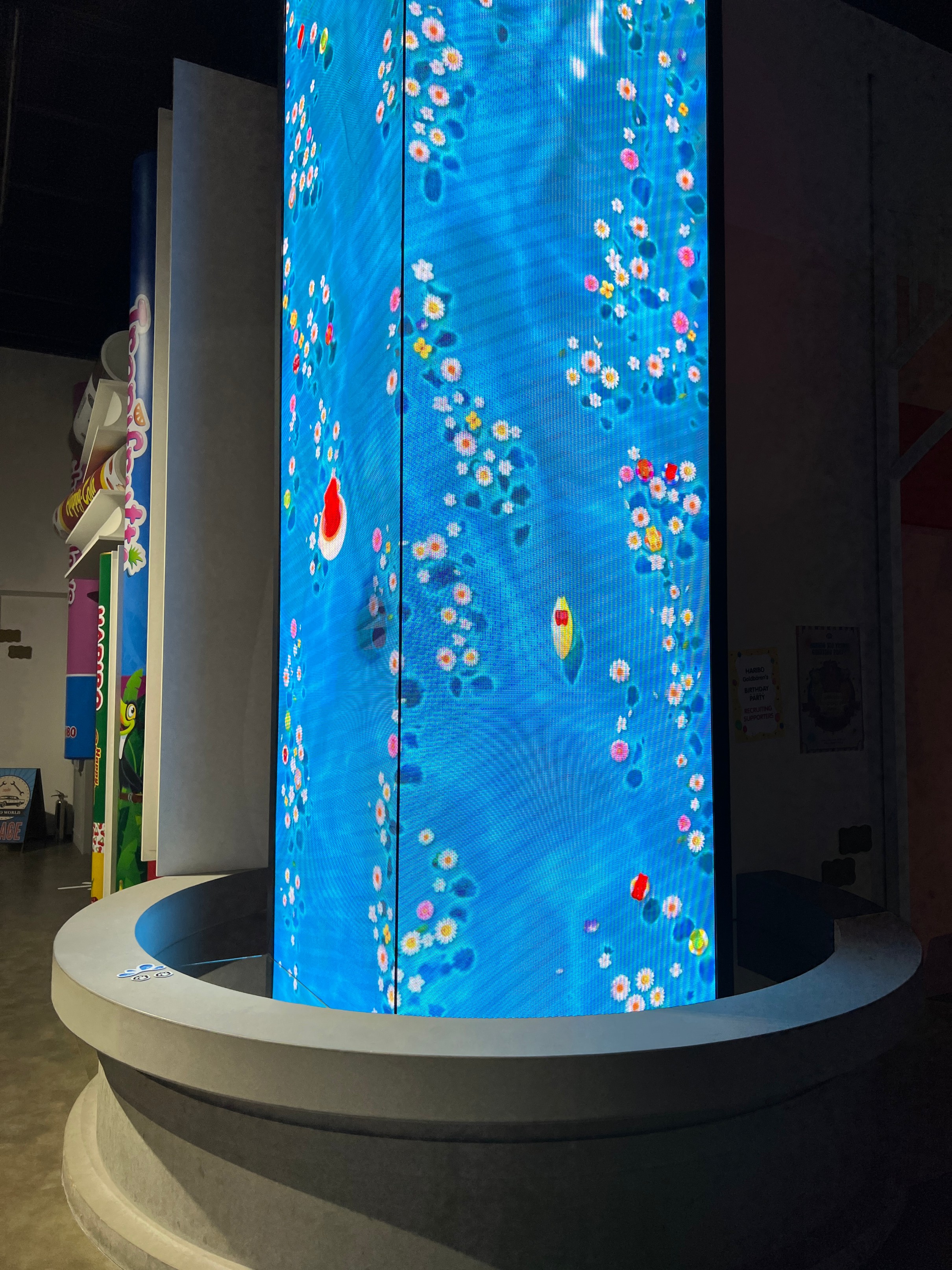 엄청 거대한 스크린에서 젤리먹는 게임을 할 수 있다.