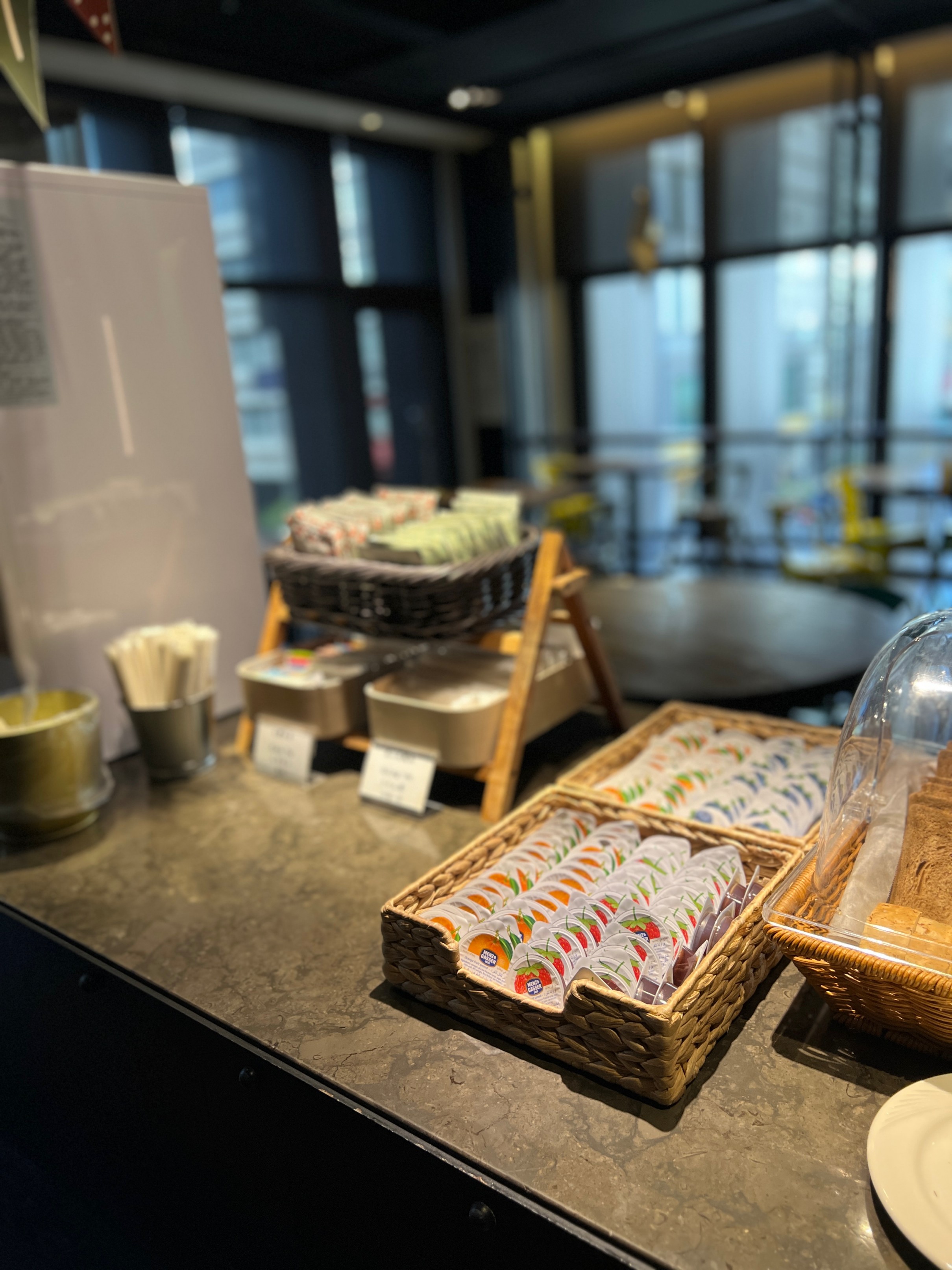 조식을 주는 식당을 자유롭게 이용할 수 있는데, 체크인 하기 전까지 각종 스낵과 음료를 무료로 즐길 수 있다.