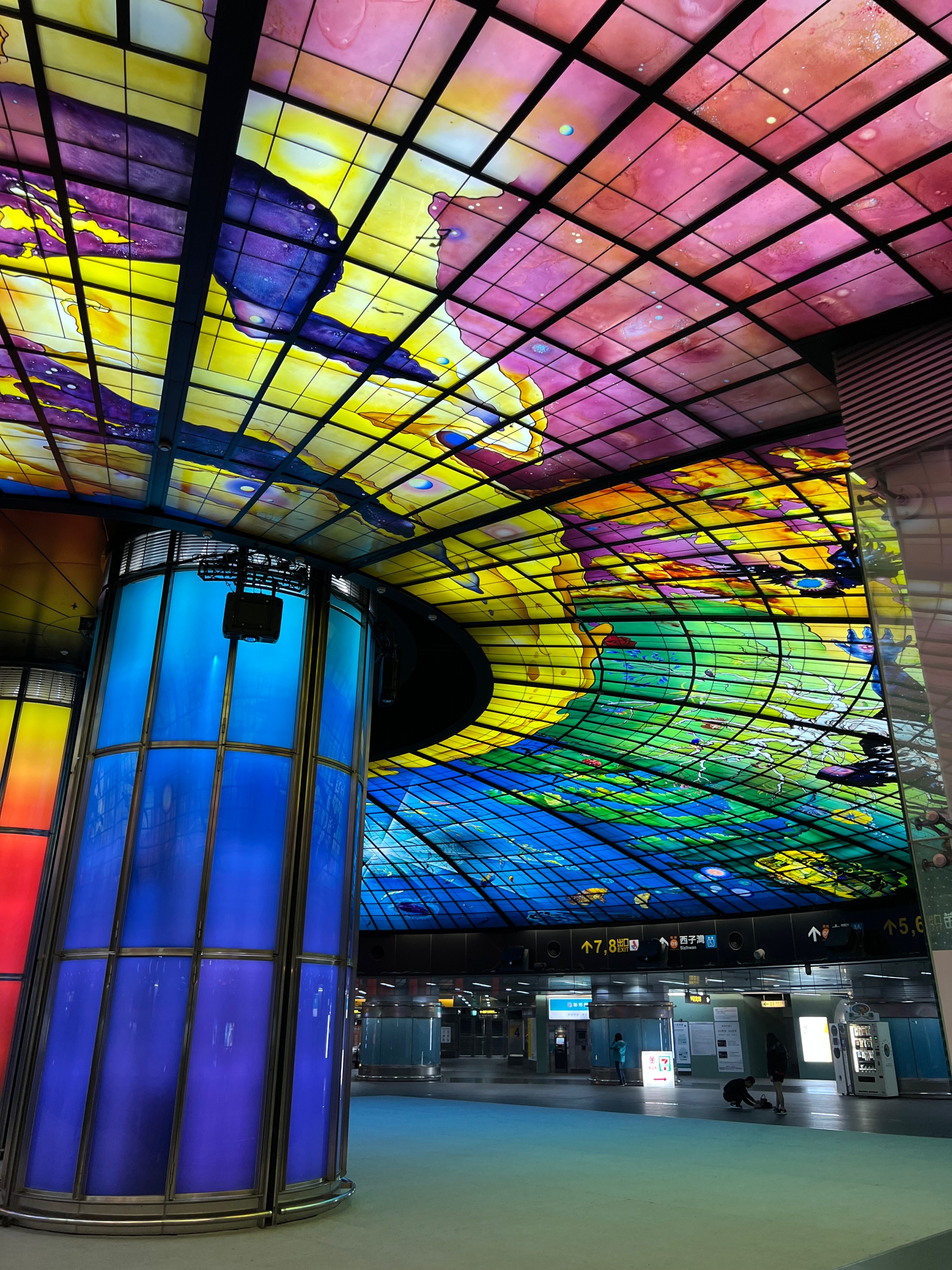 근데 나는 처음에는 그냥 이 독특한 천장이 다인 줄 알았는데 주기적으로 불빛쇼를 한다.