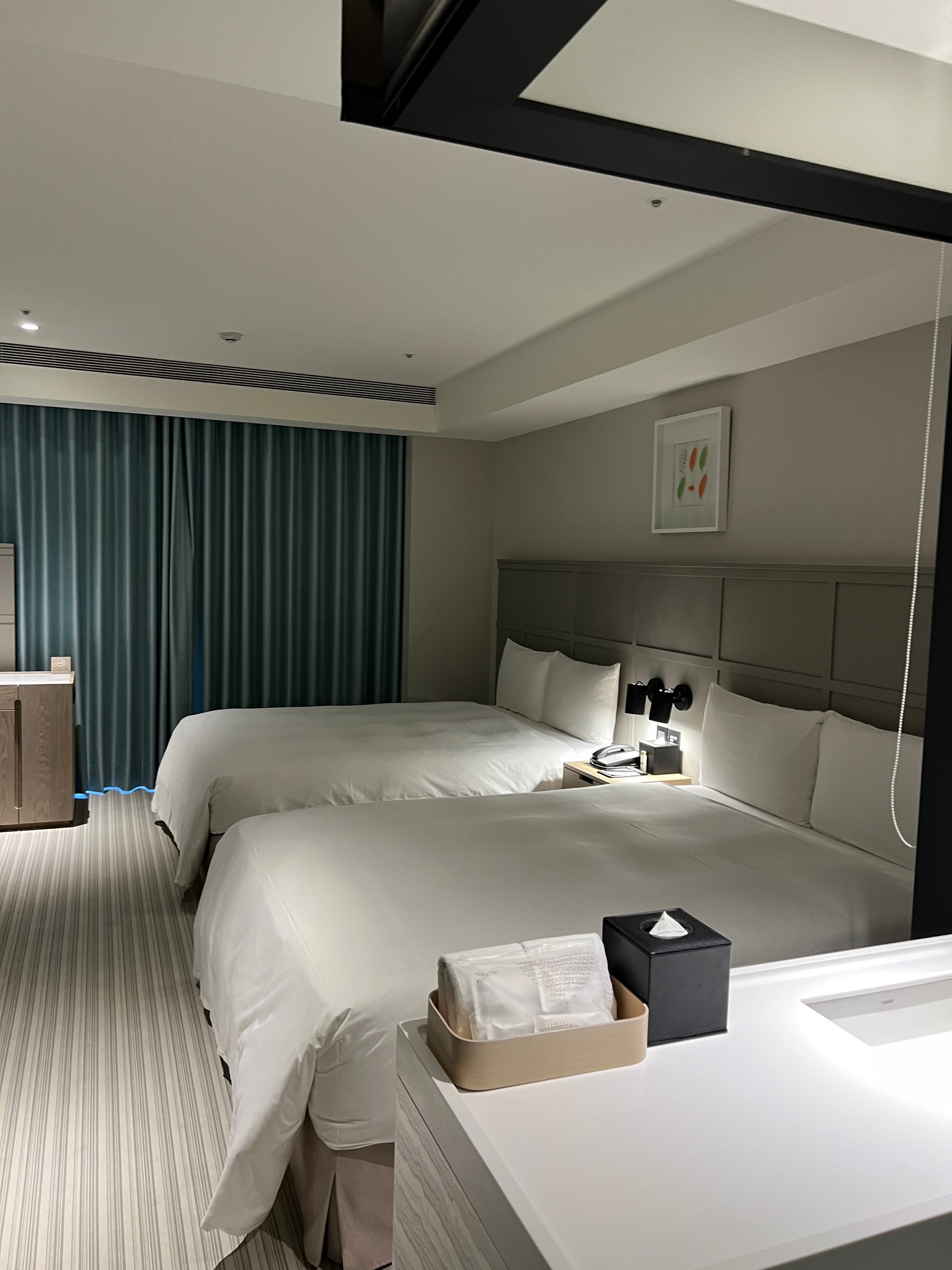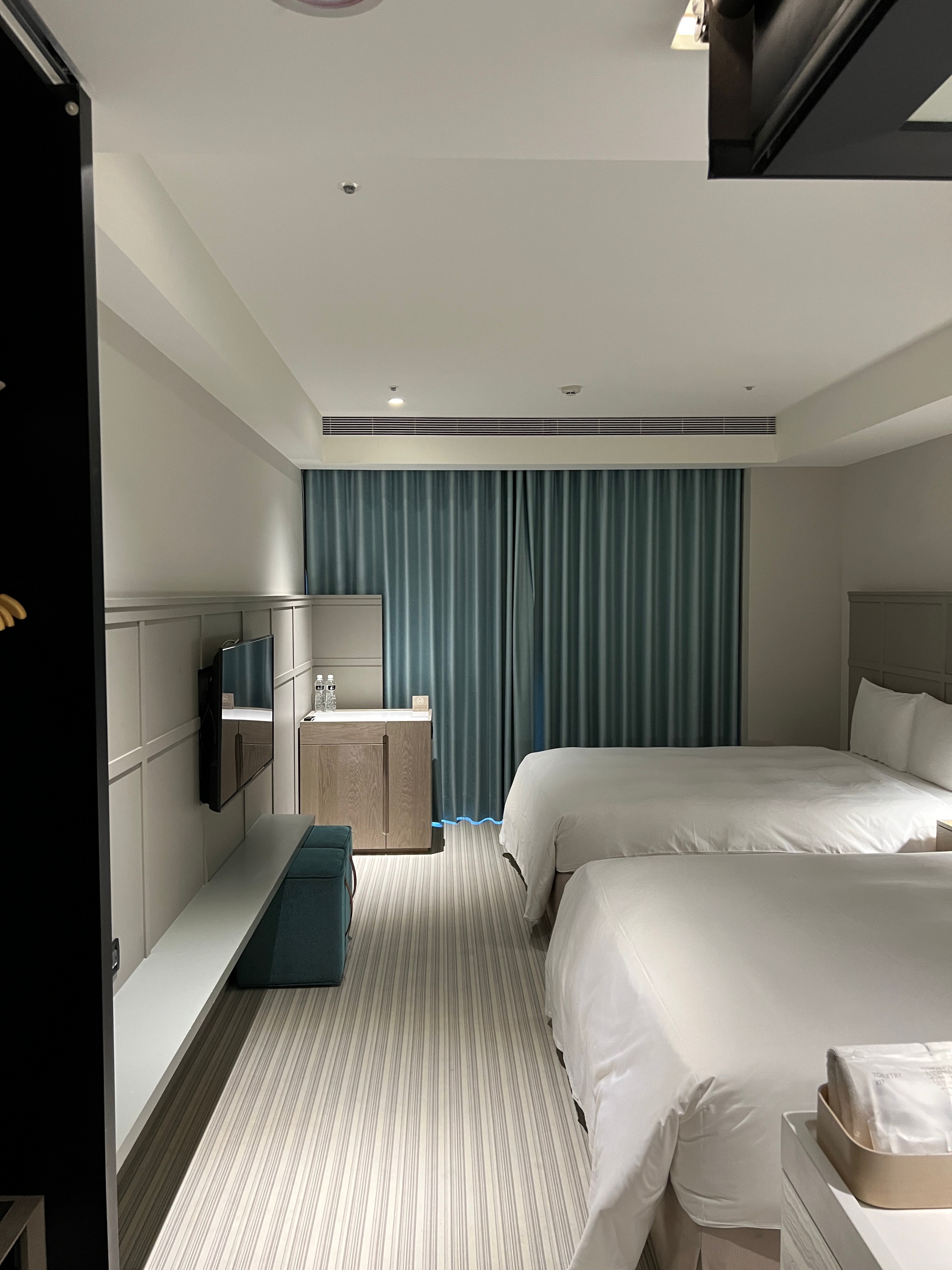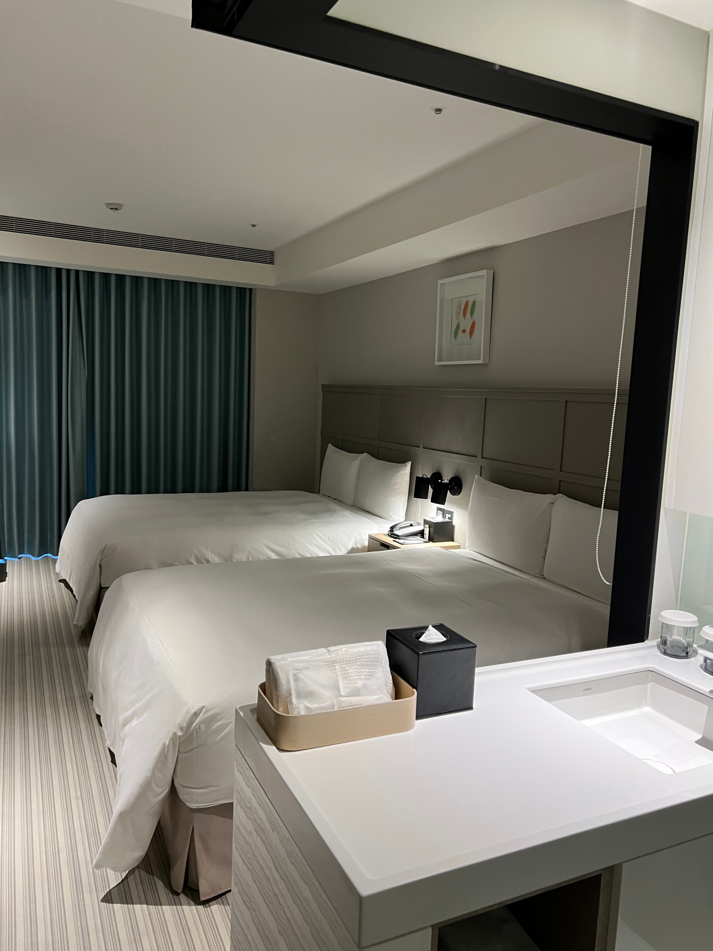 일단 이런 소소한 서비스에서부터 마음에 들었는데 객실도 상당히 크고 깔끔하다. 지은지 2-3년밖에 되지 않았다고 하는데 코로나 때 꽤 힘들었을 것 같은데 아무튼 신축이다보니 인테리어도 고급스럽고 이 정도면 거의 객실은 노보텔 용산 수준이라고 할 수 있을 정도. 뭐 가오슝에서 호텔 겨우 두 군데 가본 게 다지만 객관적으로 이 정도 퀄리티에 8만원 정도의 가격이면 가성비 끝판왕. 다음에 가오슝을 가면 무조건 이 호텔을 이용할 생각.