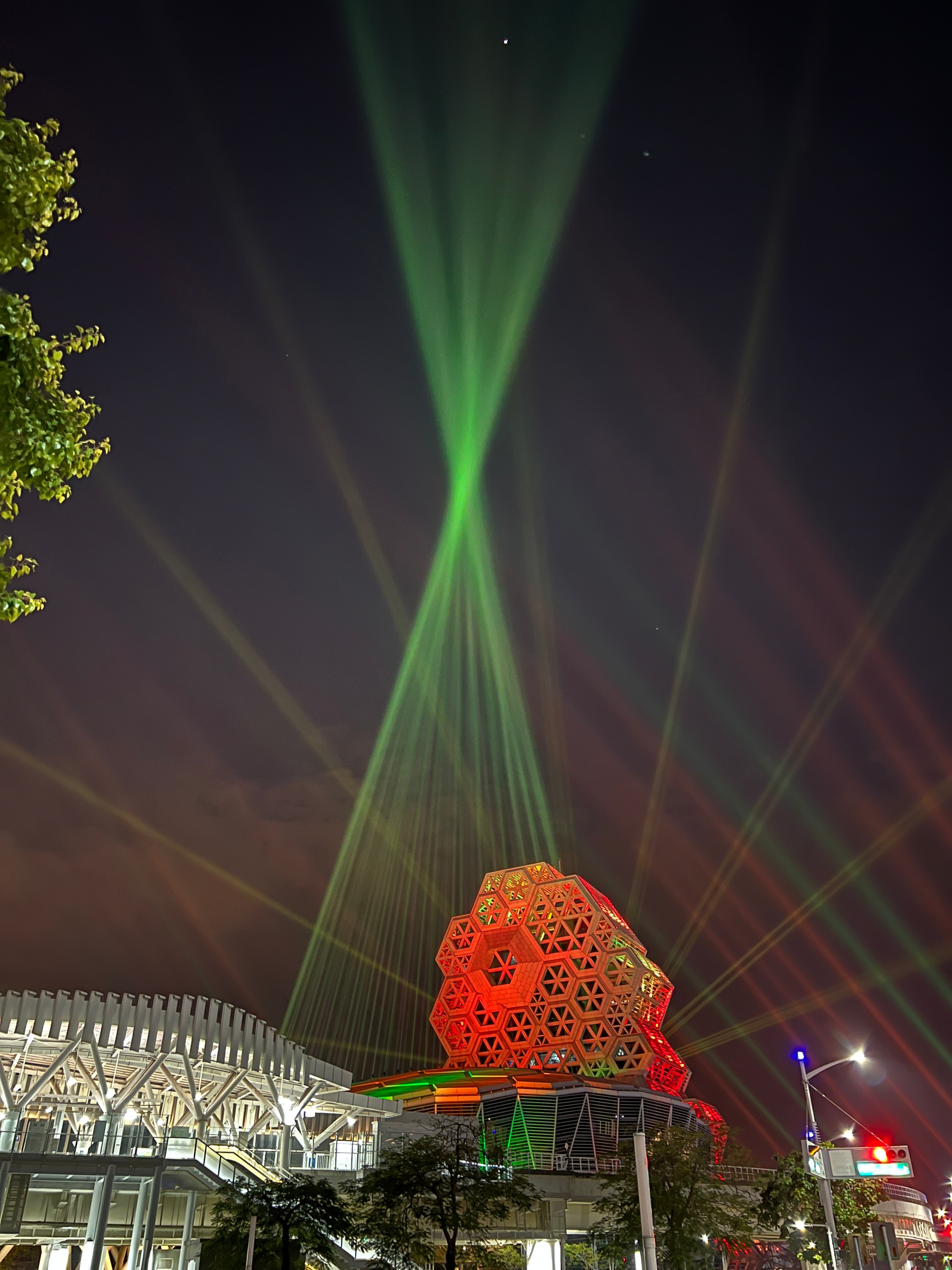 밖에서 보면 불빛을 쏴서 화려하다.