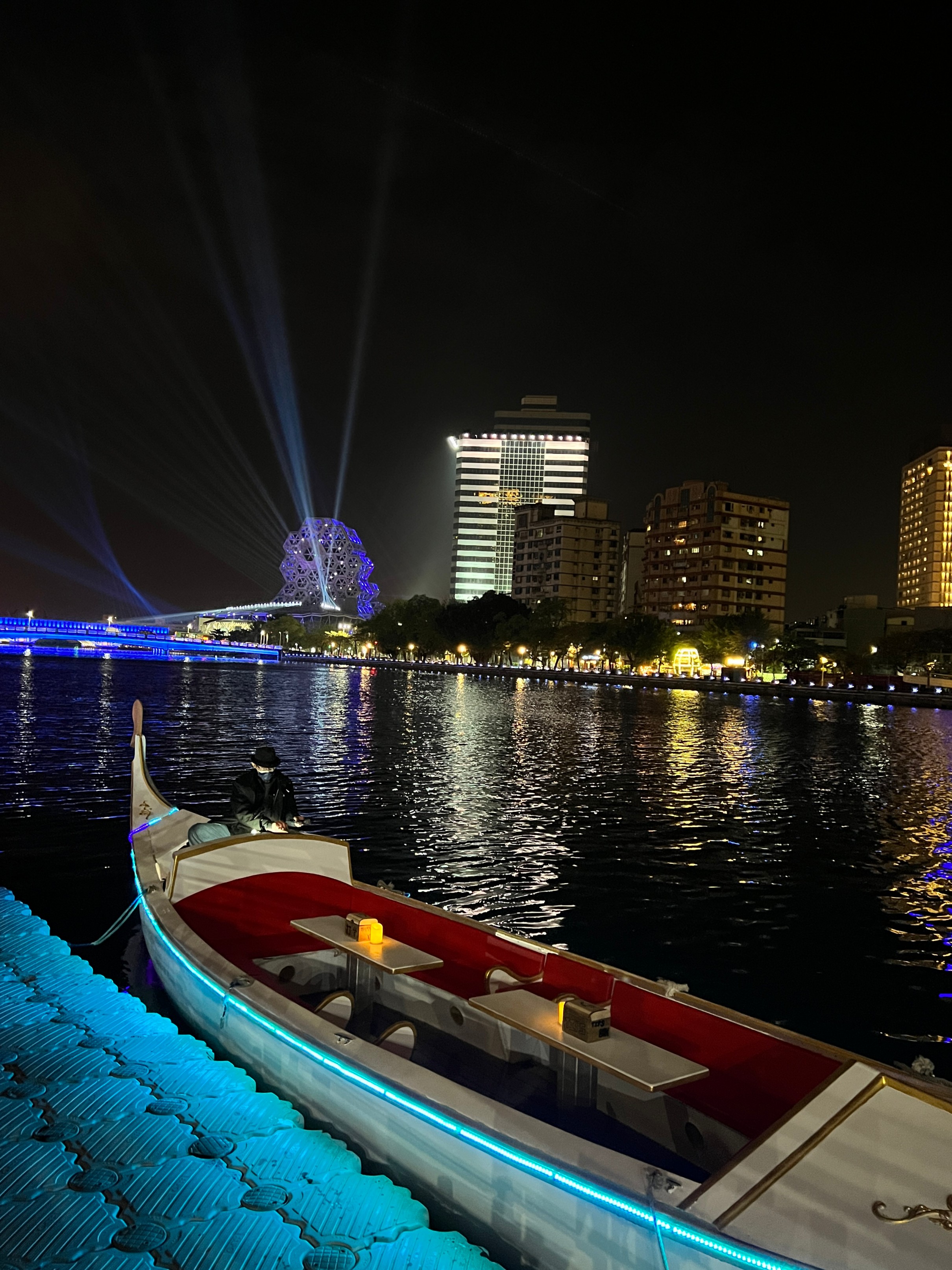 #아이허 #아이허나룻배 : 가오슝을 가로지르는 강인데 한강보다 규모는 훨씬 작지만 강 양쪽에 있는 빌딩 불빛과 멀리 보이는 가오슝 음악당에서 쏘는 레이저가 멋있어서 야경이 정말 멋진 곳. 그리고 우연히 지나가다가 본 건데 강에서 갬성 있는 나룻배도 운영을 하고 있다. 가격을 보니 1인당 125twd로 가격도 상당히 저렴해서 한번 탔는데 매우 만족. 아이허를 한번 왕복하는 건데 배를 운행하시는 분이 직접 노래도 불러주고 해서 분위기가 좋다. 이거 저녁에 마무리 산책하면서 배타는 거 매우 추천.