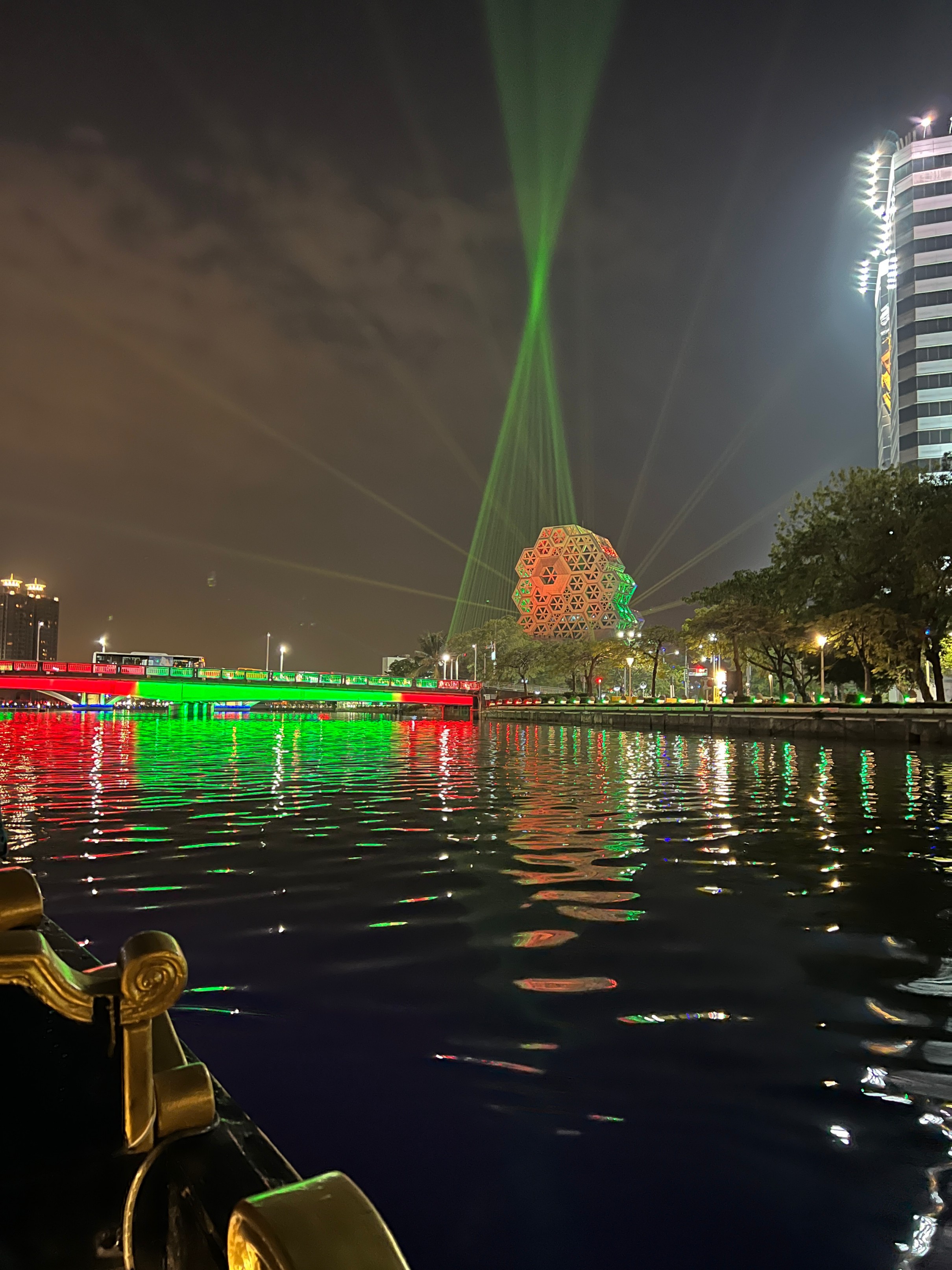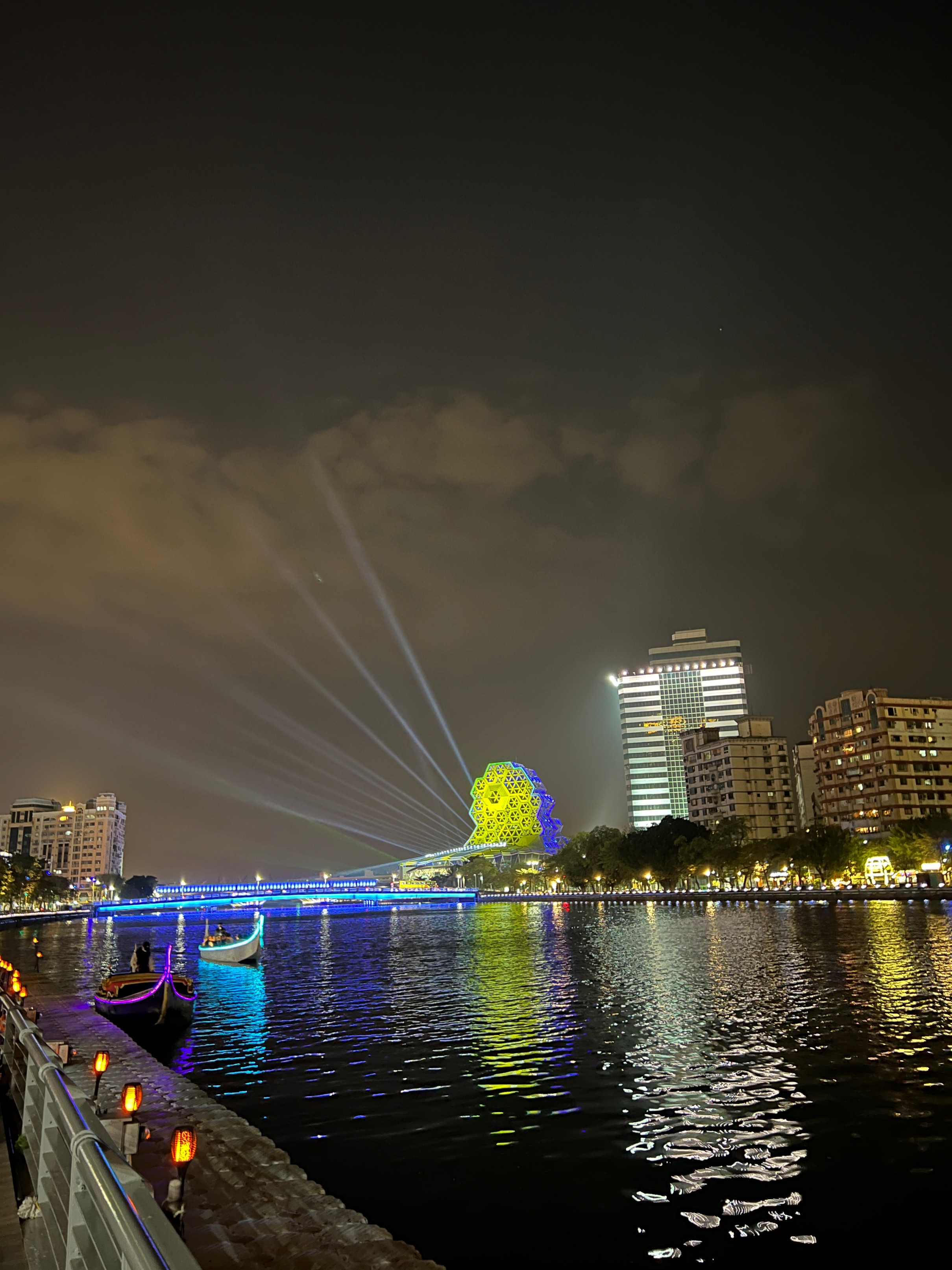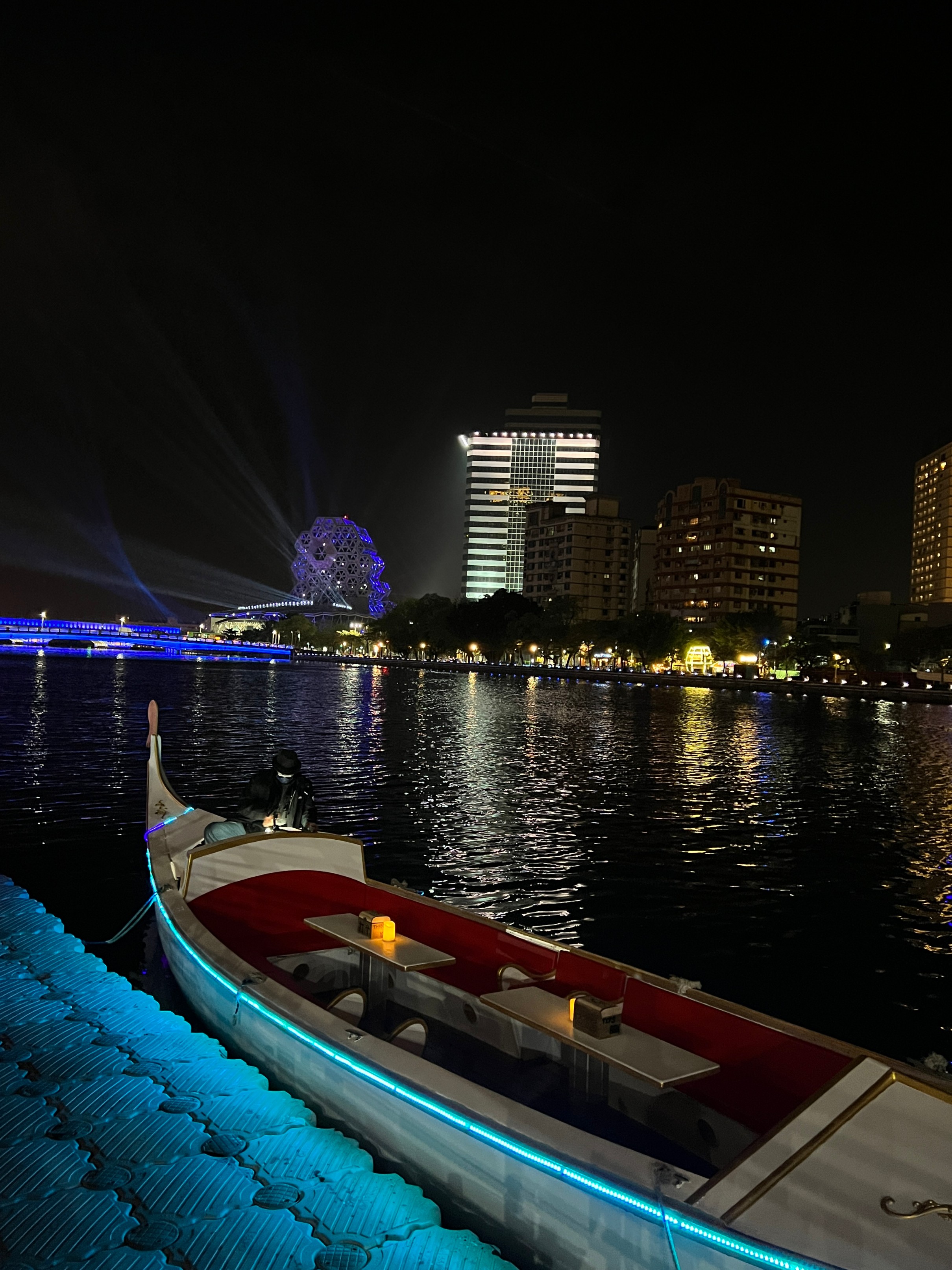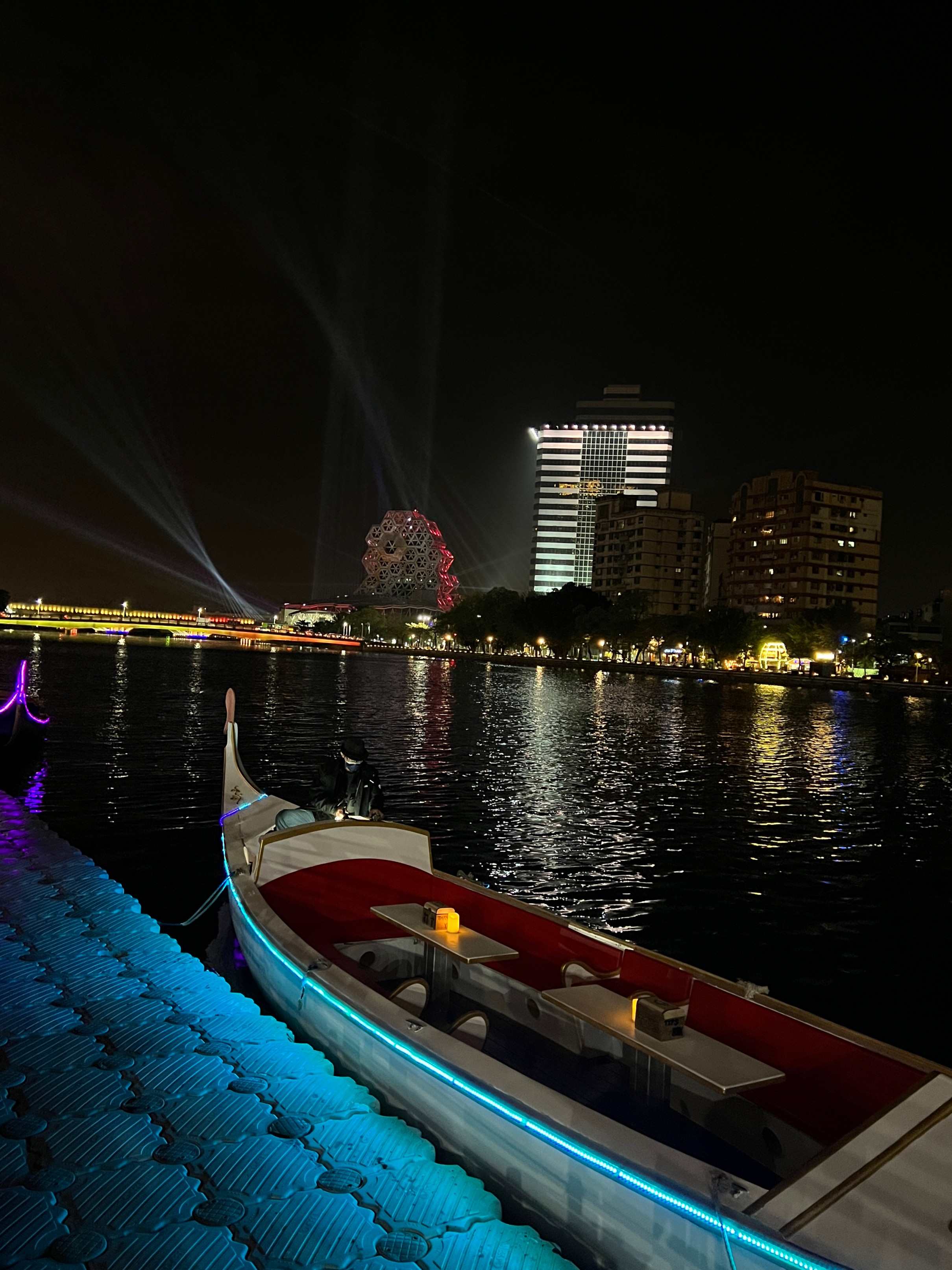 #아이허 #아이허나룻배 : 가오슝을 가로지르는 강인데 한강보다 규모는 훨씬 작지만 강 양쪽에 있는 빌딩 불빛과 멀리 보이는 가오슝 음악당에서 쏘는 레이저가 멋있어서 야경이 정말 멋진 곳. 그리고 우연히 지나가다가 본 건데 강에서 갬성 있는 나룻배도 운영을 하고 있다. 가격을 보니 1인당 125twd로 가격도 상당히 저렴해서 한번 탔는데 매우 만족. 아이허를 한번 왕복하는 건데 배를 운행하시는 분이 직접 노래도 불러주고 해서 분위기가 좋다. 이거 저녁에 마무리 산책하면서 배타는 거 매우 추천.