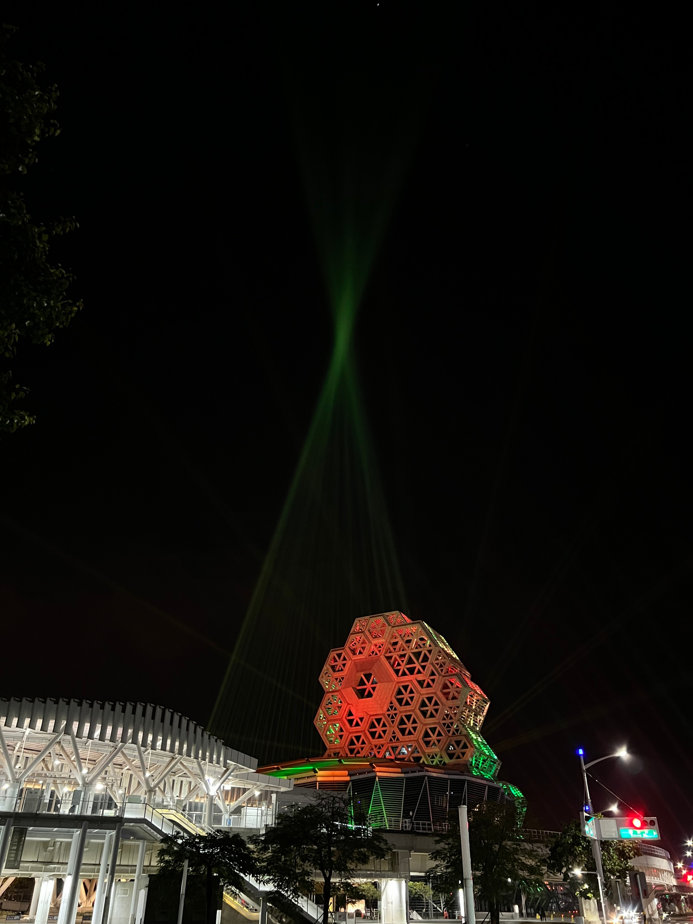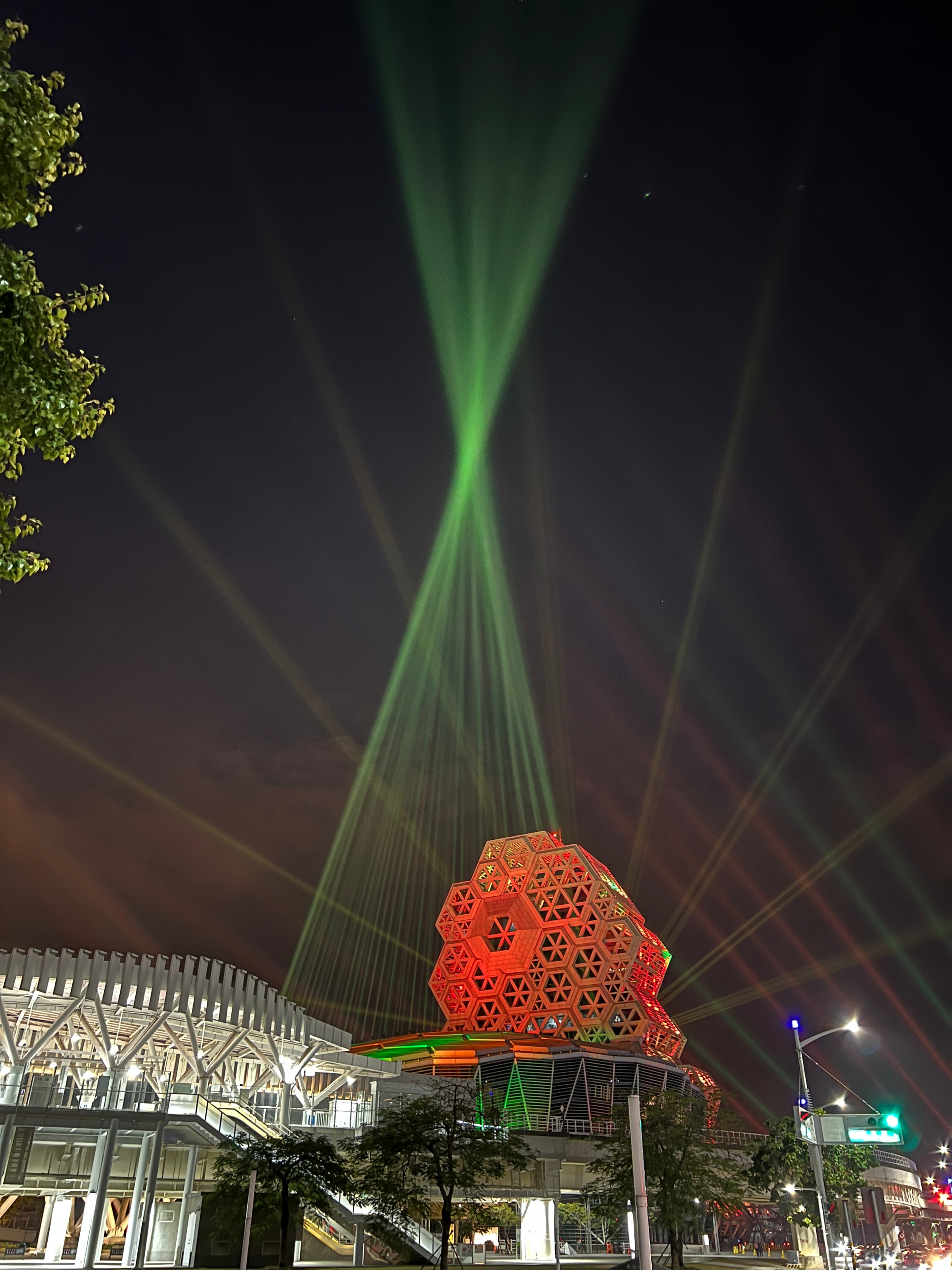 밖에서 보면 불빛을 쏴서 화려하다.
