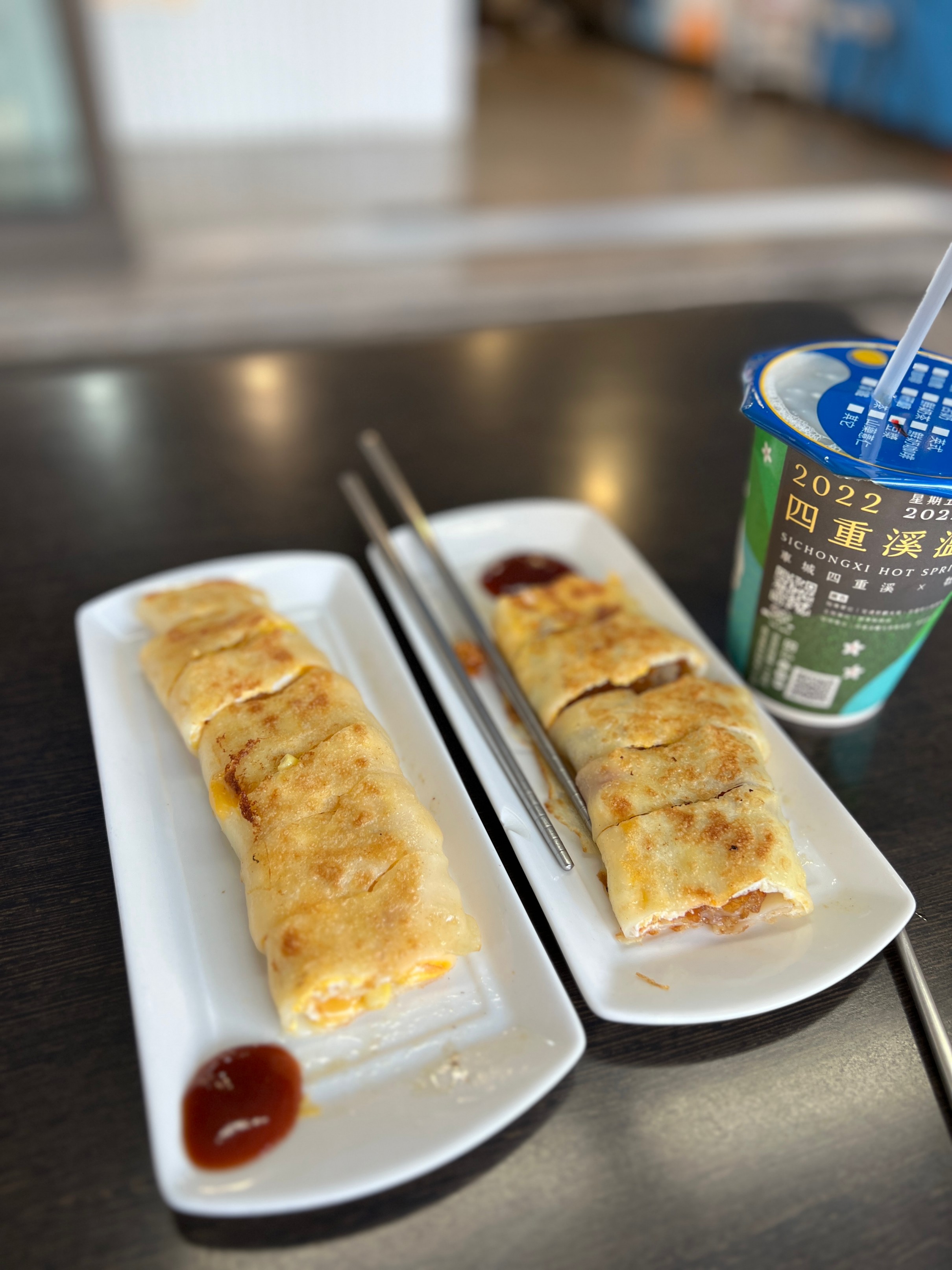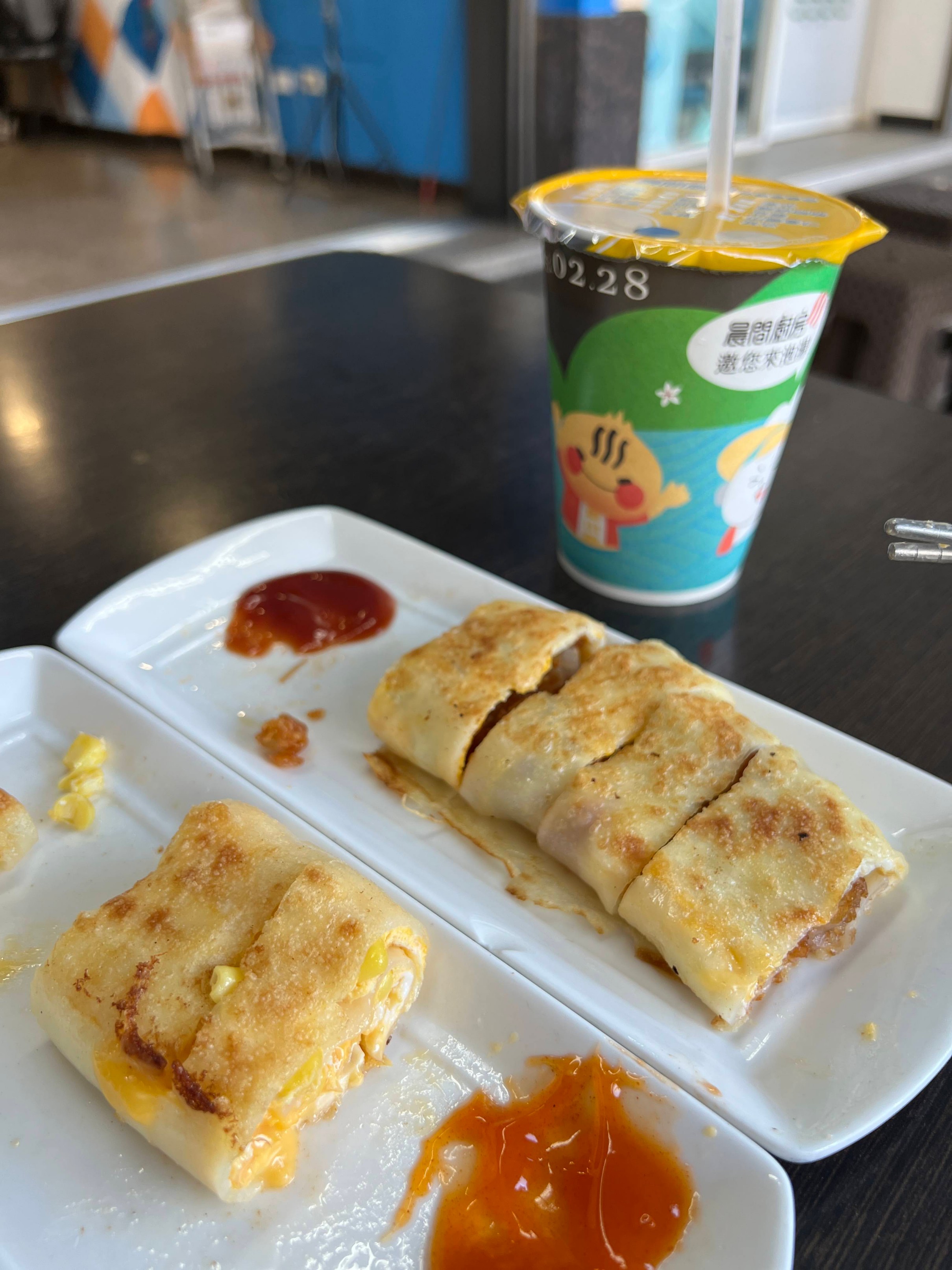 이런 버블티랑 대만식 아침식사를 시켜봄.
