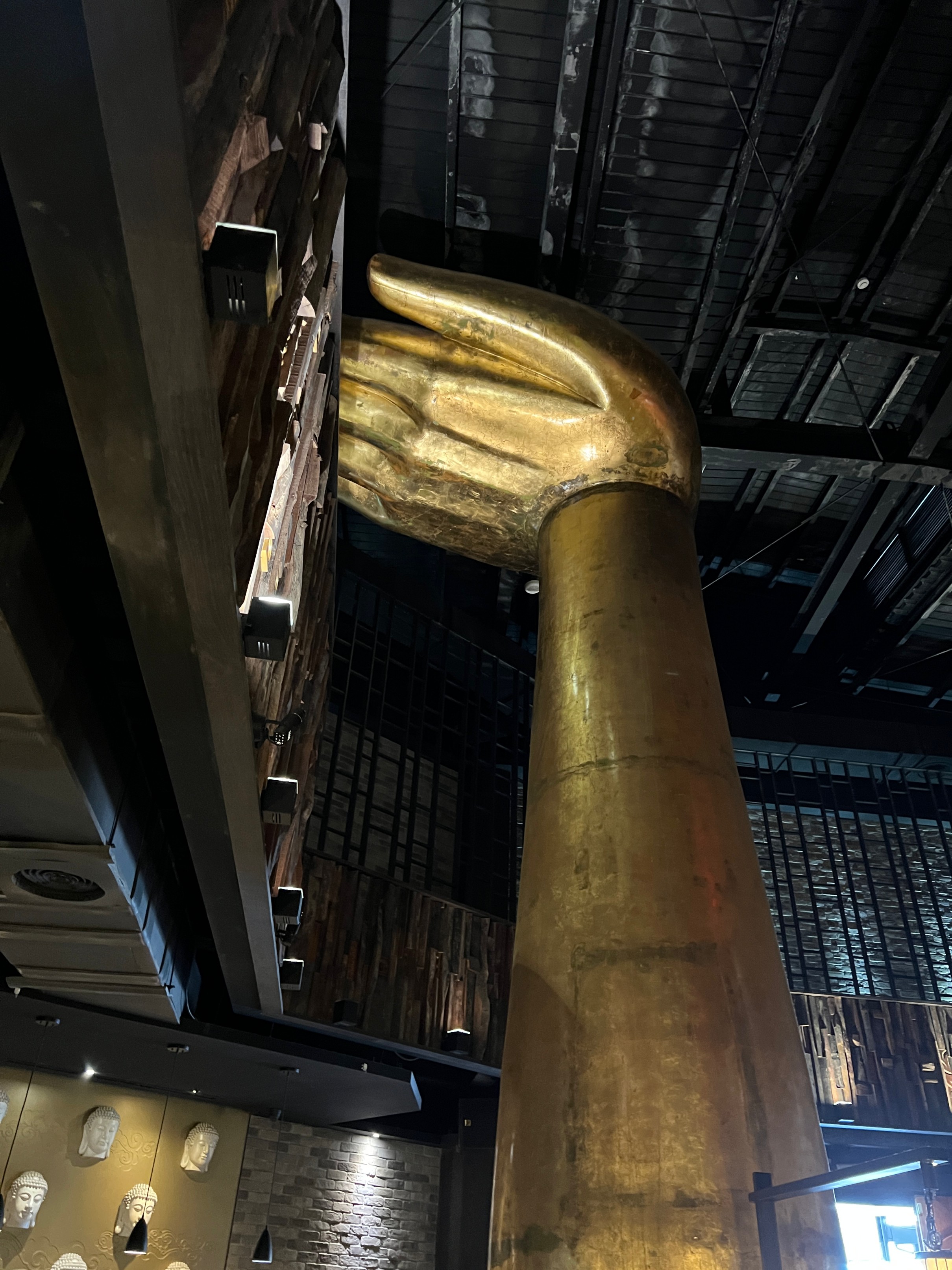 디테일하게 부처님 손이 천장을 바치고 있는 조형물도 있다.