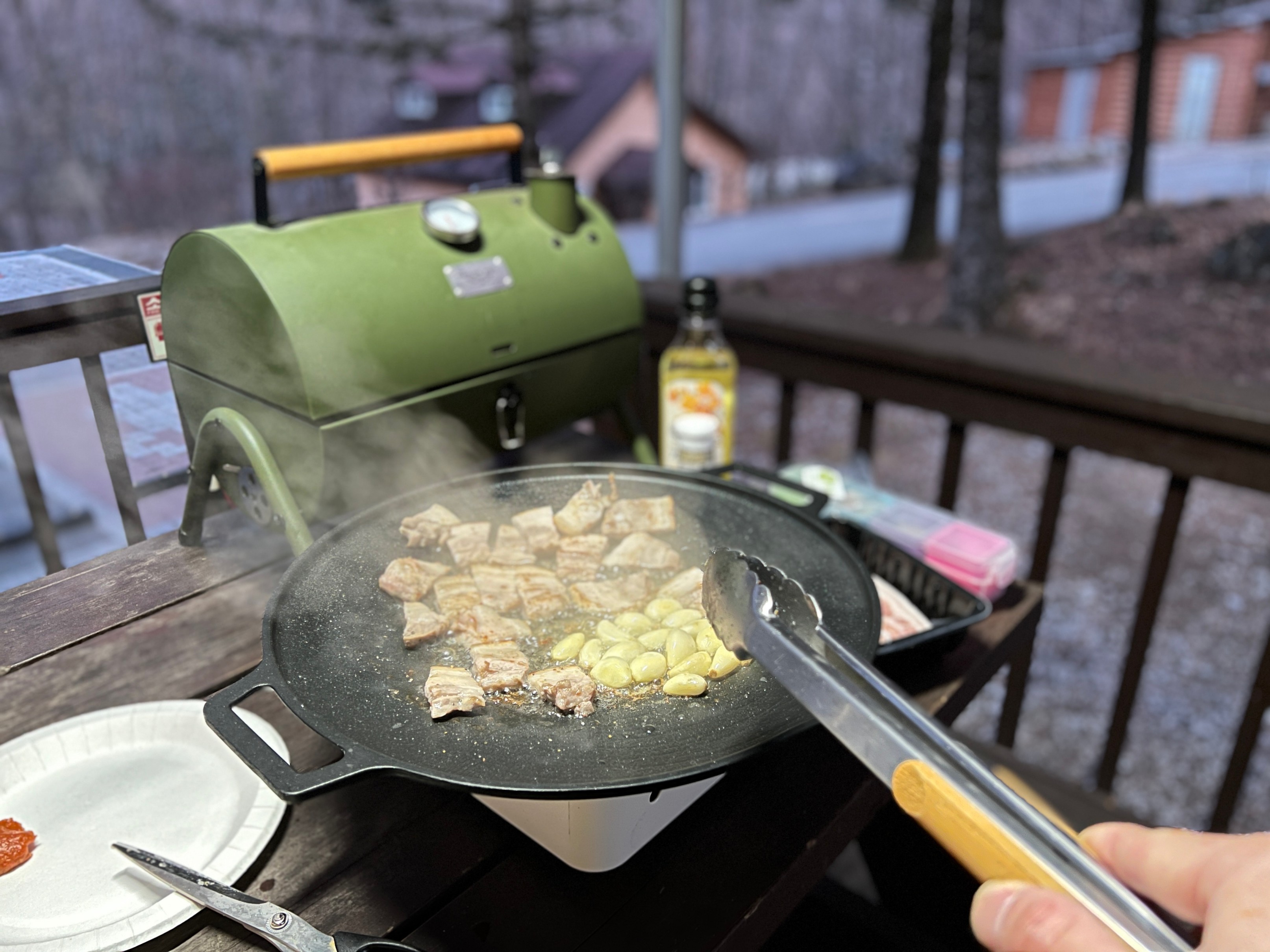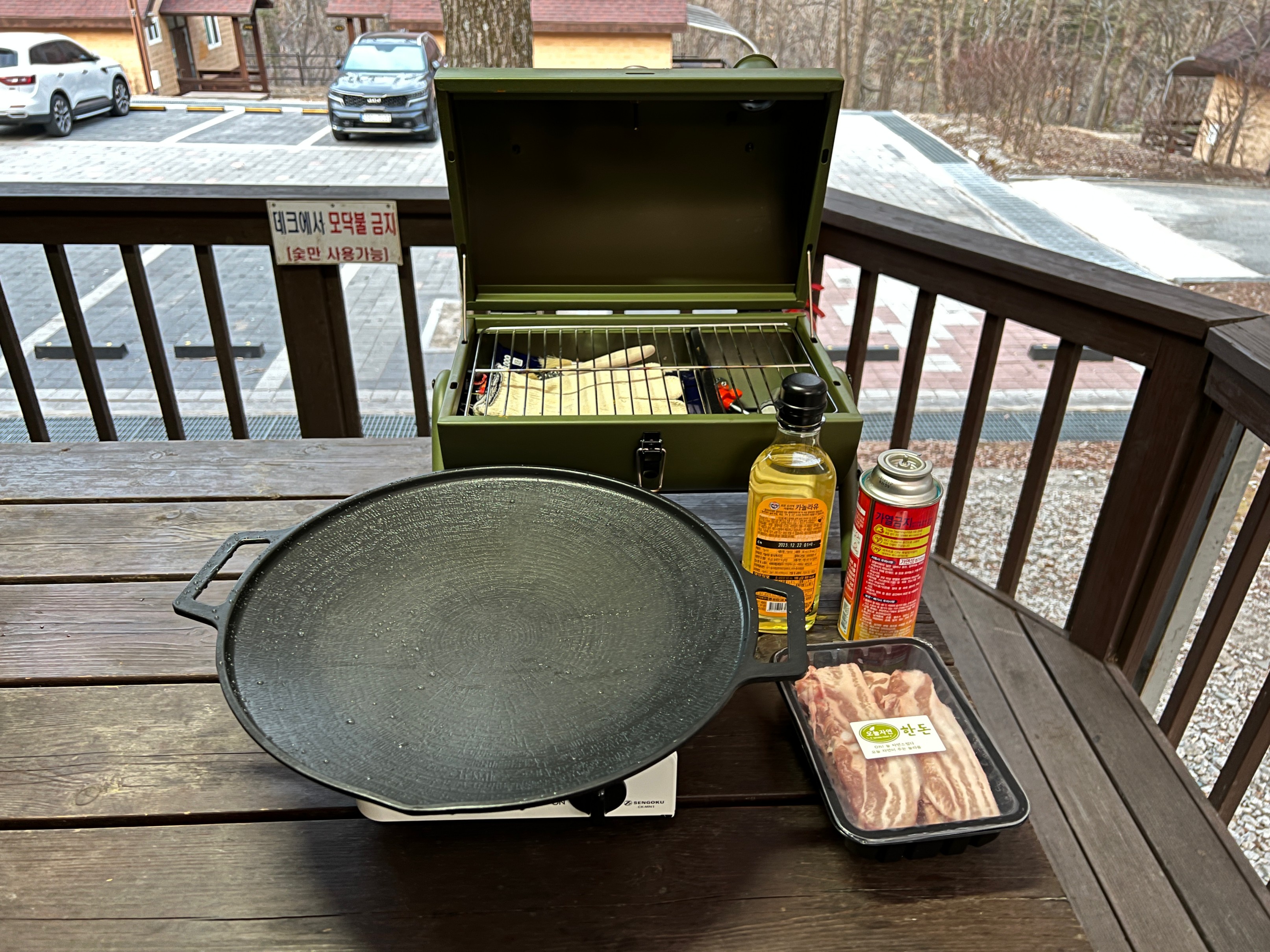 일단 캠핑장에 도착해서 바로 삼겹살을 굽는다.