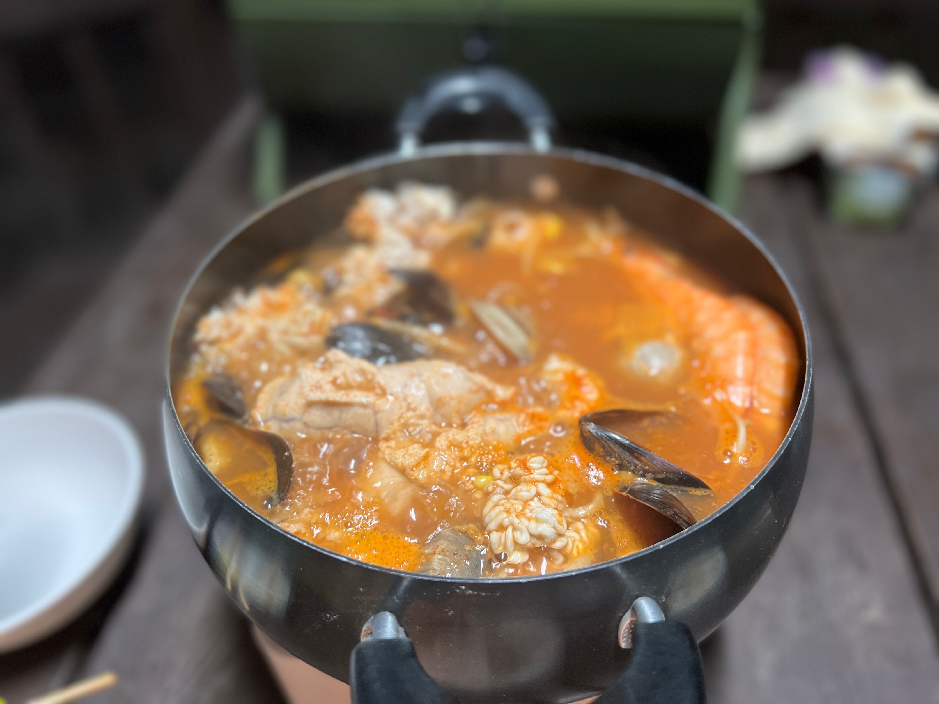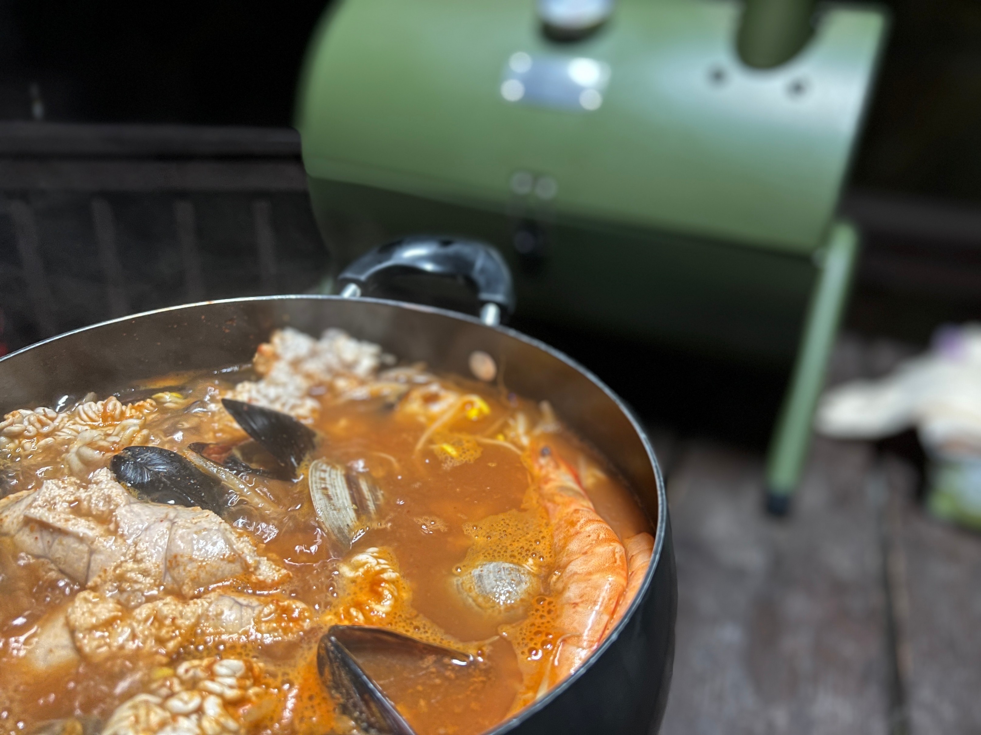 밀키트로 사온 해물탕도 끓였다. 개인적으로 요새 캠핑올 때에는 괜히 번거롭고 기름 튀게 고기 굽지 말고 그냥 이런 해물탕 같은 거 밀키트로 사와서 먹는 것도 괜찮은 것 같다.