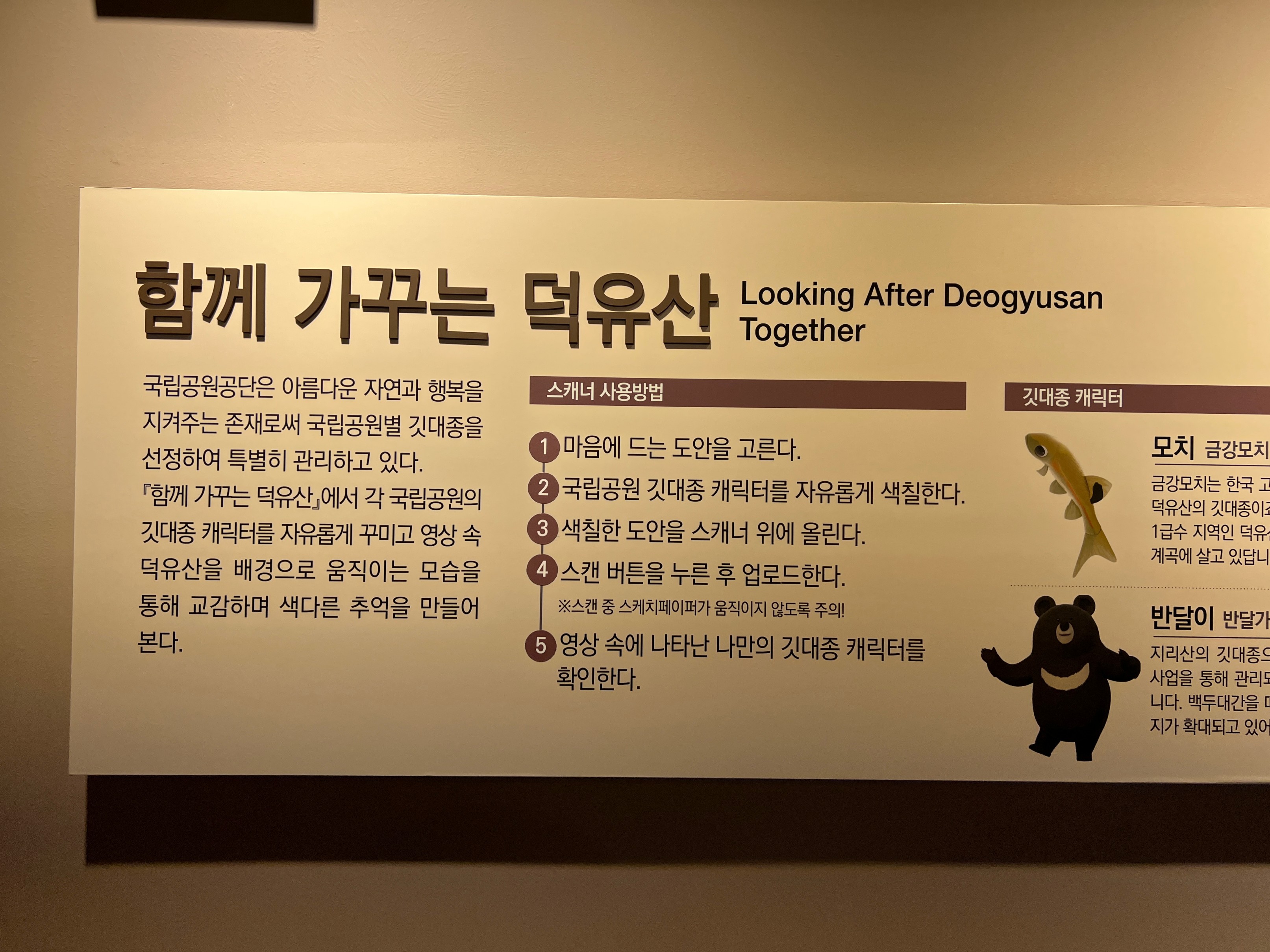 이런 식으로 덕유산에 있는 반달가슴곰이랑 등등 설명이 되어 있다.