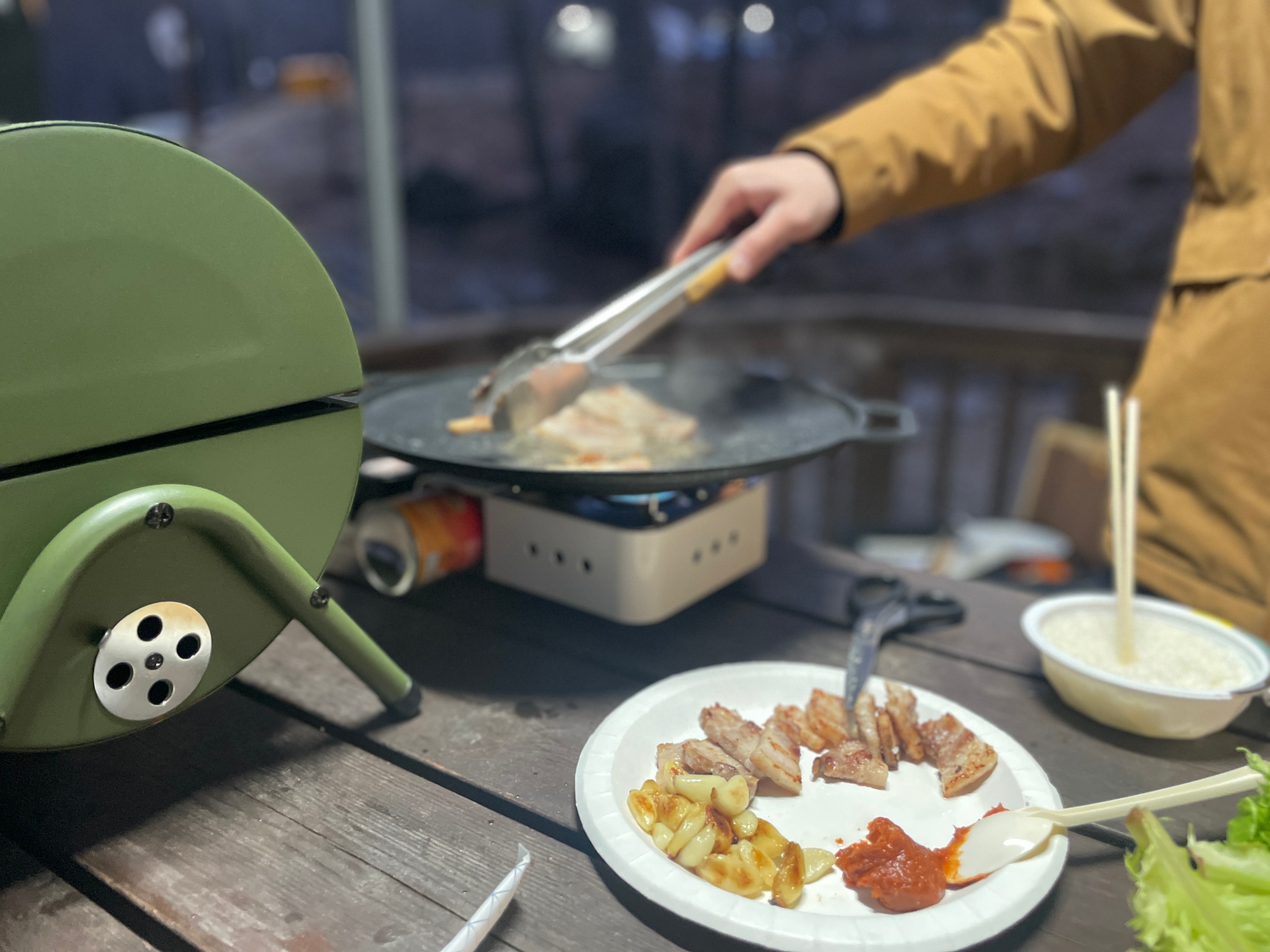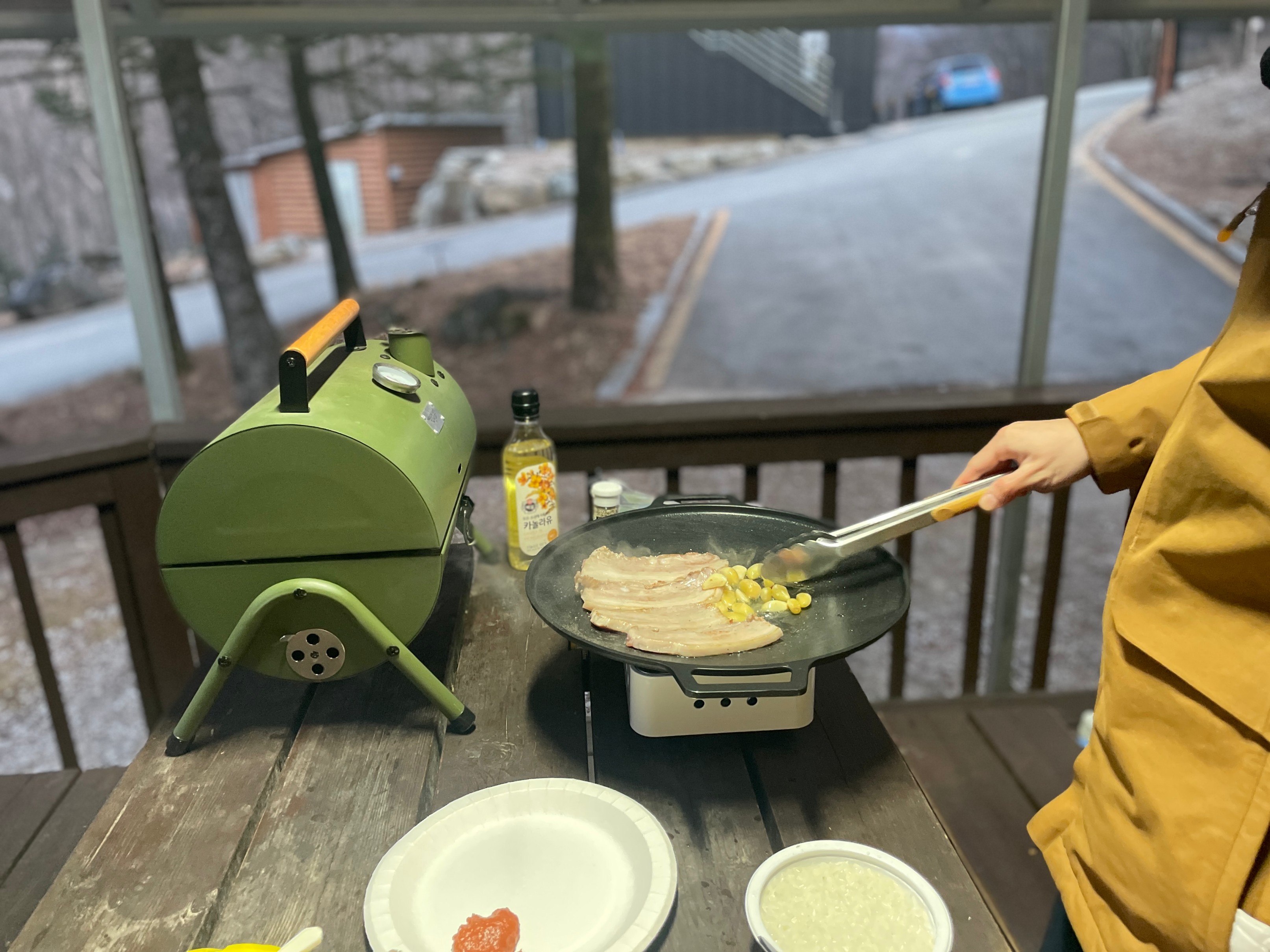 일단 캠핑장에 도착해서 바로 삼겹살을 굽는다.