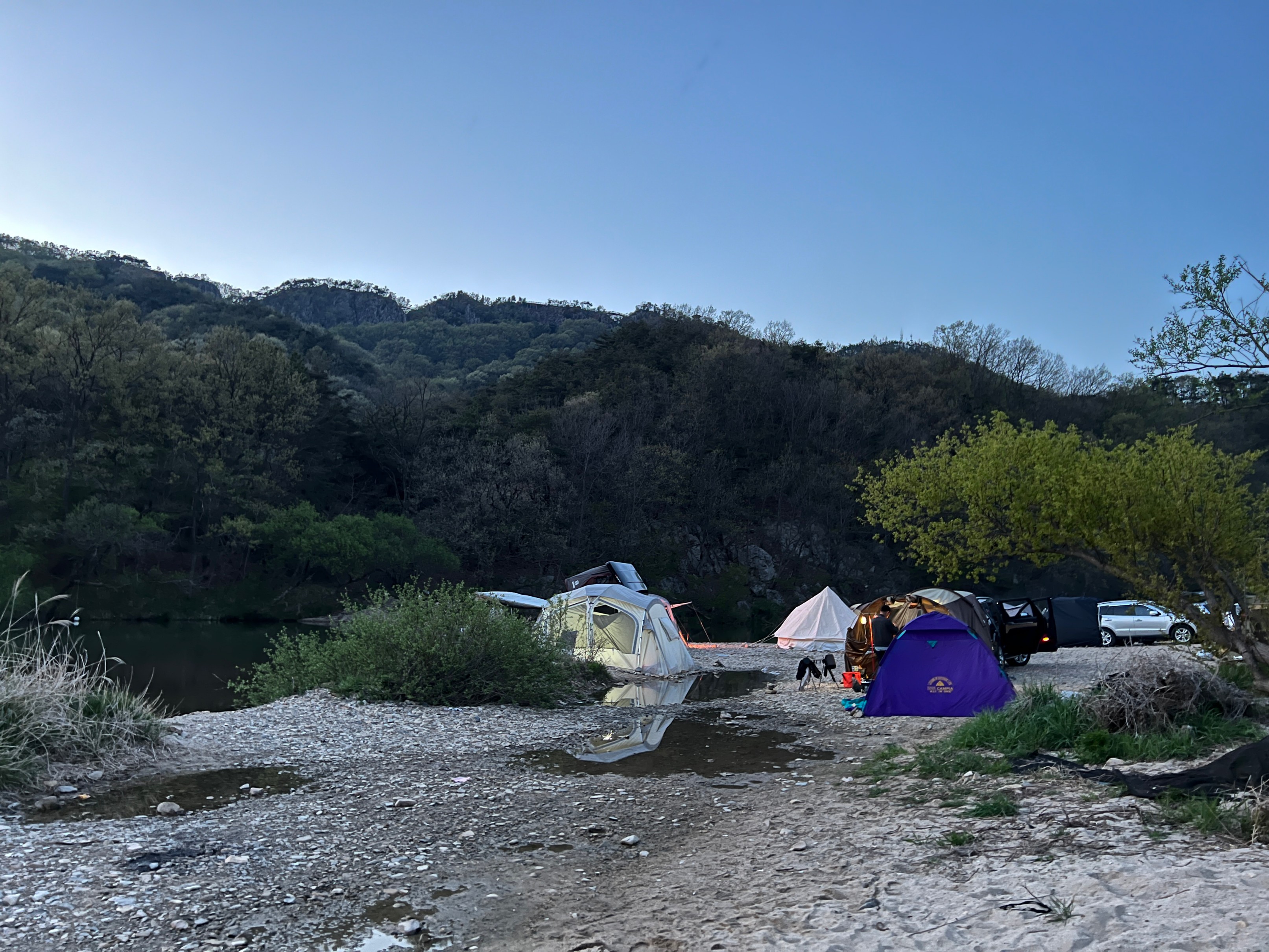 뭘 솔직히 말하면 장박텐트 짱박아놓는 사람들은 좀 비매너인데 지방이라서 아직은 크게 통제하지 않는 것 같다.