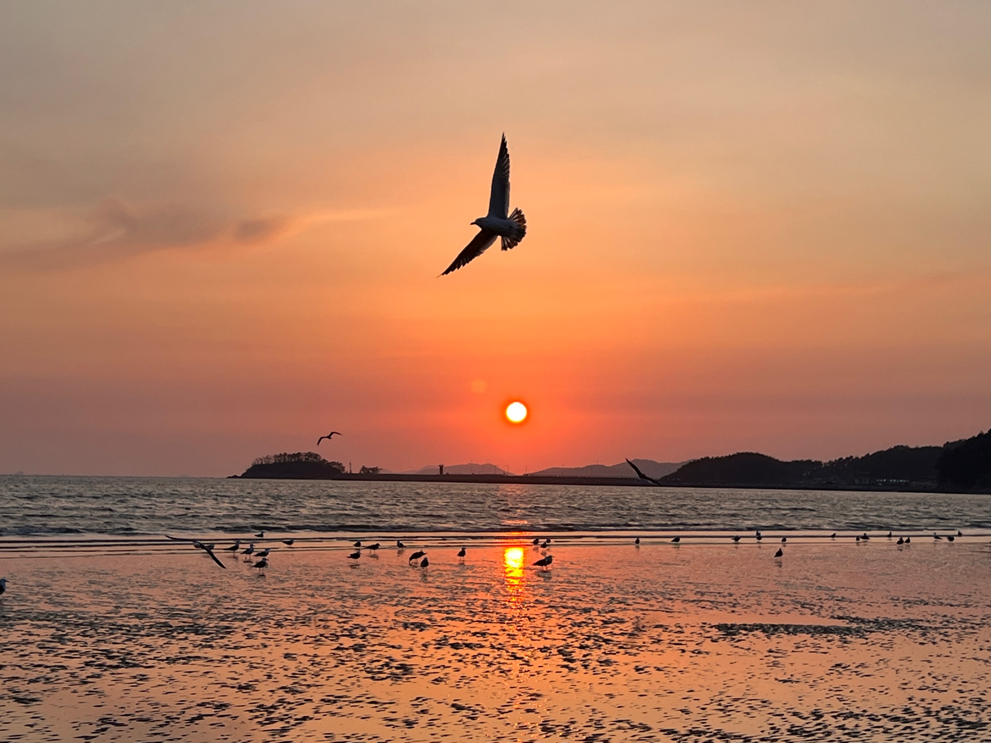 갯벌 위로 석양이 지는 모습인데 진짜 너무 이쁘다.