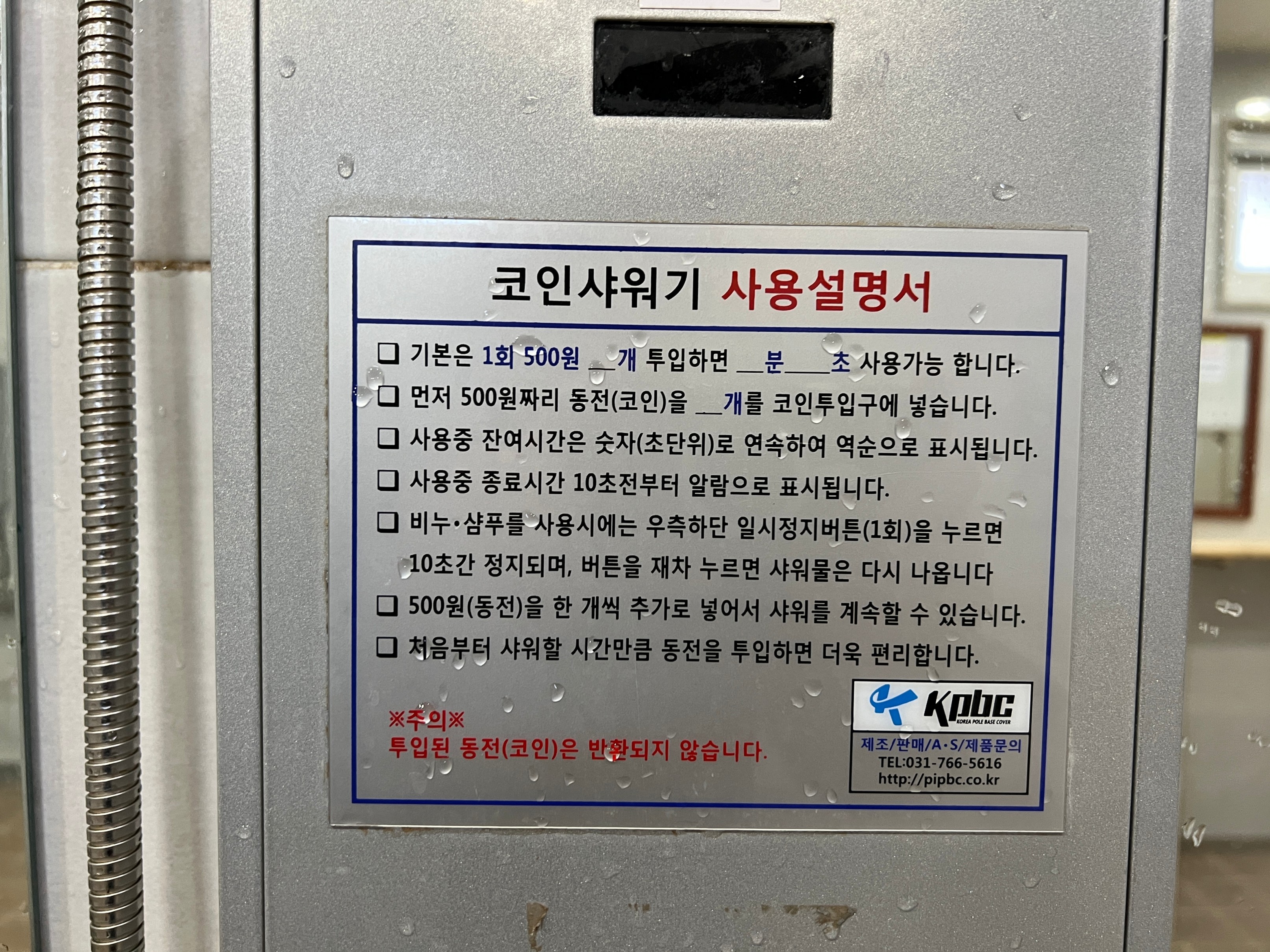 이거는 간이 샤워시설인데, 이거 말고 제대로 된 샤워실이 있으니 그곳을 이용하면 된다.