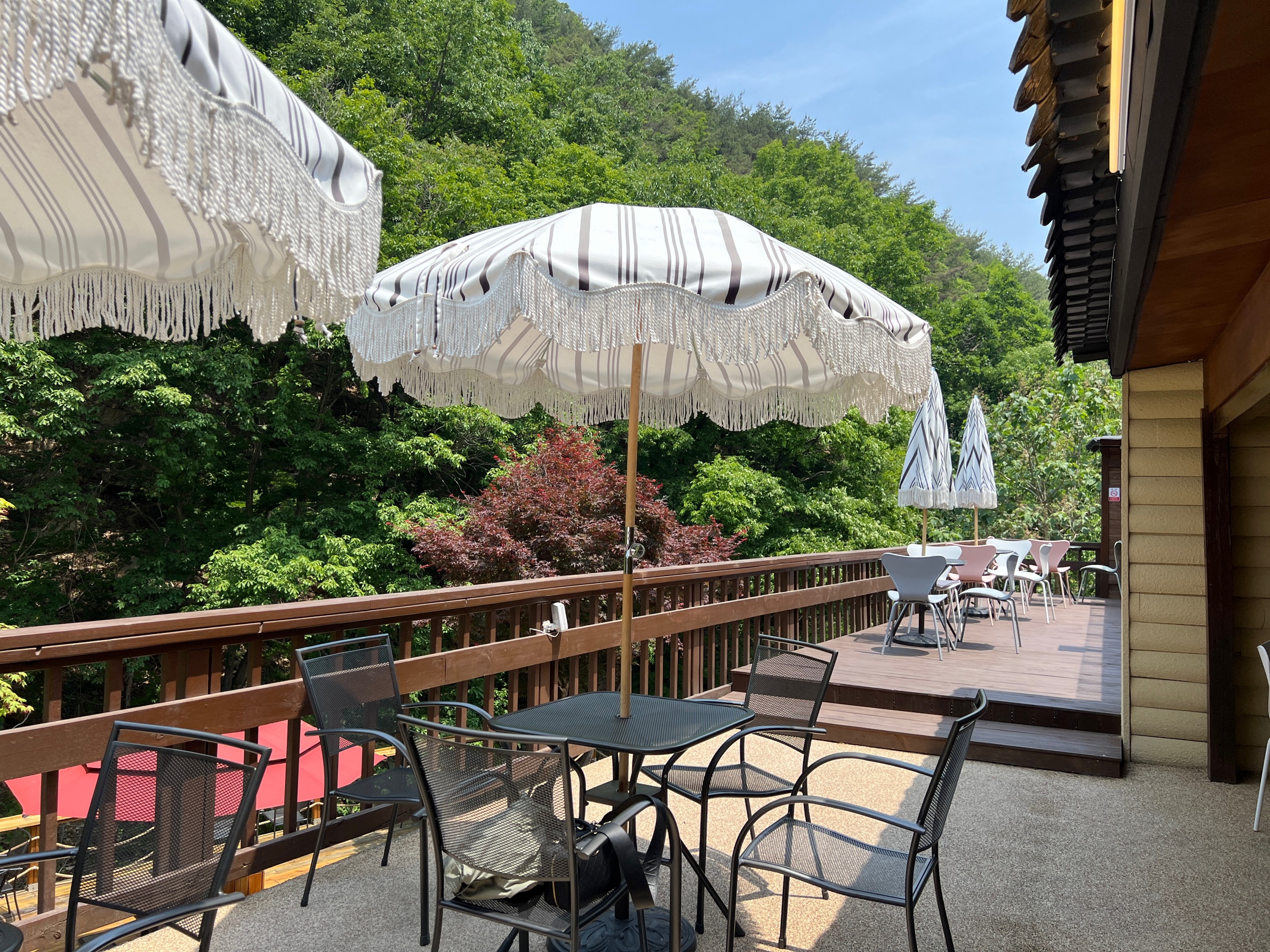 장태산 자연휴양림에서 캠핑을 하고, 다음날에 철수하면서 한번은 무조건 들러야 하는 카페다.