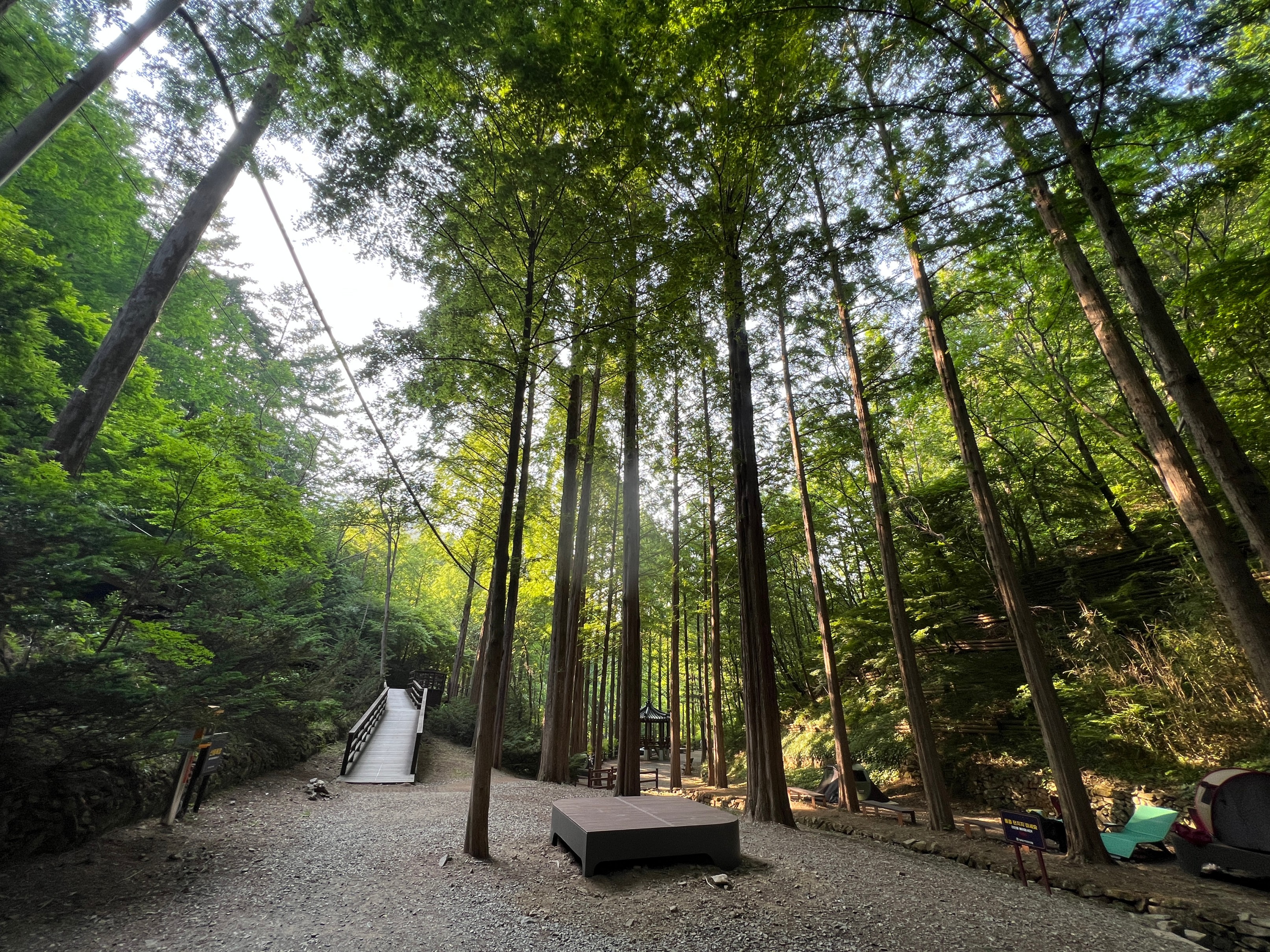 여기에는 '장태산 자연휴양림 야영장'이라는 캠핑장이 있는데, 예전에는 근처에 동물농장(?) 같은 게 있어서 엄청 시끄럽다고 하는 후기가 많았는데 내가 갔을 때는 사실 특별히 불편한 점을 못 느꼈다.
