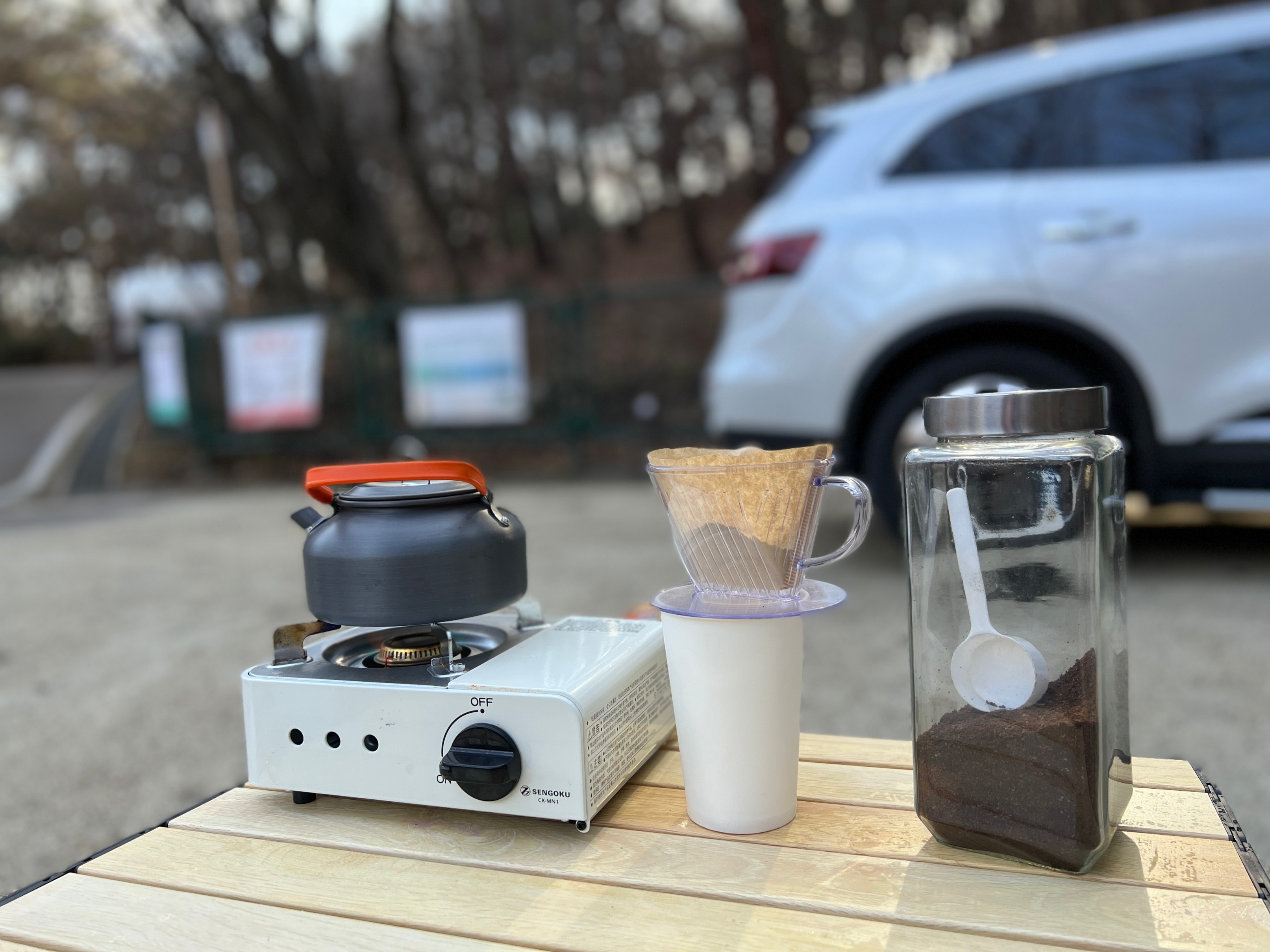 캠핑장에서 아침에 먹는 이 커피가 너무 좋다 ㅎㅎ