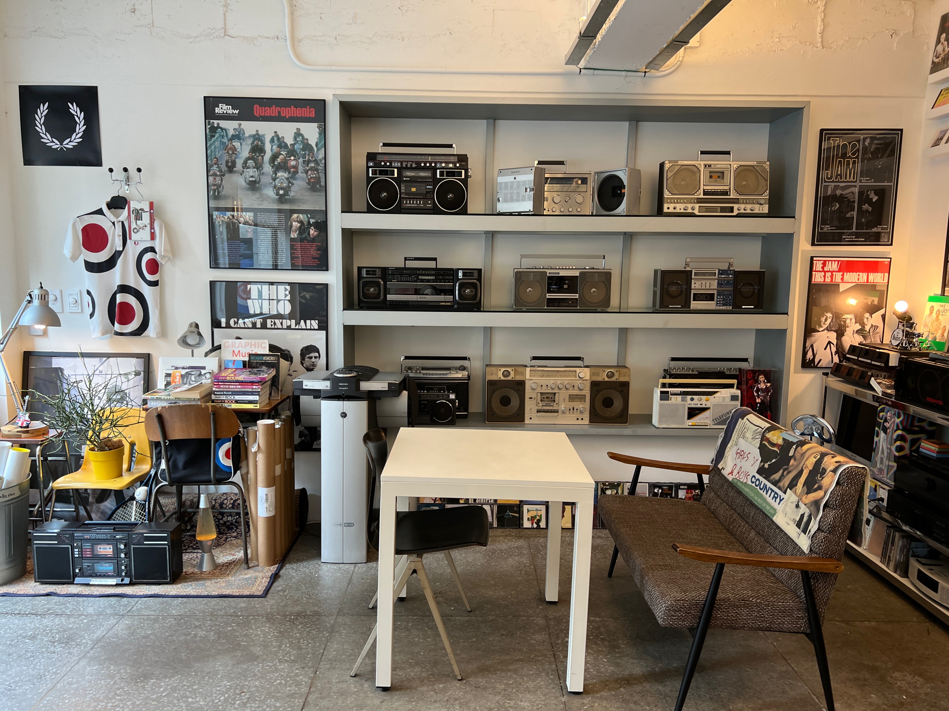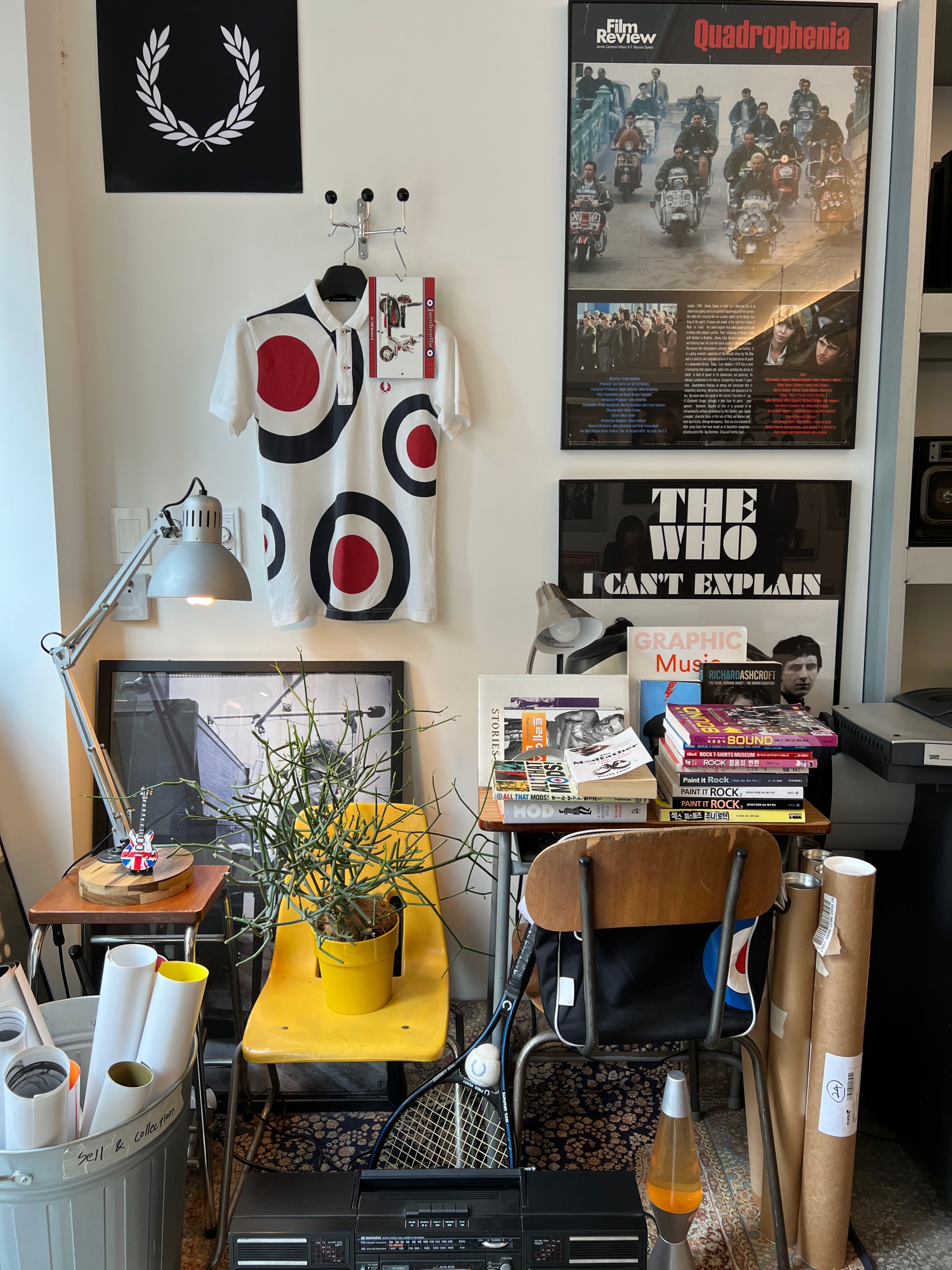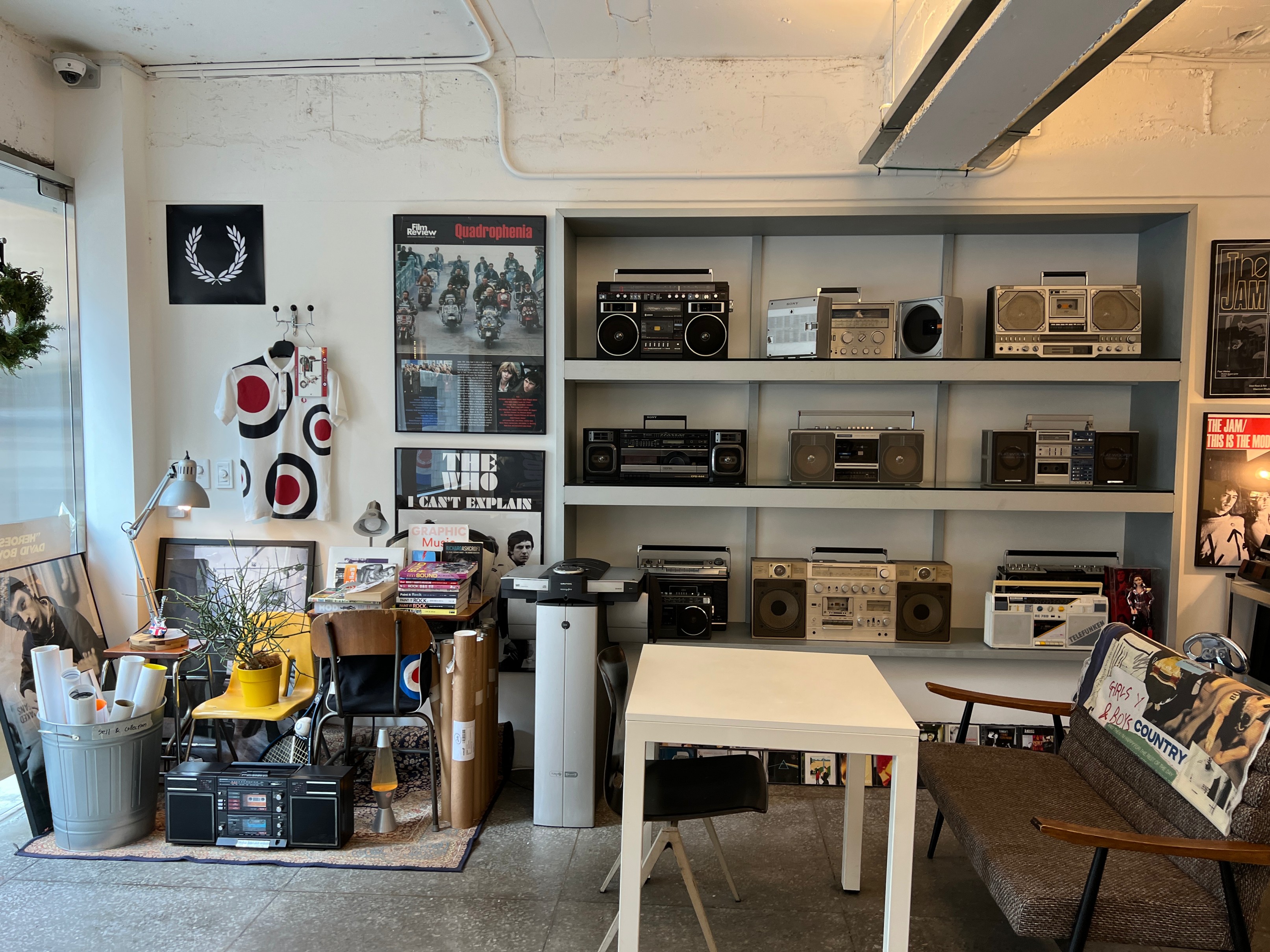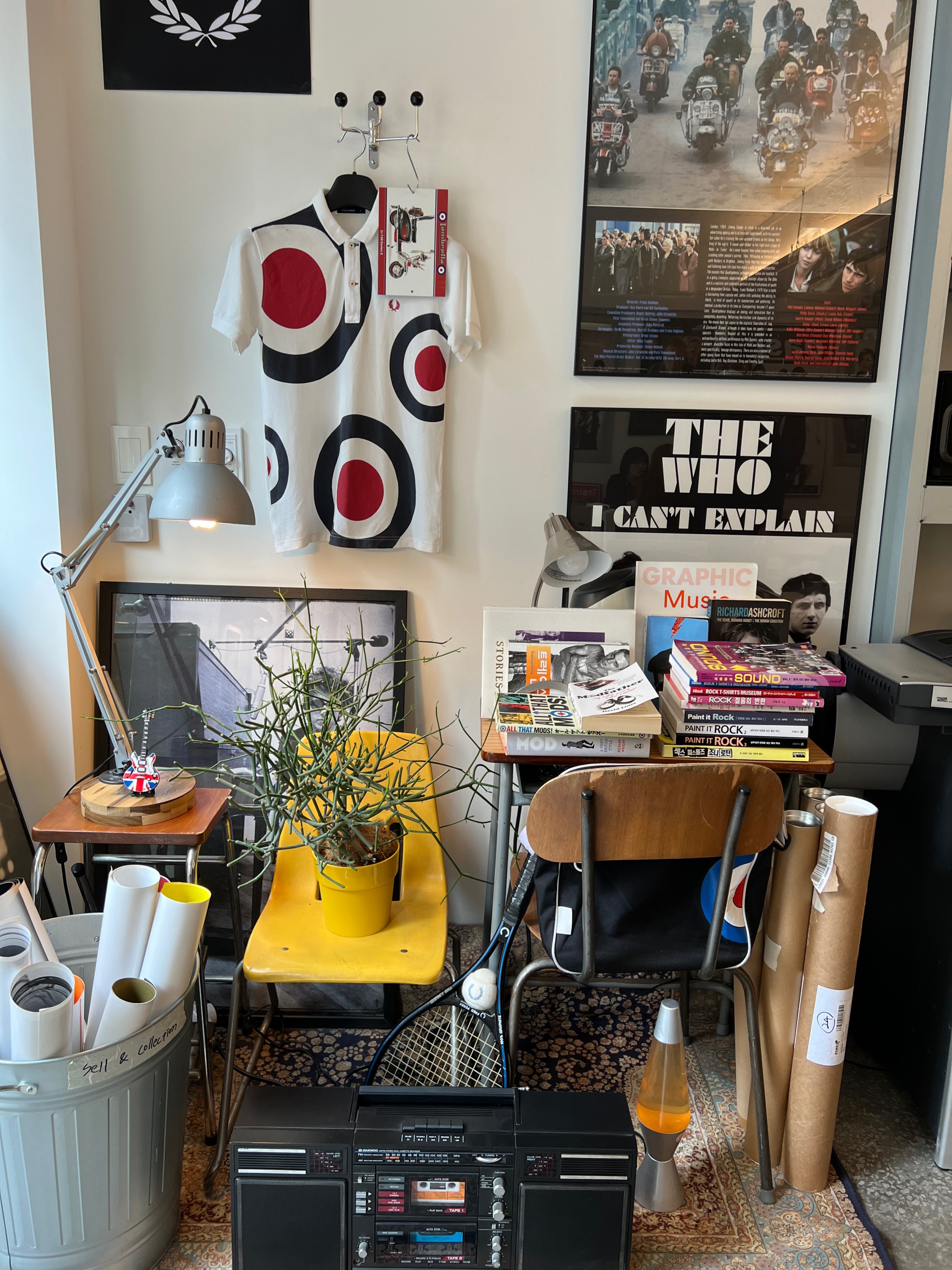 뭔가 잡동사니들을 인테리어 소품으로 활용하고 있는데 지저분하지 않고 힙한 느낌이 좋다.