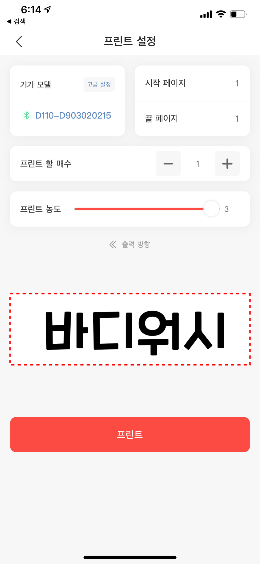 매수와 농도 등 원하는 설정을 입력한 뒤 프린트를 누르면 원격으로 기계에서 바로 프린팅 되어 나온다.