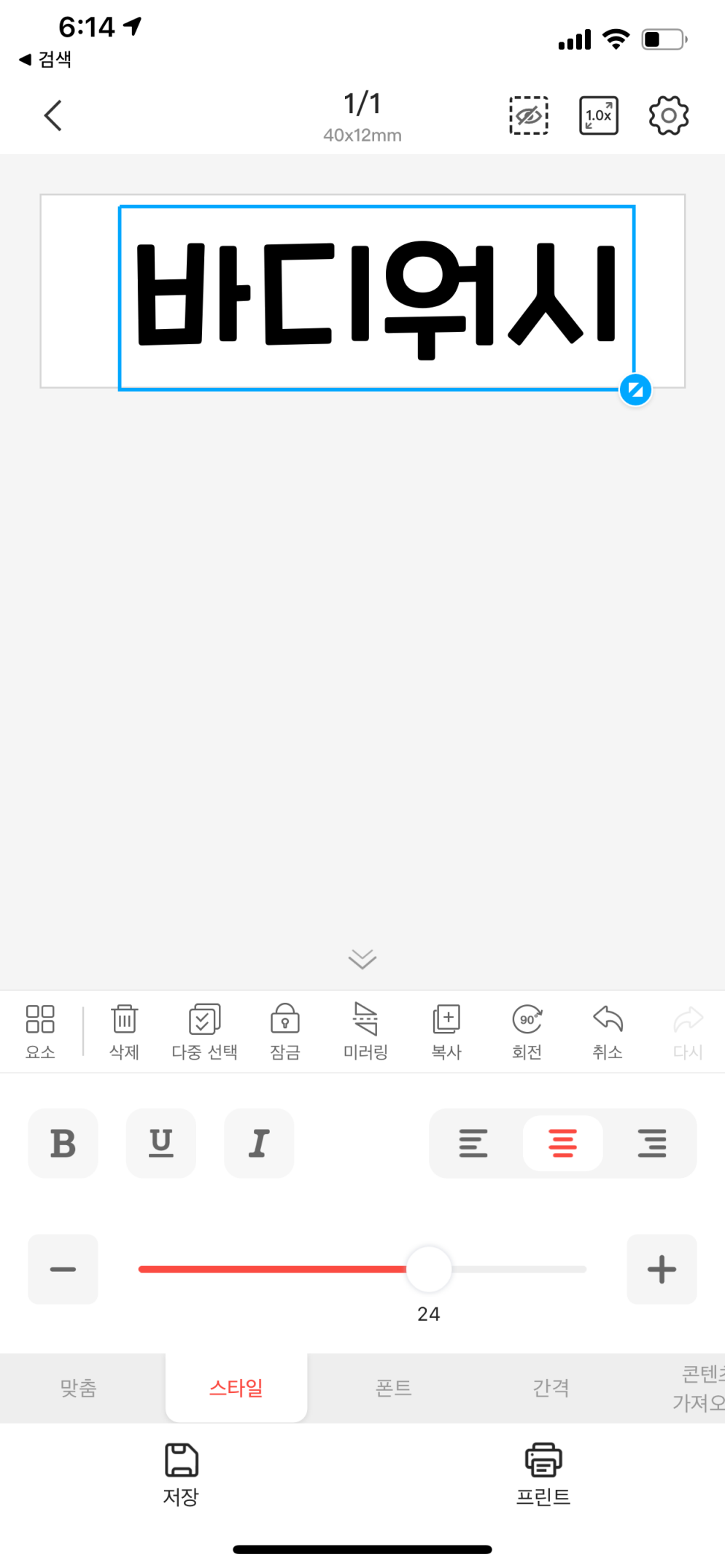 그렇게 해서 원하는 폰트를 앱으로 입력해서 이렇게 프린트 해서 원하는 곳에 붙이고 사용하면 된다.