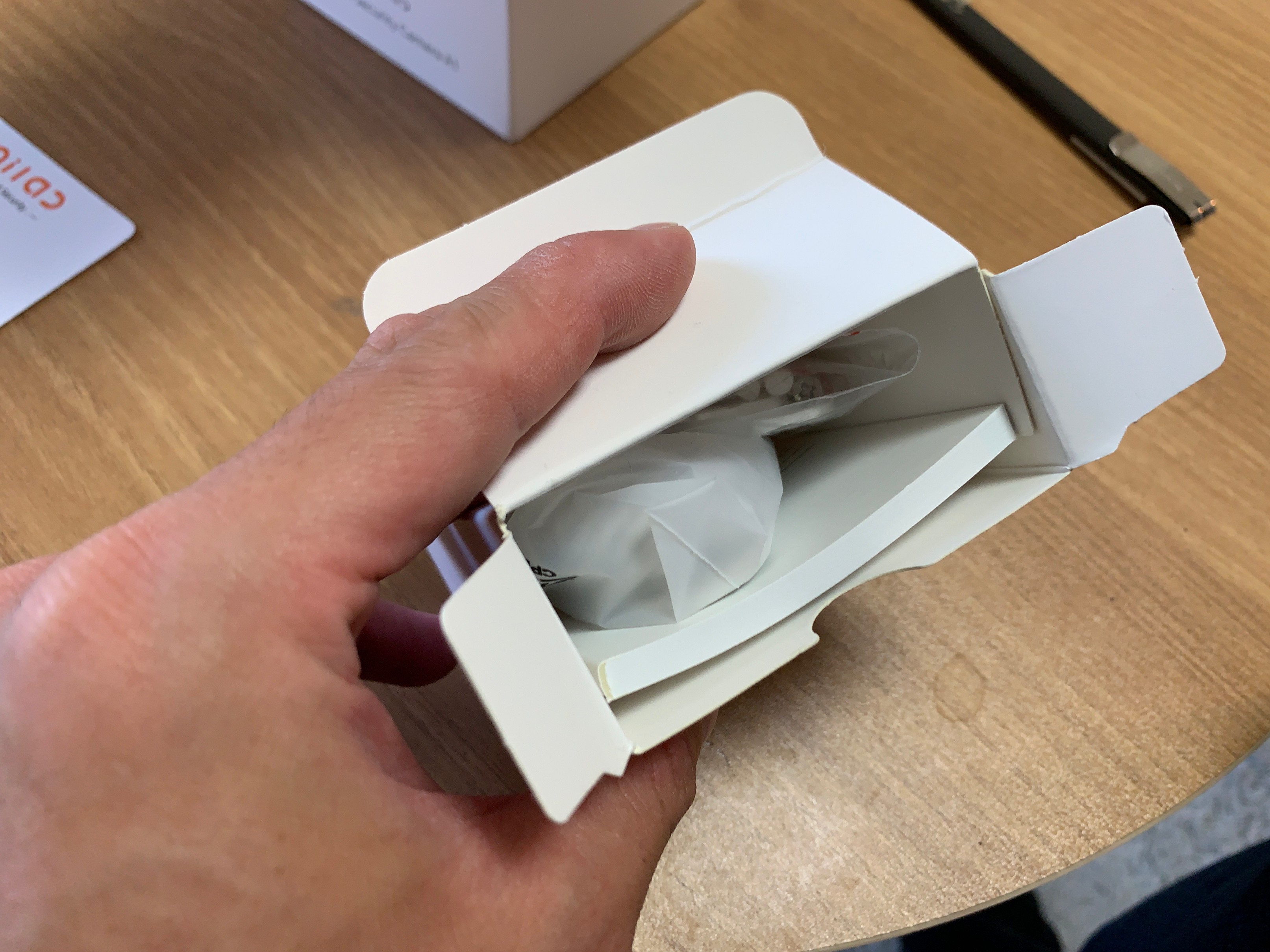구성품은 심플하게 제품 본체, 전원선, 그리고 벽에 박을 수 있는 나사이다.