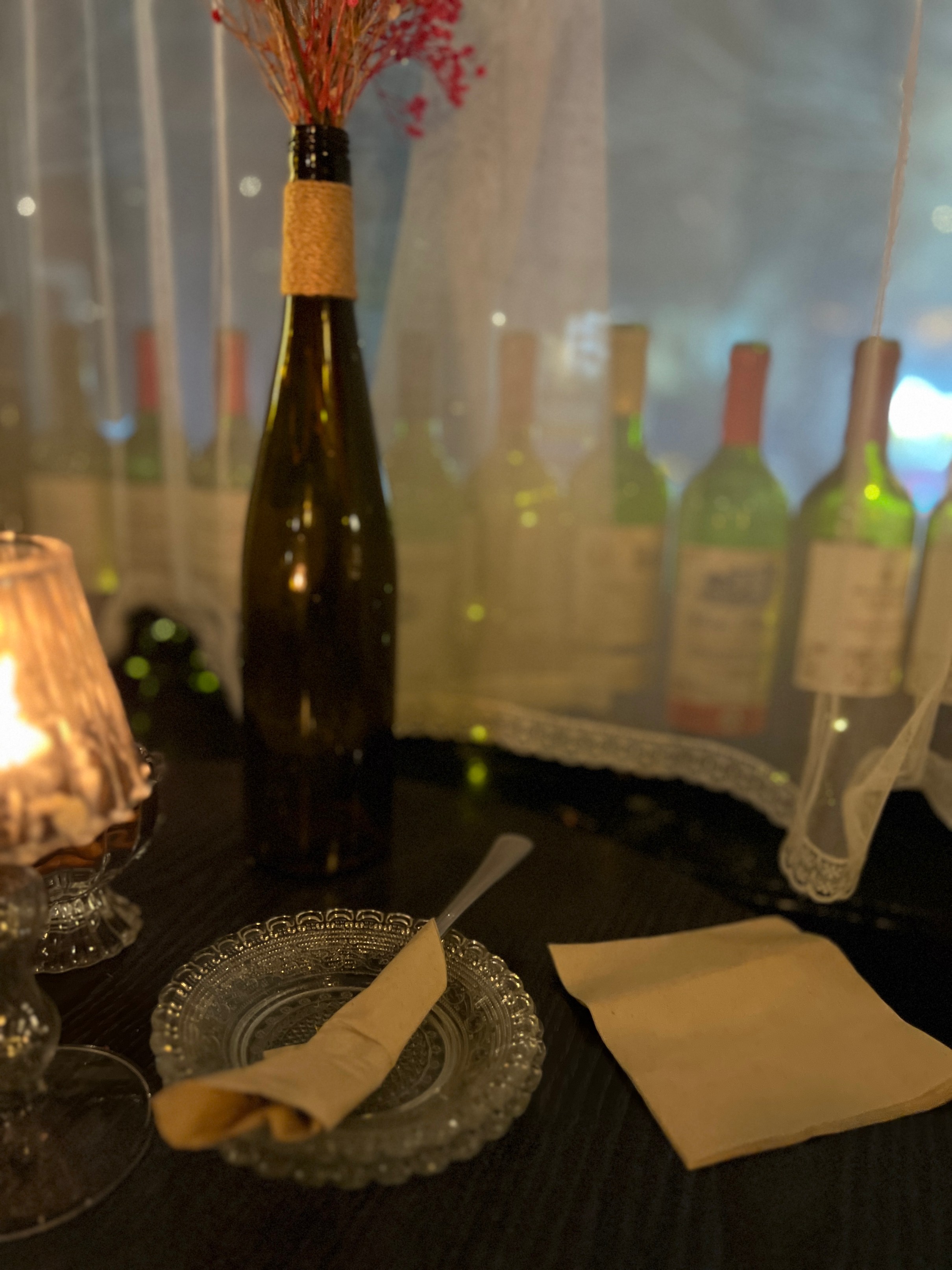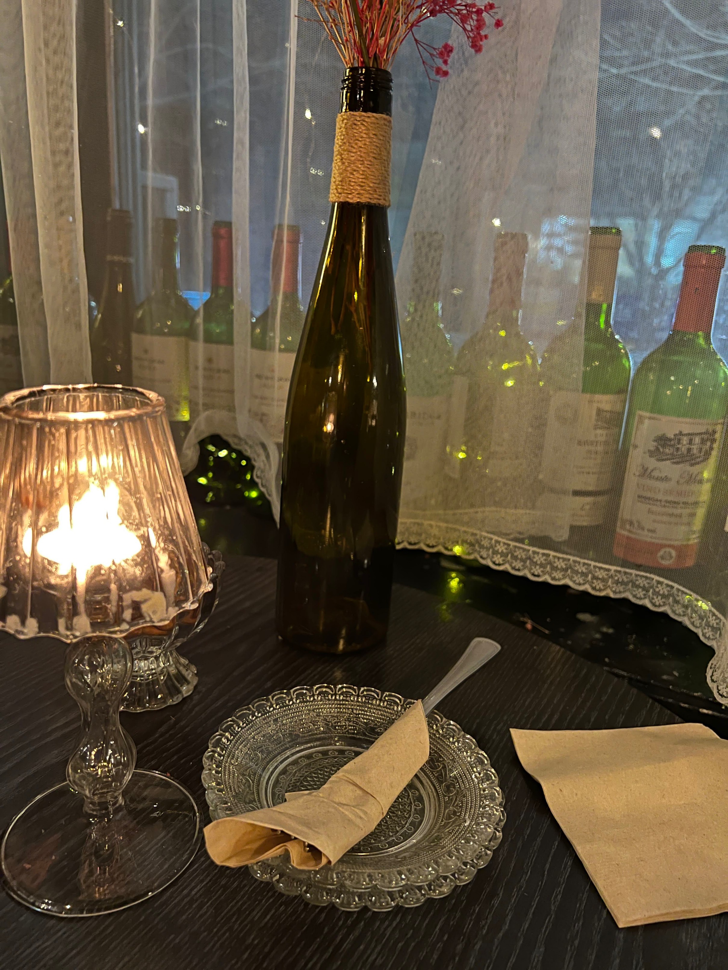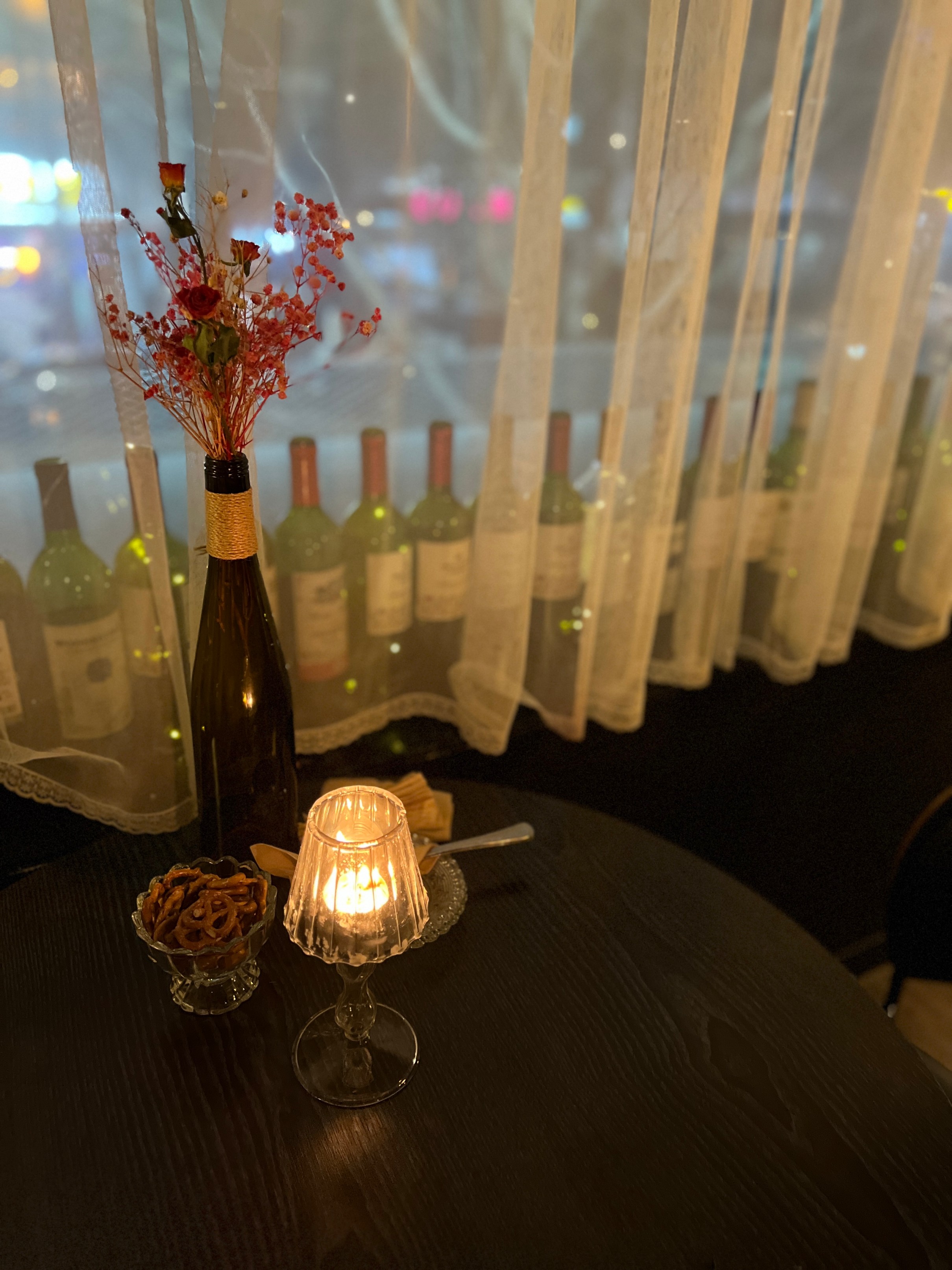 창가쪽에는 이렇게 와인병들로 장식이 되어 있다.