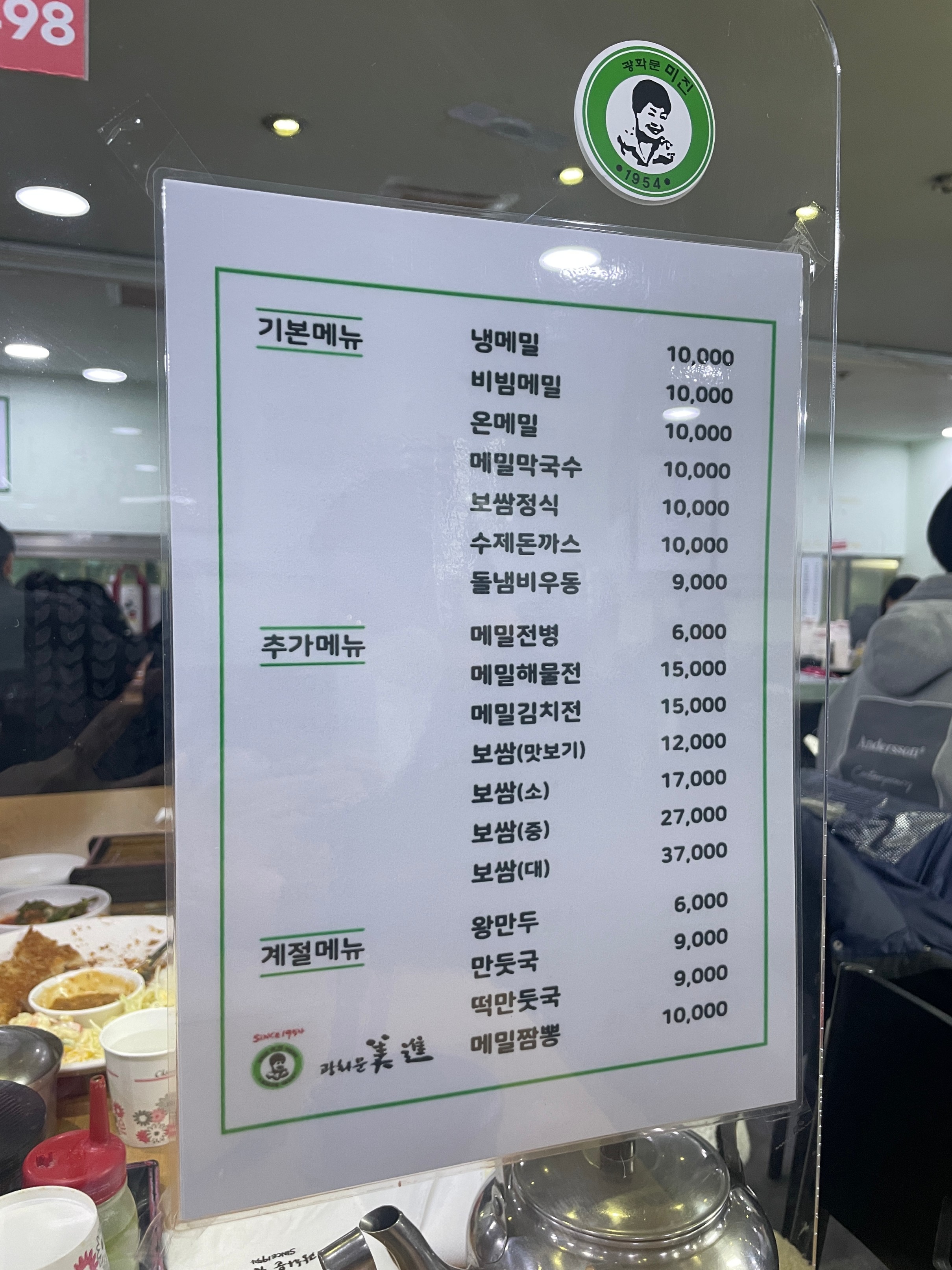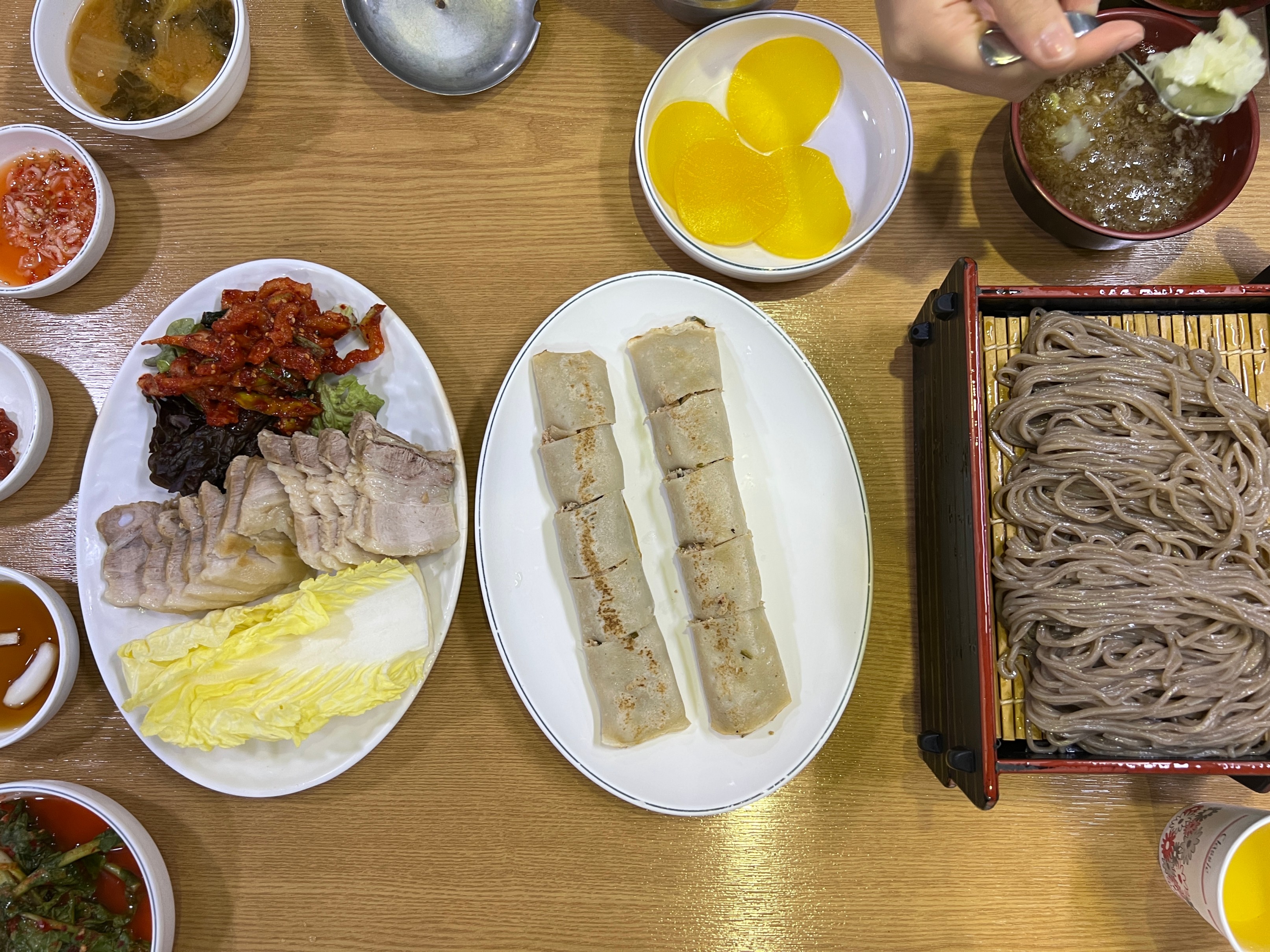 가격은 메밀국수 약 만원 정도, 전병 6,000원, 보쌈은 2-3만원대이다.