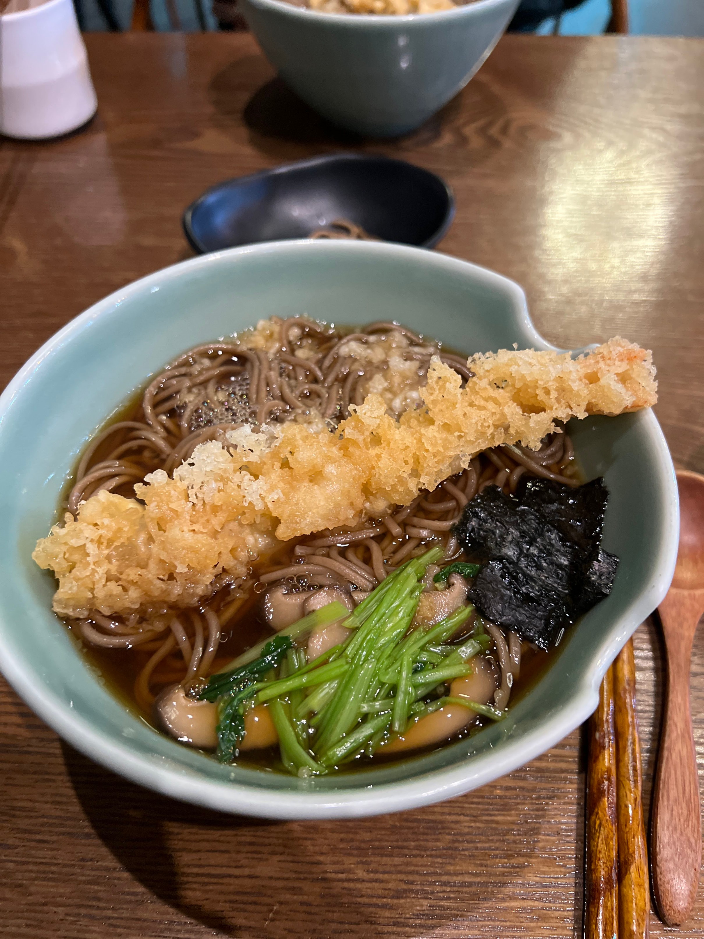 나는 새우튀김 소바를 시켰다. 가격은 12,000원 정도였던 걸로 기억한다.