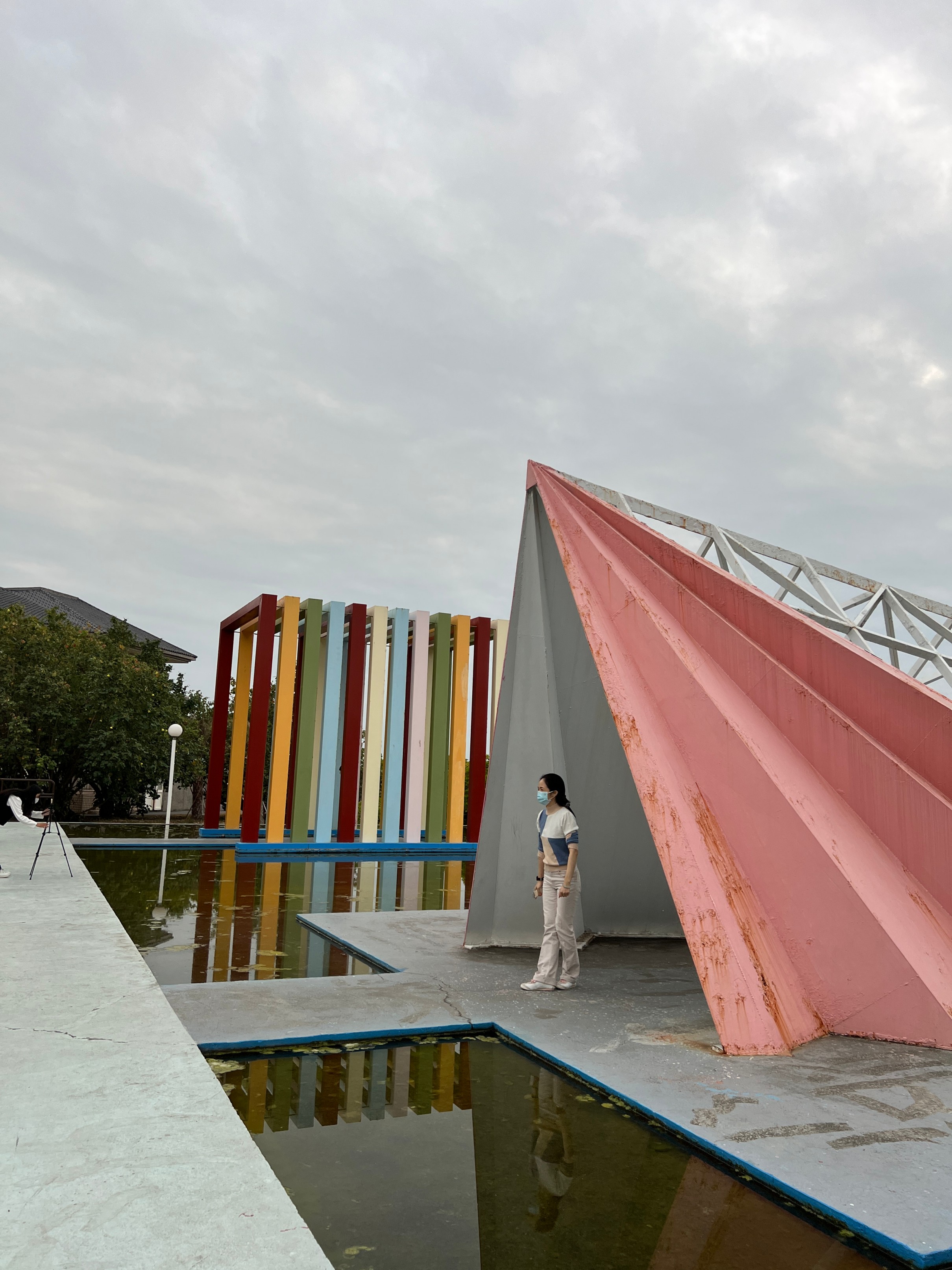 실제로 옆에는 교회 건물이 있고, 이렇게 무지개색으로 알록달록한 조형물이 하나 세워져 있다.
