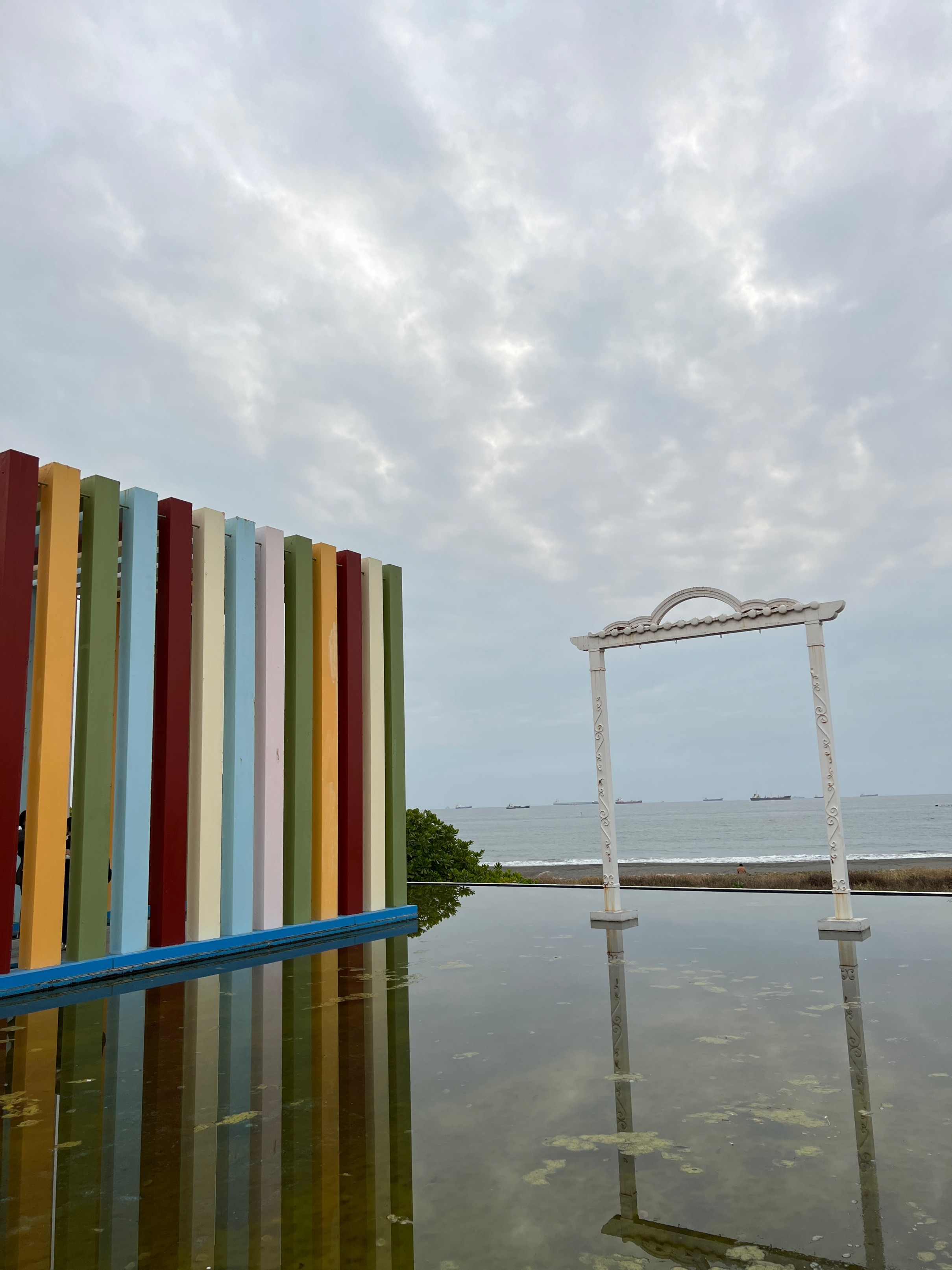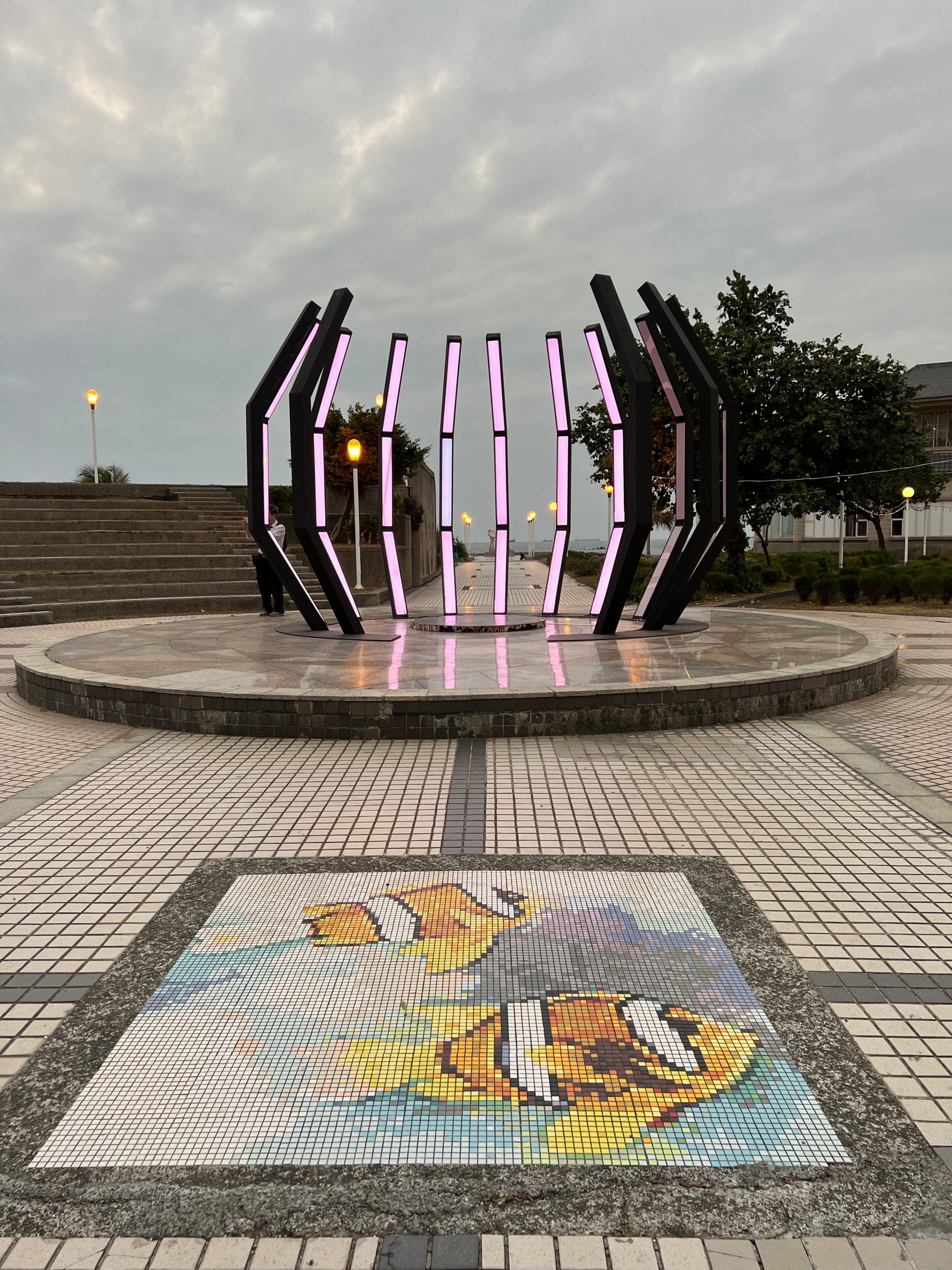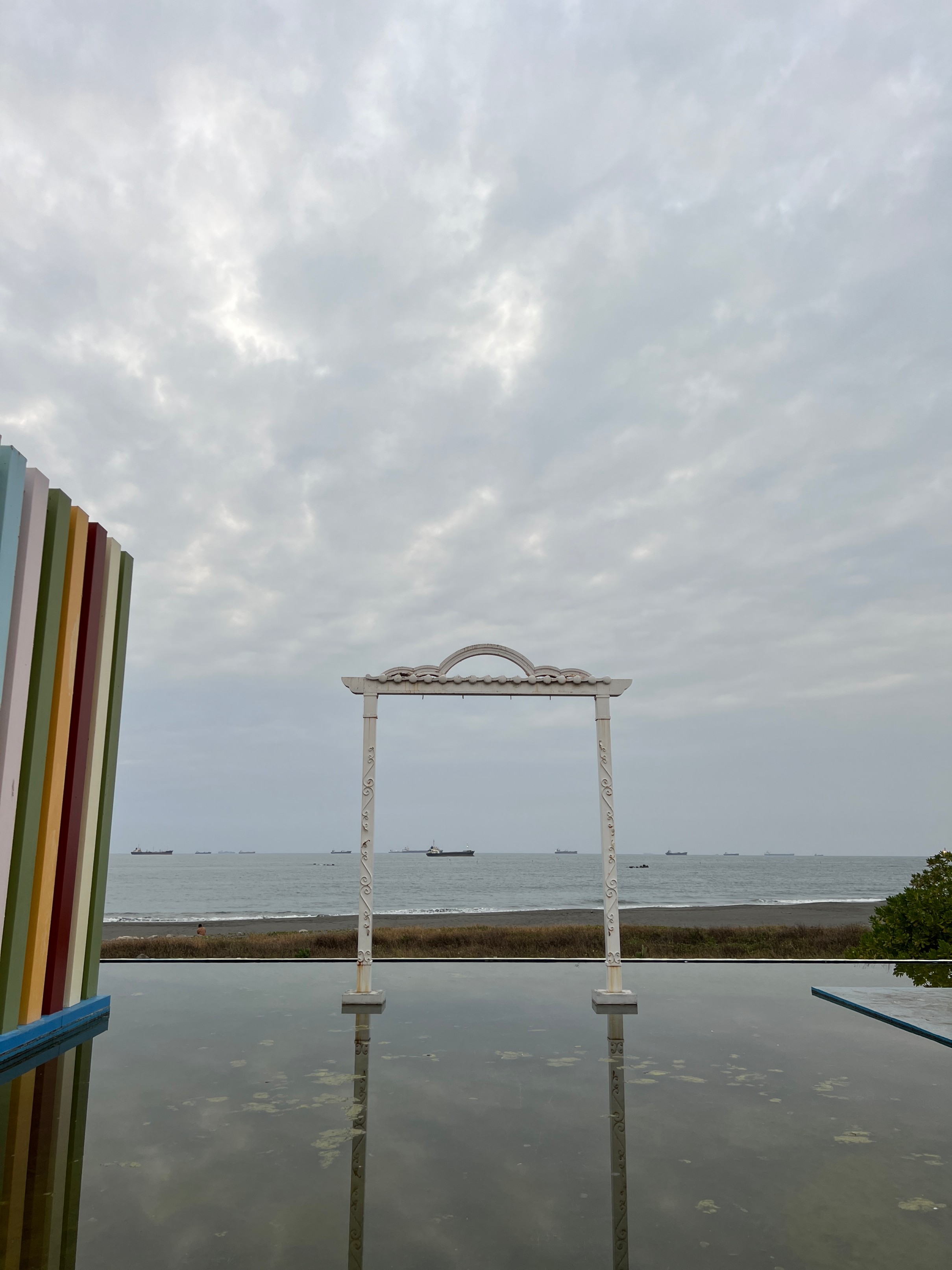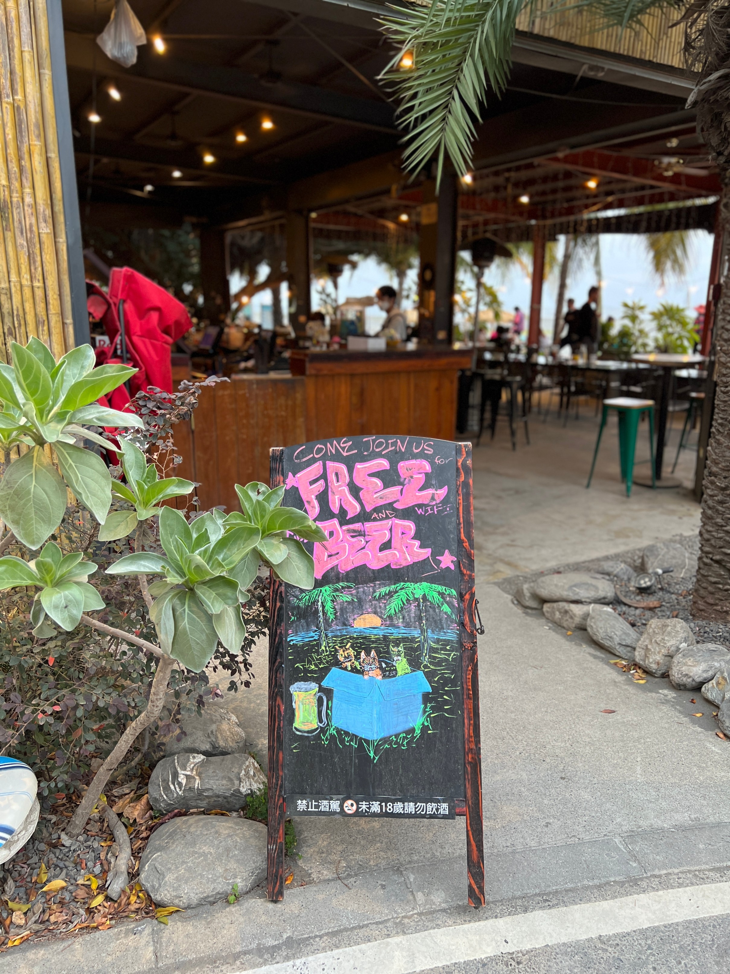 #치진해변 #치진무지개교회 #치진풍차공원 #치진선셋바 : 등대랑 포대를 구경하고 내려오면 바로 치진해변이라는 곳이 있는데, 여기도 화산재로 검은색 모래가 있는 해변이다. 해변이 생각보다 엄청 크고 길어서 걸어서 산책만 해도 한참 걸린다. 이 해변을 쭉 따라서 스쿠터나 자전거를 타고 가다보면 무지개교회, 풍차공원 같은 조형물들이 나오는데 그냥 그 조형물 앞에서 사진 하나 찍는 정도로 구경하면 된다. 그렇게 돌다가 시간이 좀 남아서 다시 치진해변으로 돌아와서 치진선셋바라는 곳에서 맥주 한잔 마시고 나왔는데 맥주 한병에 100twd로 가성비가 괜찮아서 분위기 있게 해변에서 맥주 마시기 좋다.